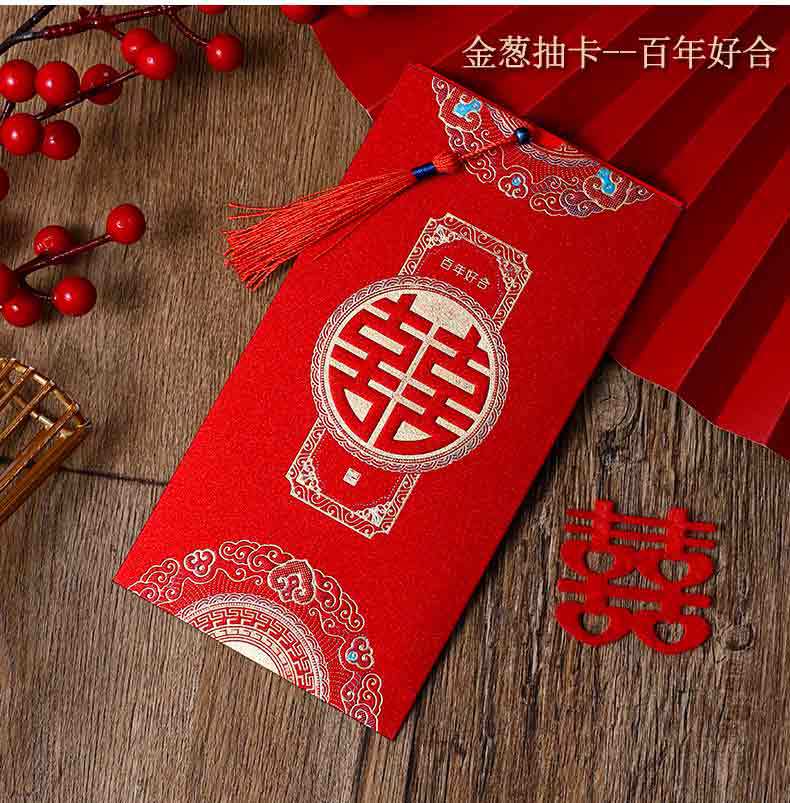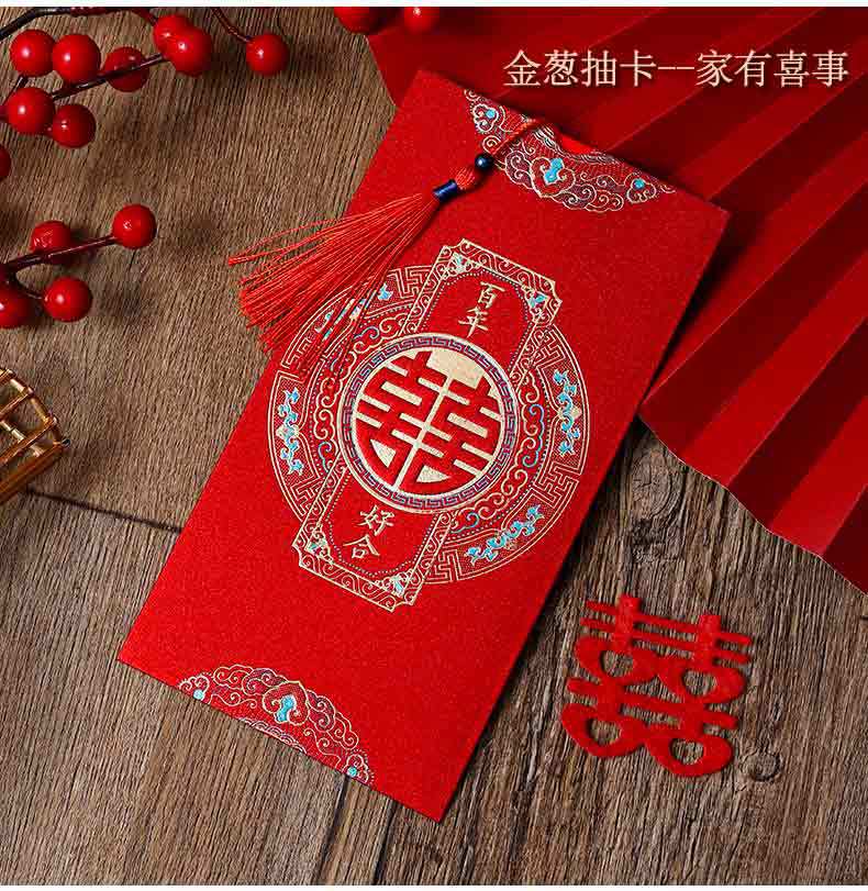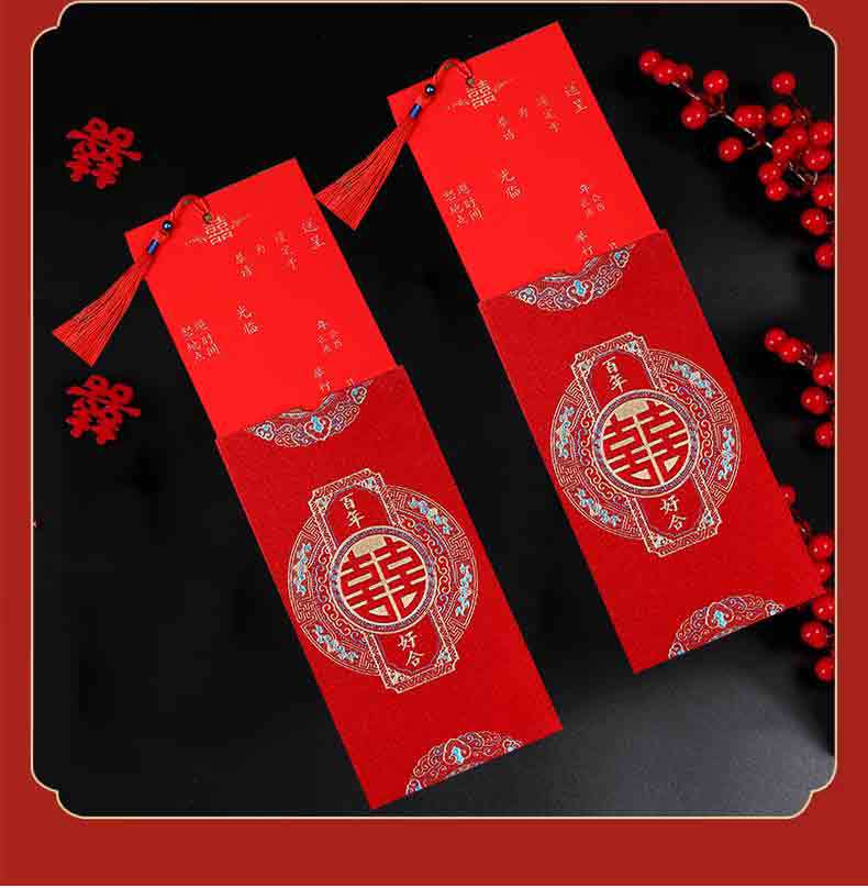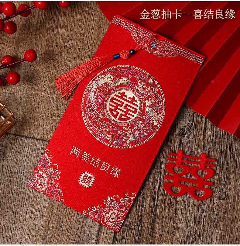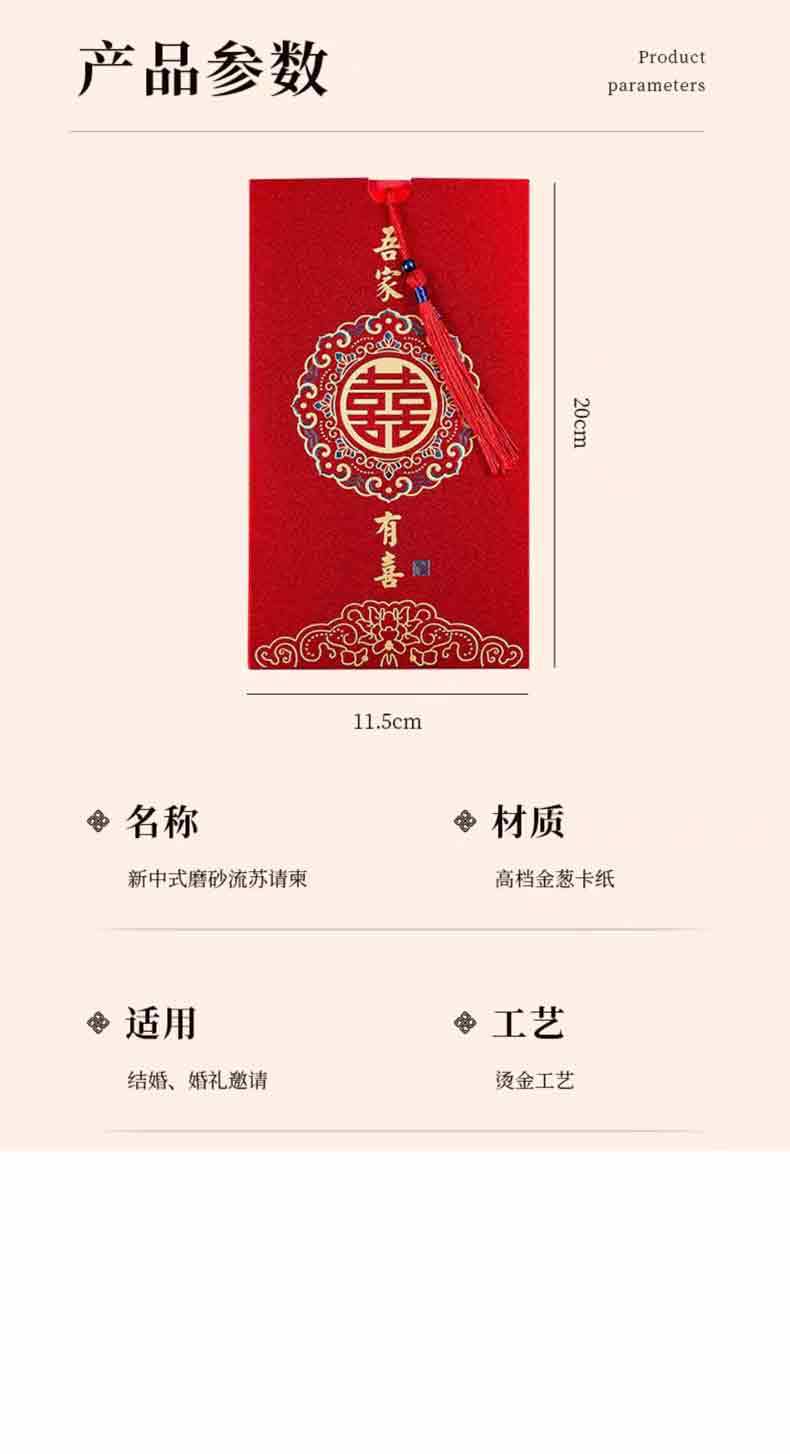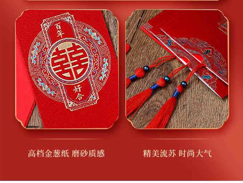 新款金葱抽卡请帖结婚流苏请柬婚礼婚庆用品抽拉式磨砂喜帖邀请函