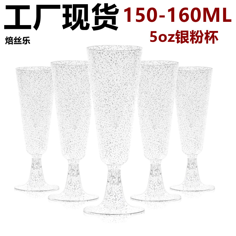 金边香槟杯红酒杯金粉高脚杯一次性塑料鸡尾酒杯马提尼杯冰淇淋杯