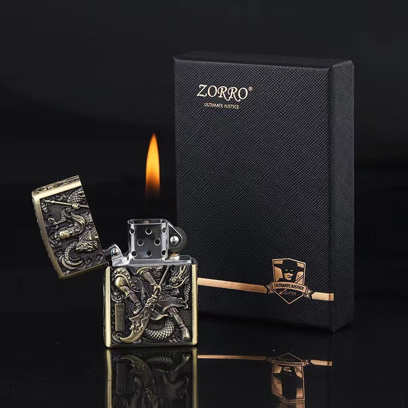 ZORRO佐罗锌合金煤油打火机限量版浮雕小盔甲复古砂轮高档男士礼