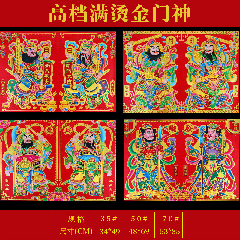 2025蛇年新款满烫金门神已经上架,门神50#一包100张,款式随机发,70#门神一包里面是50对,中间裁开,建议大家按照整包下单,这样不容易损坏。。。 满烫金门神