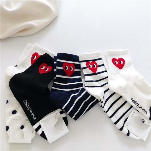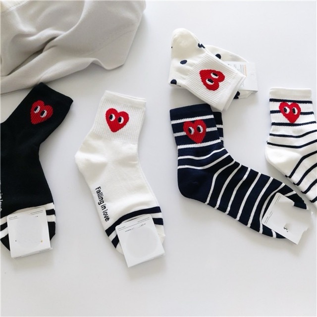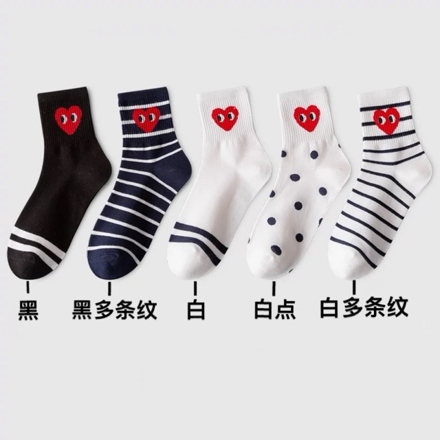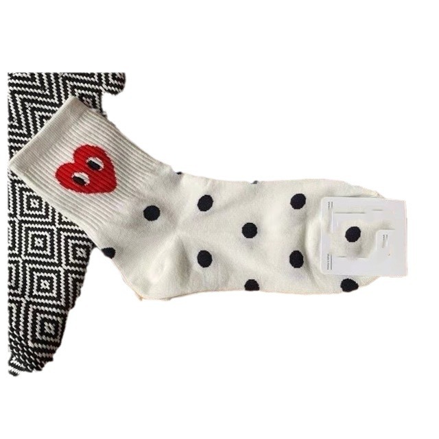 袜子女韩版黑白条纹波点纯色爱心眼睛中筒袜休闲运动风ins潮百搭