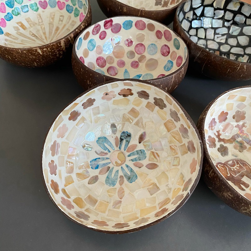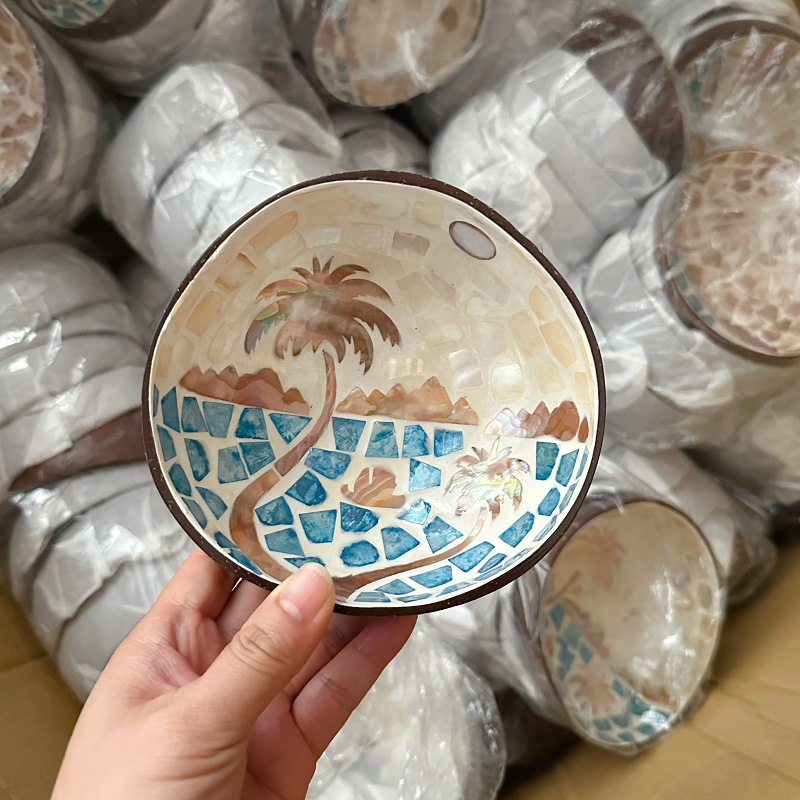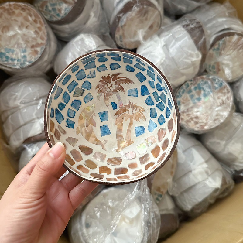 椰壳镶贝壳艺术碗