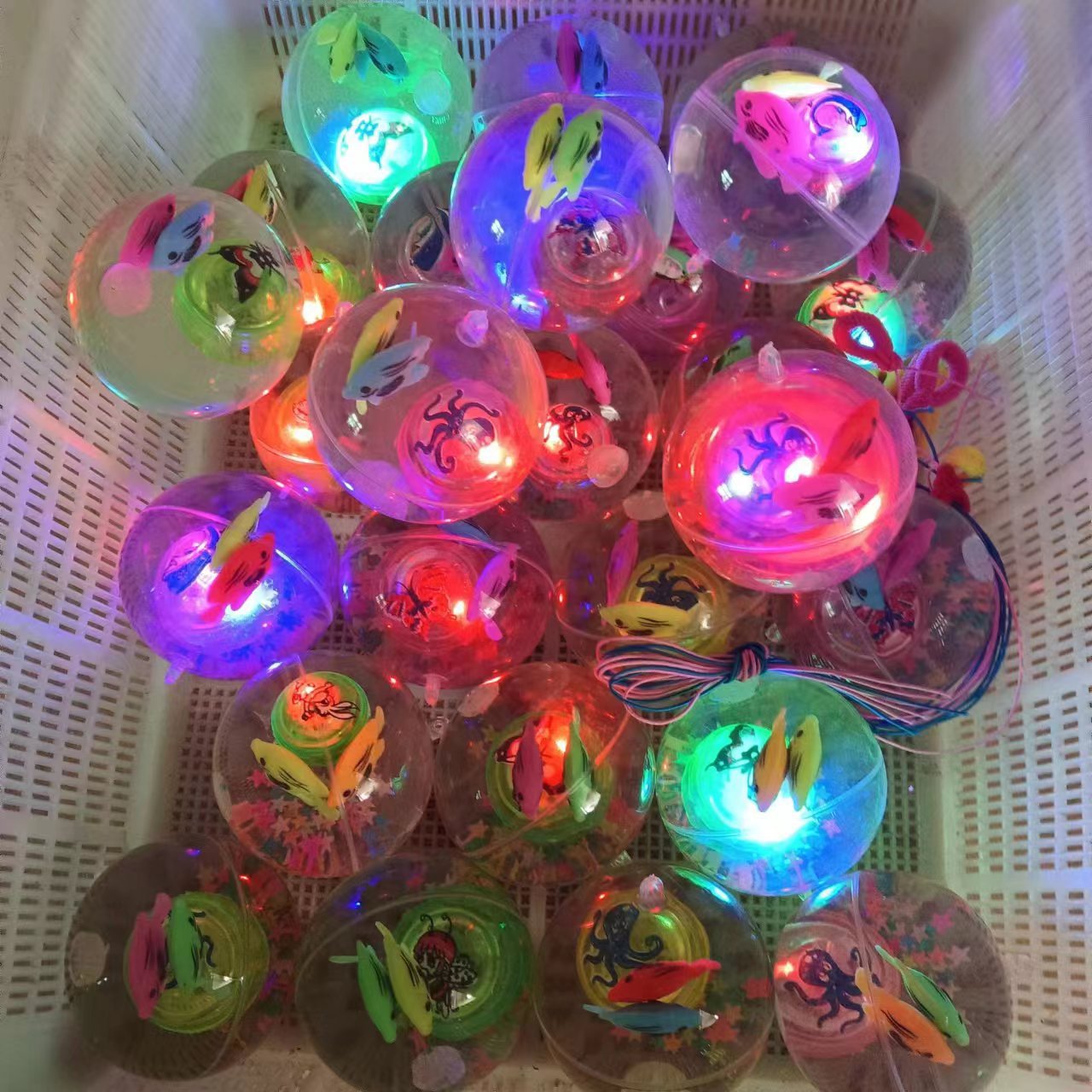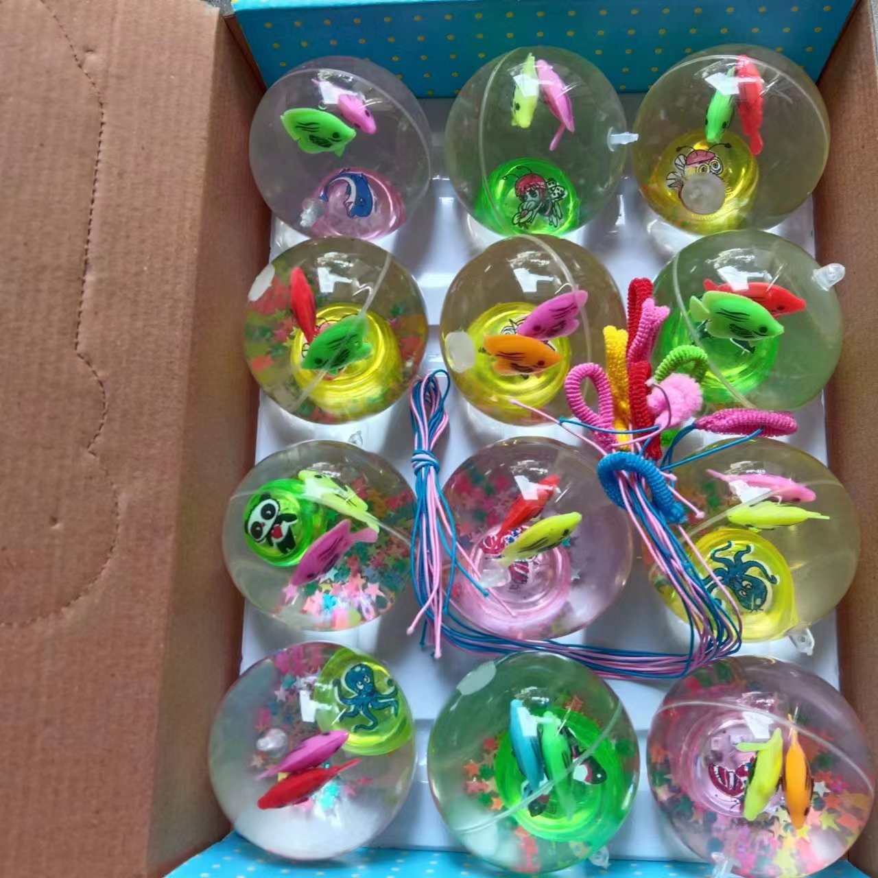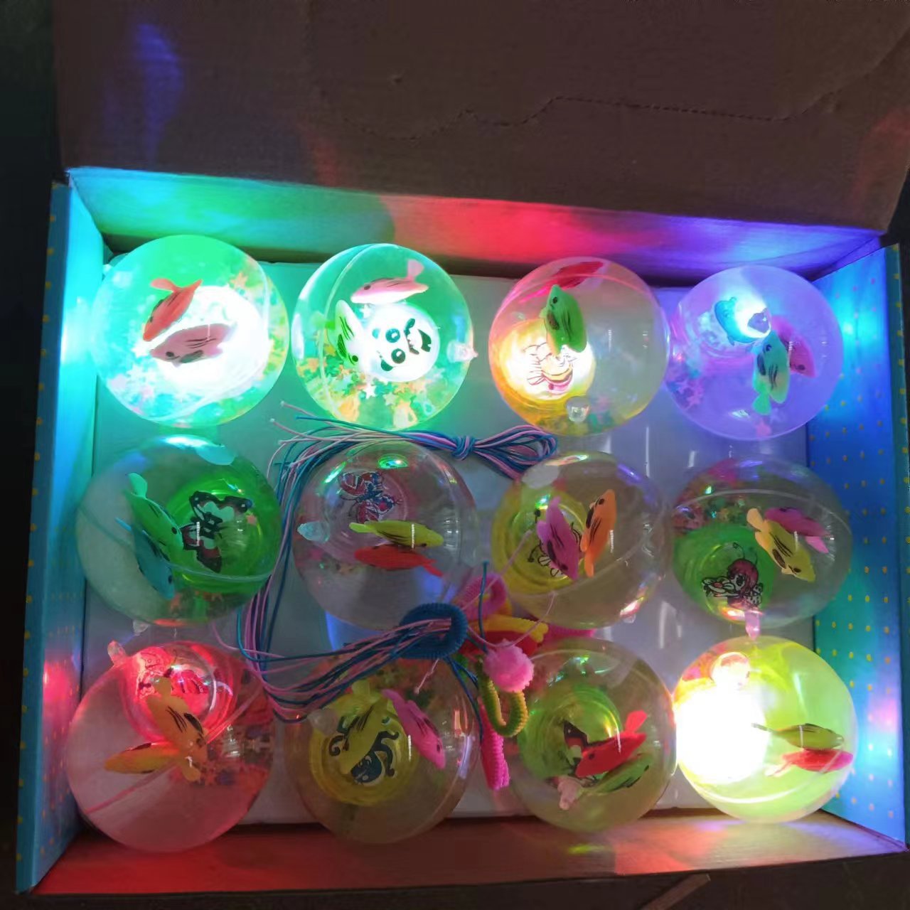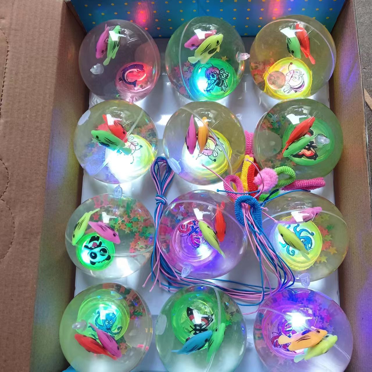 闪光水晶球发光弹力球七彩弹跳水球闪光双鱼儿童玩具球地摊货源JT