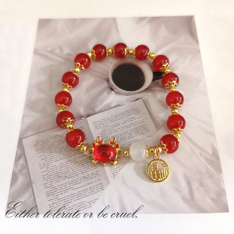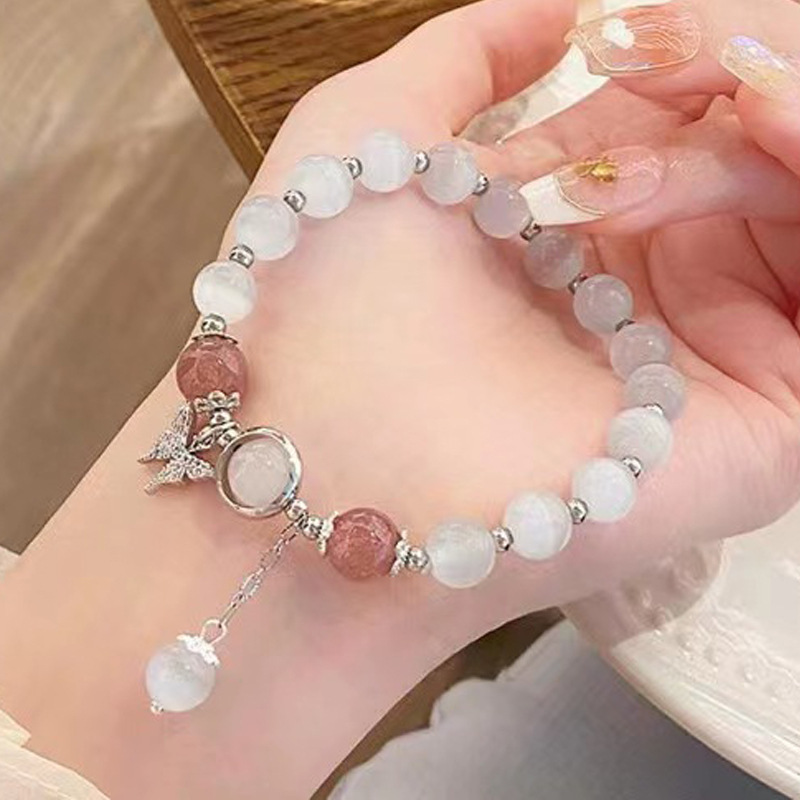 蝴蝶琉璃手链流苏女生ins小众设计森系甜美冰裂彩珠闺蜜手串批发