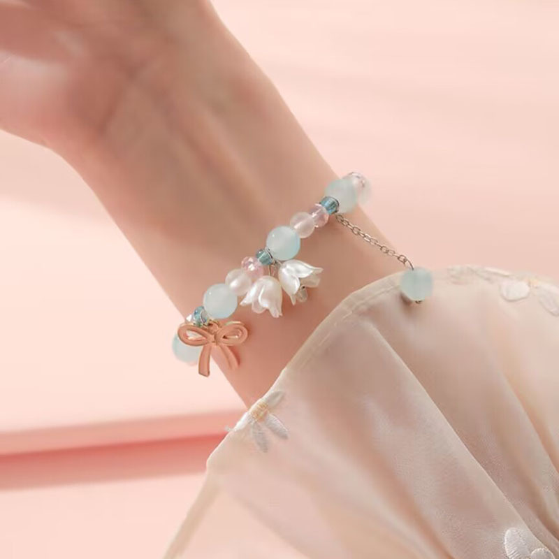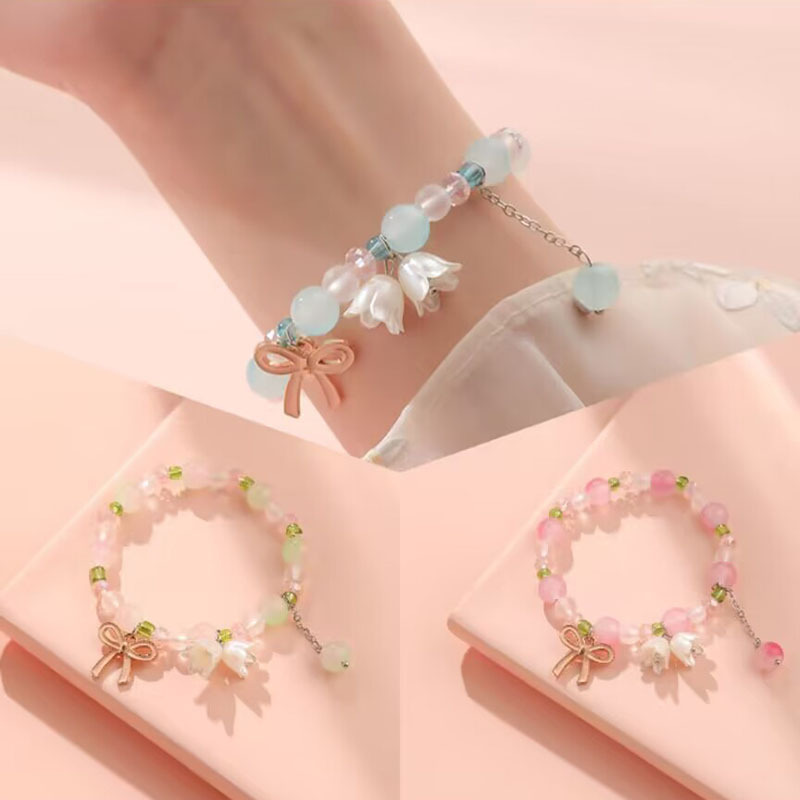 串珠新款超仙铃兰花手链女清新甜美学生闺蜜生日礼物渐变色手串