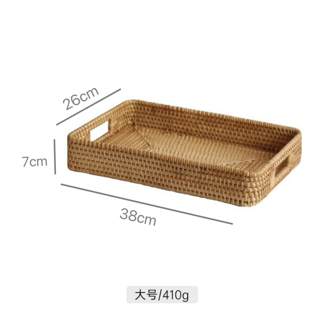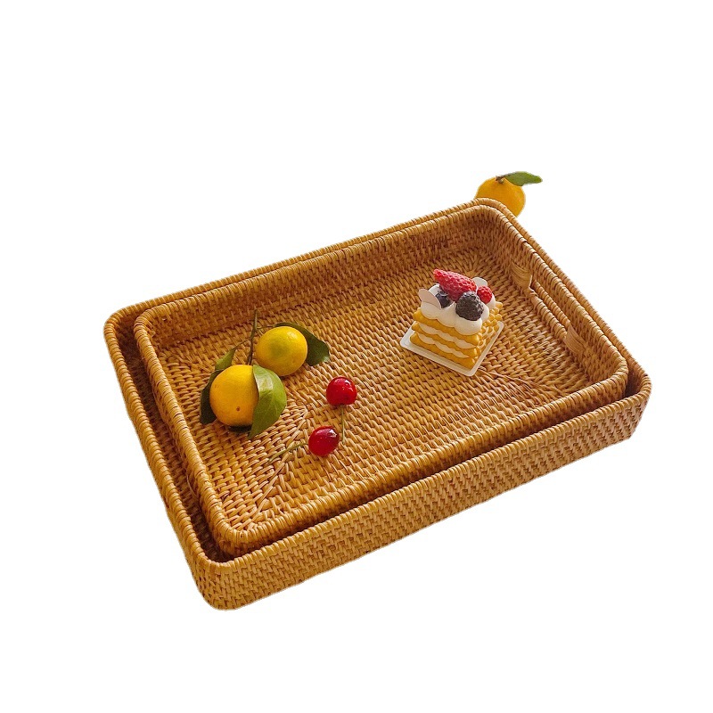 秋藤编收纳托盘水果篮客厅长方形家用果盘面包蔬菜柳编收纳筐茶盘
