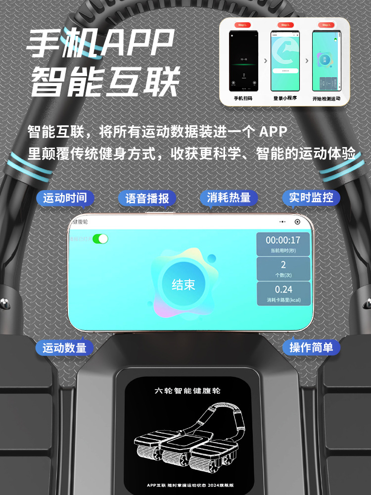 源工厂跨境新款四轮自动回弹健腹轮男士收腹神器练腹肌卷腹机