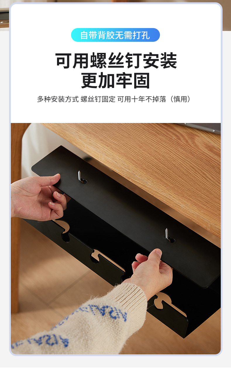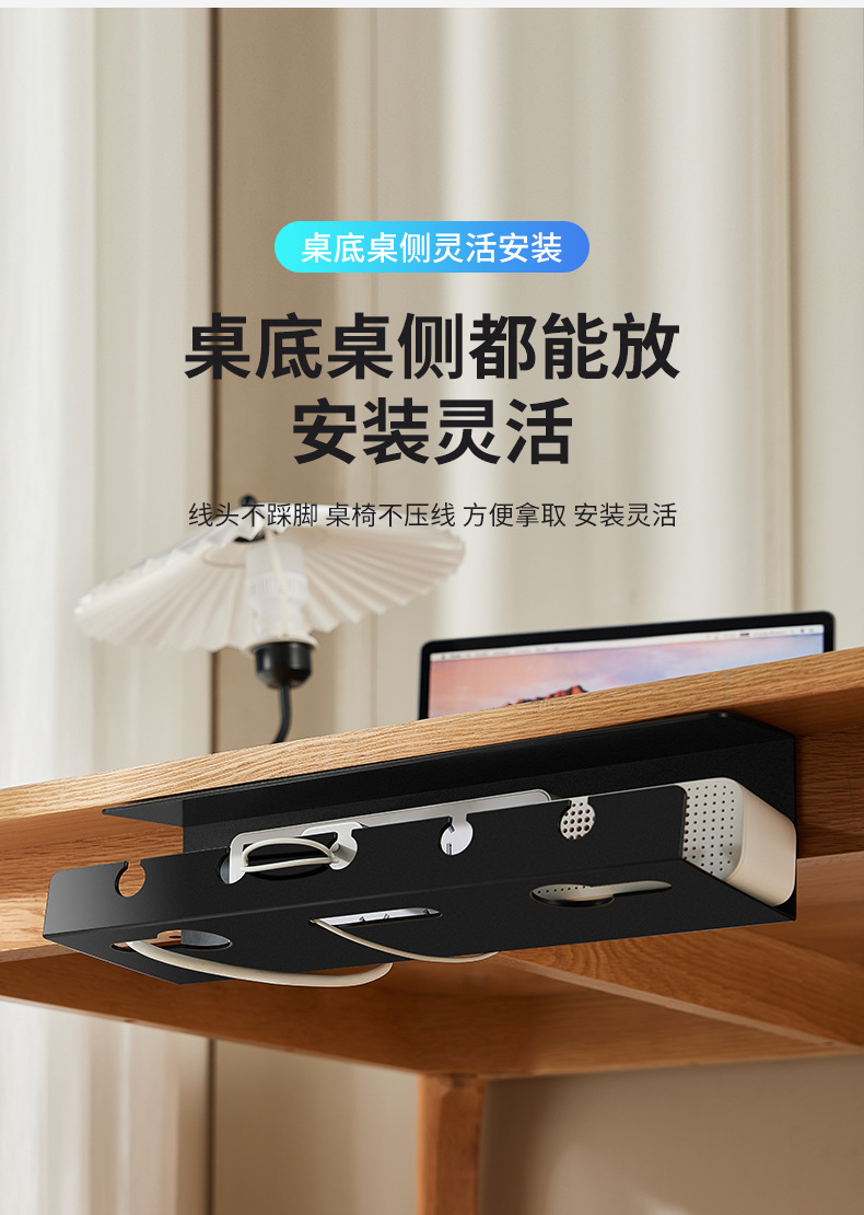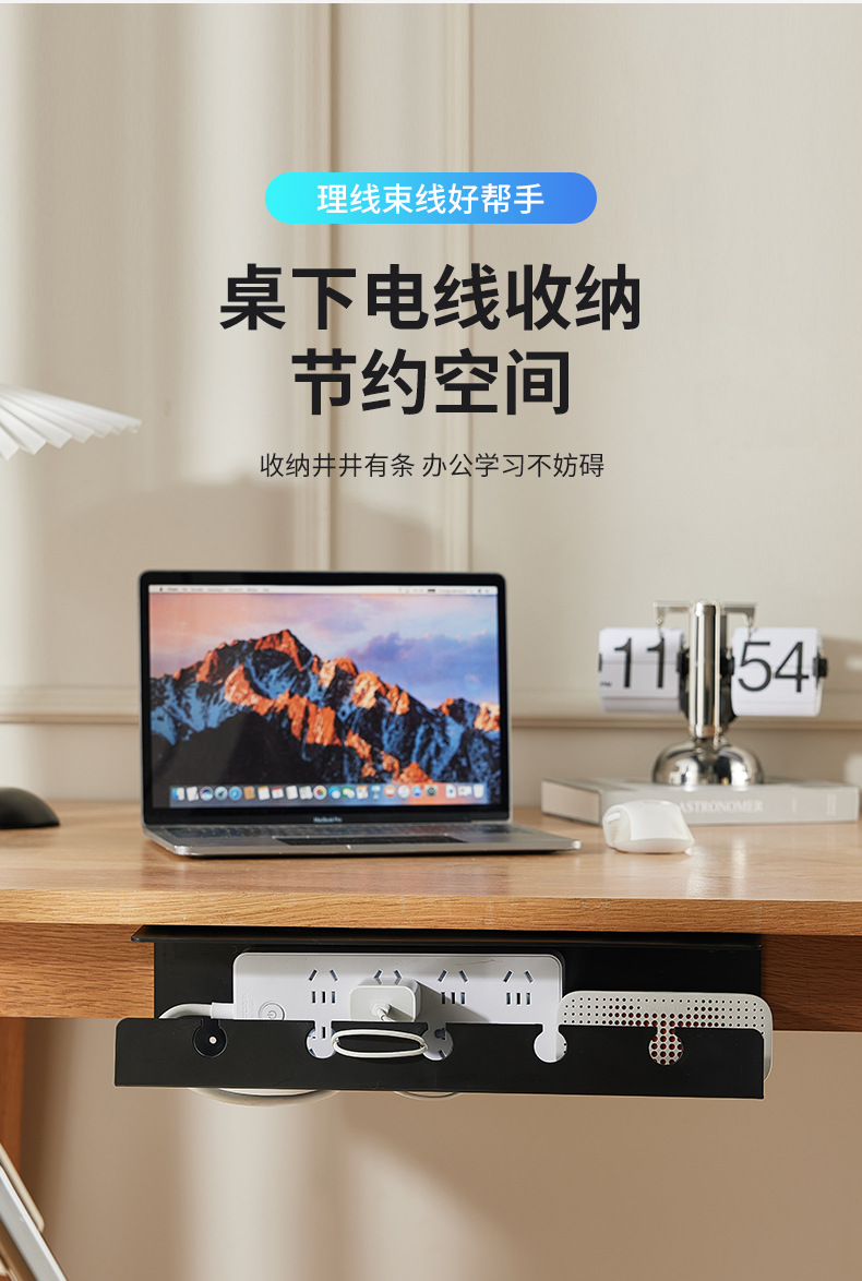 桌下理线器收纳架免打孔电脑桌下理线槽插排电线排查整理收纳盒