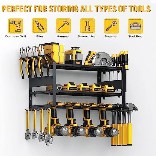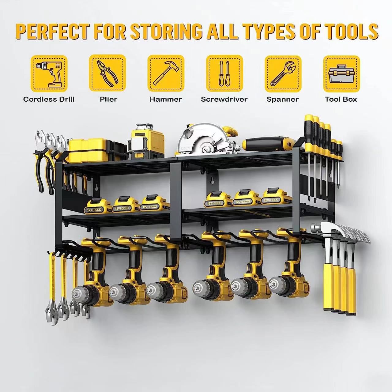 跨境热销简约式壁挂式电钻架工具收纳架重型浮动车库存储架置物架
