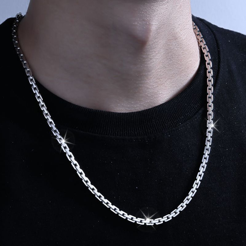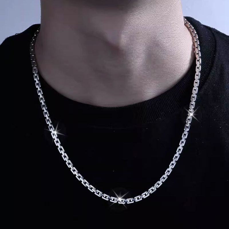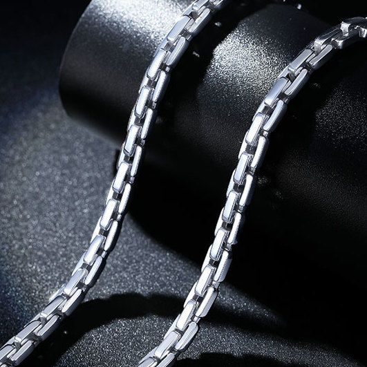 新款pt950铂金古巴项链男款正品纯白金四方项链结实显粗潮男素链