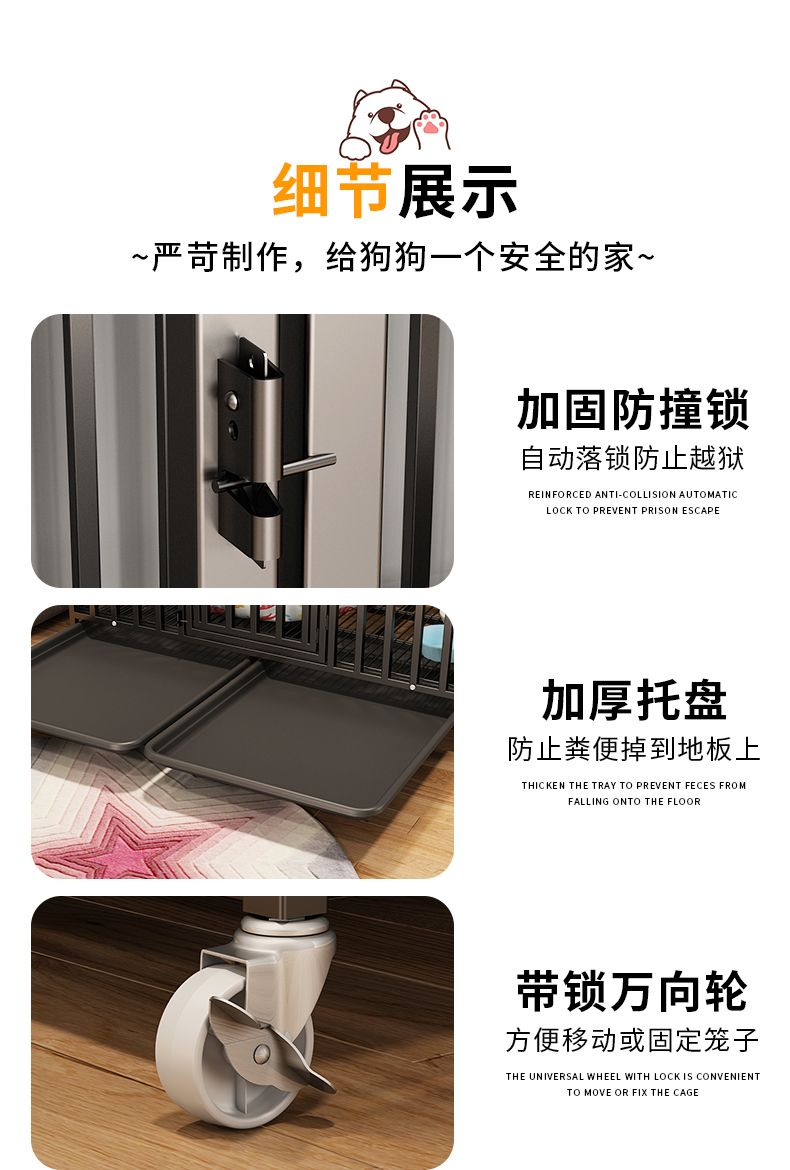 狗笼子宠物泰迪家用室内小型犬中大型犬带厕所分离猫笼兔笼狗别墅