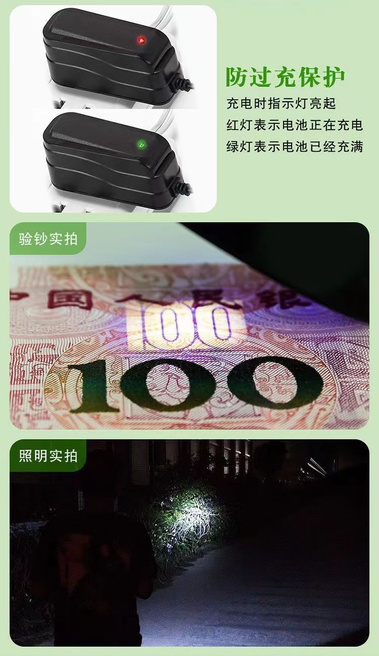 照明验钞二合一LED手电筒强光可充电小型便携式家用耐用户外手电