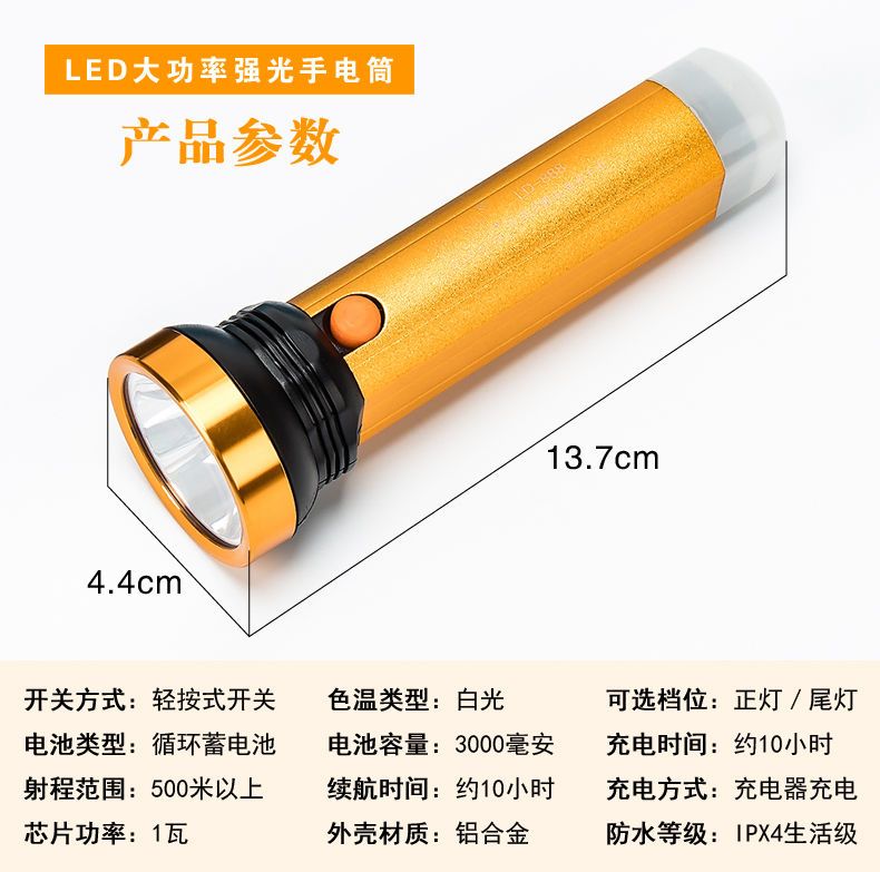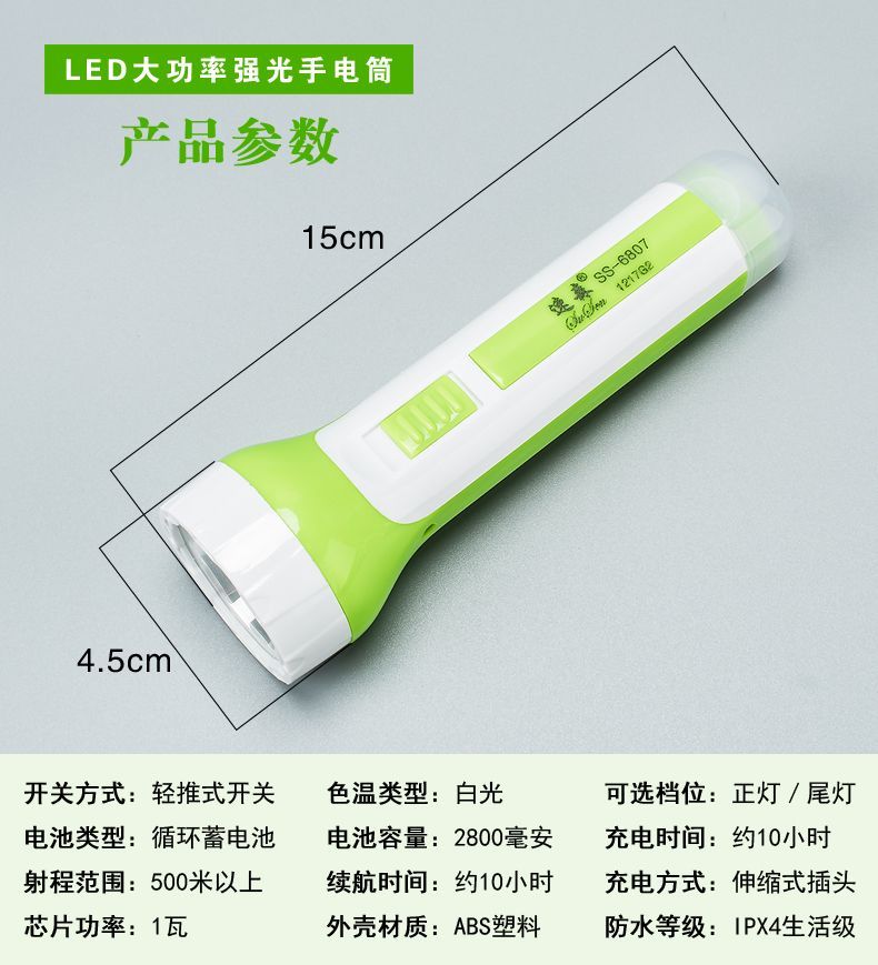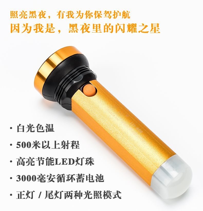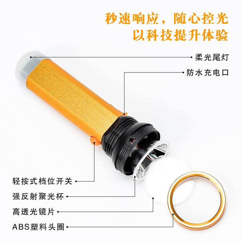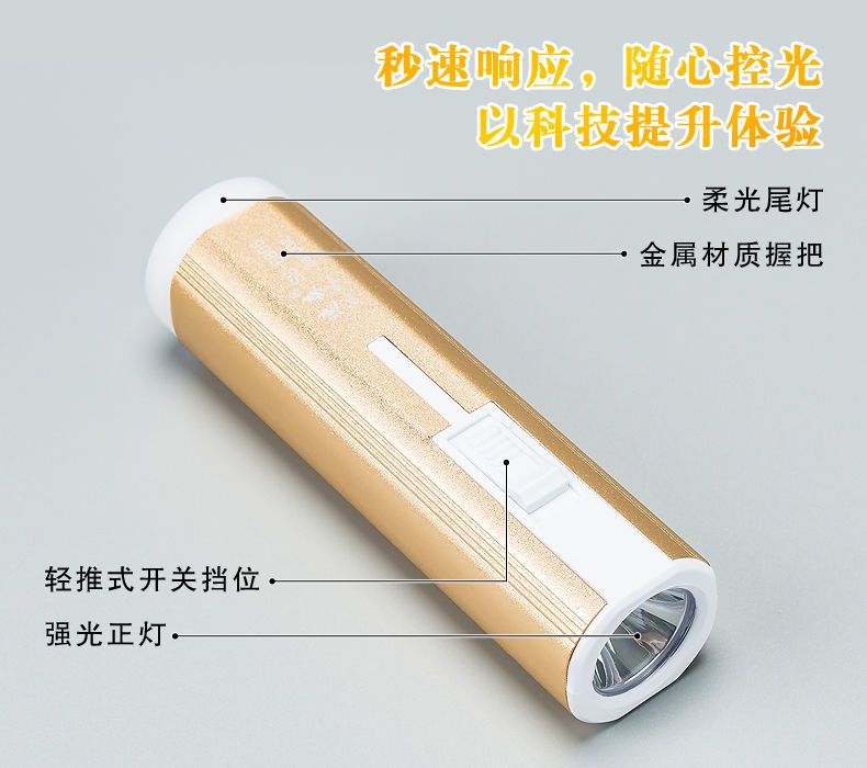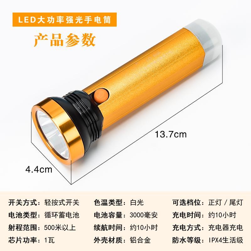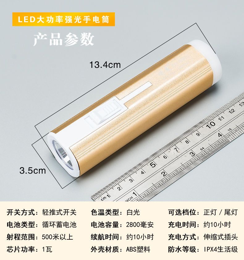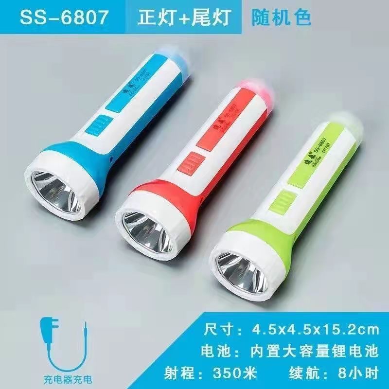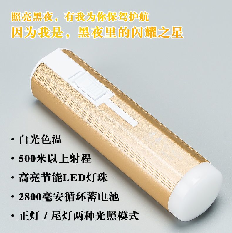 LED强光手电筒小型便携式可充电带尾灯家用应急户外照明手电筒