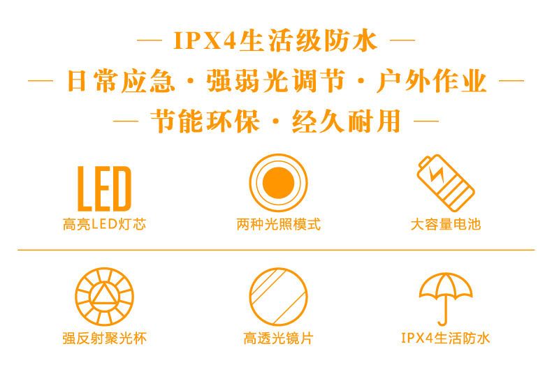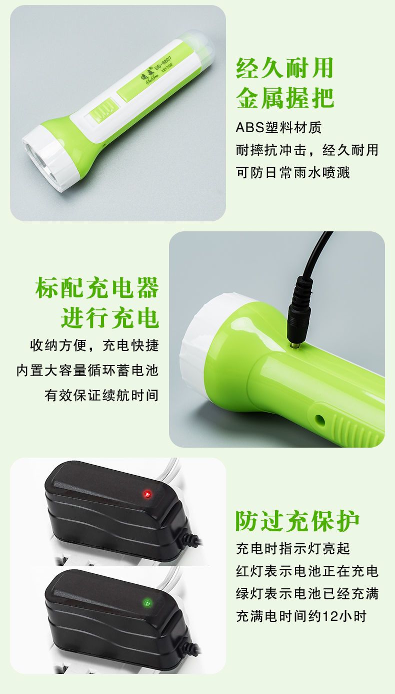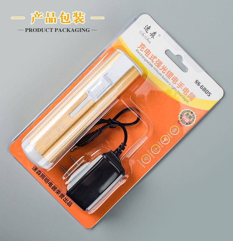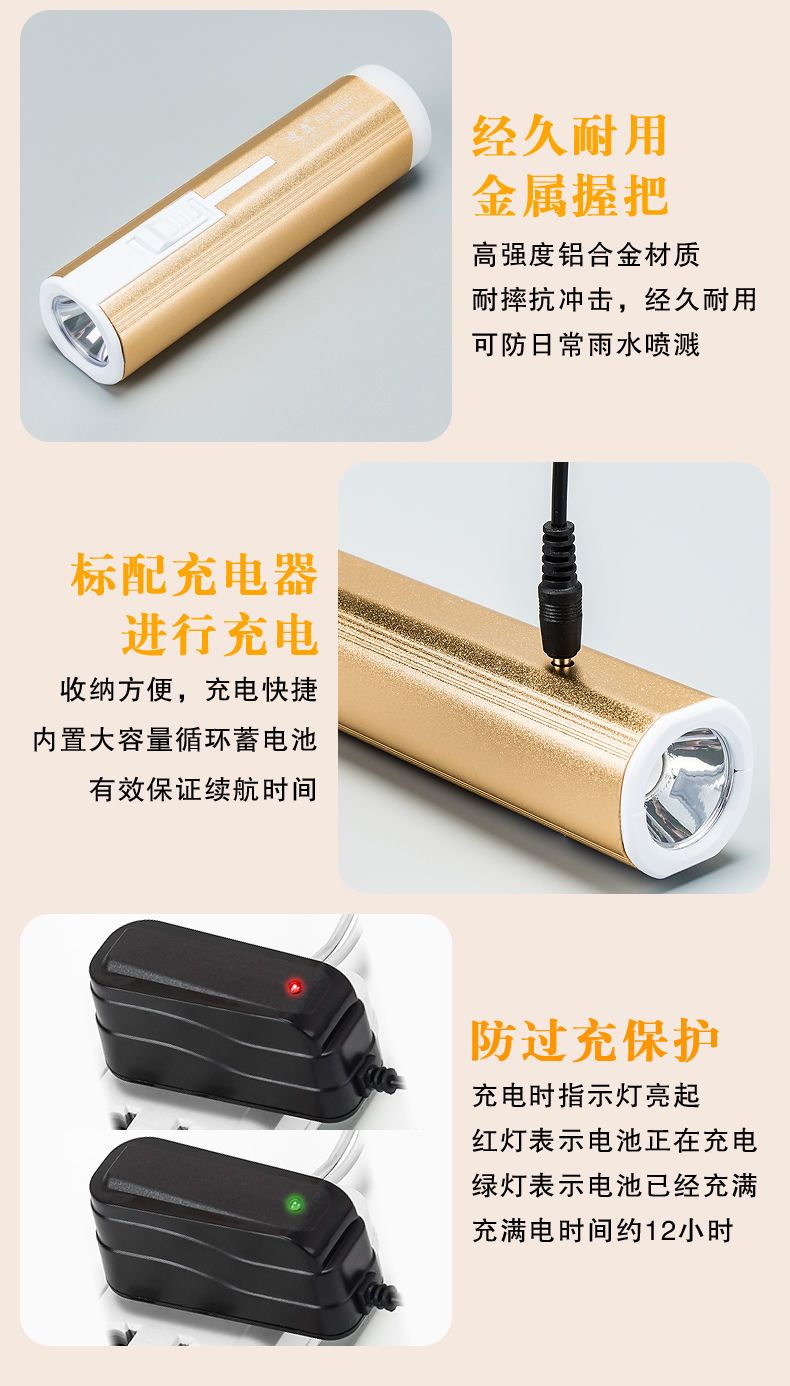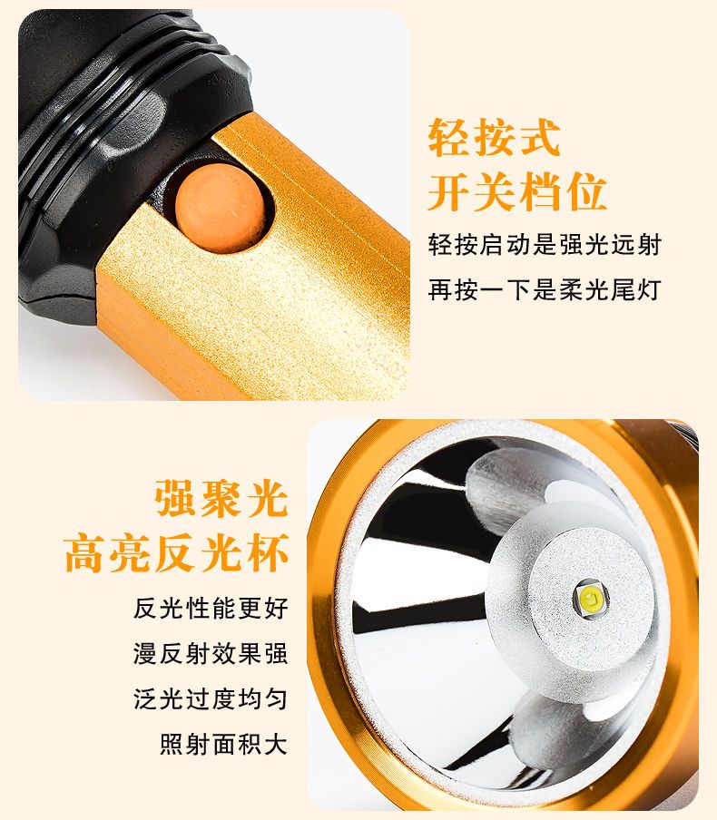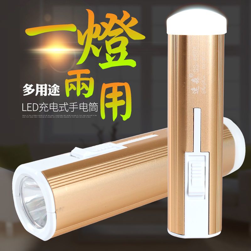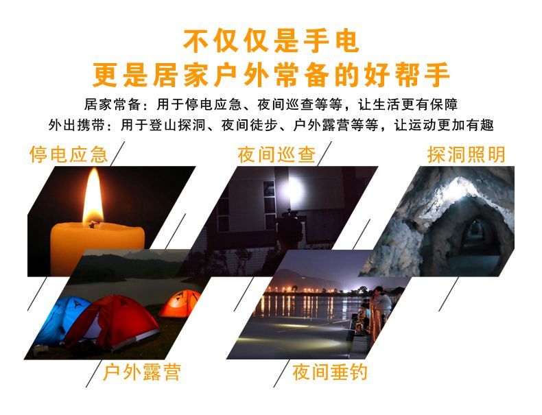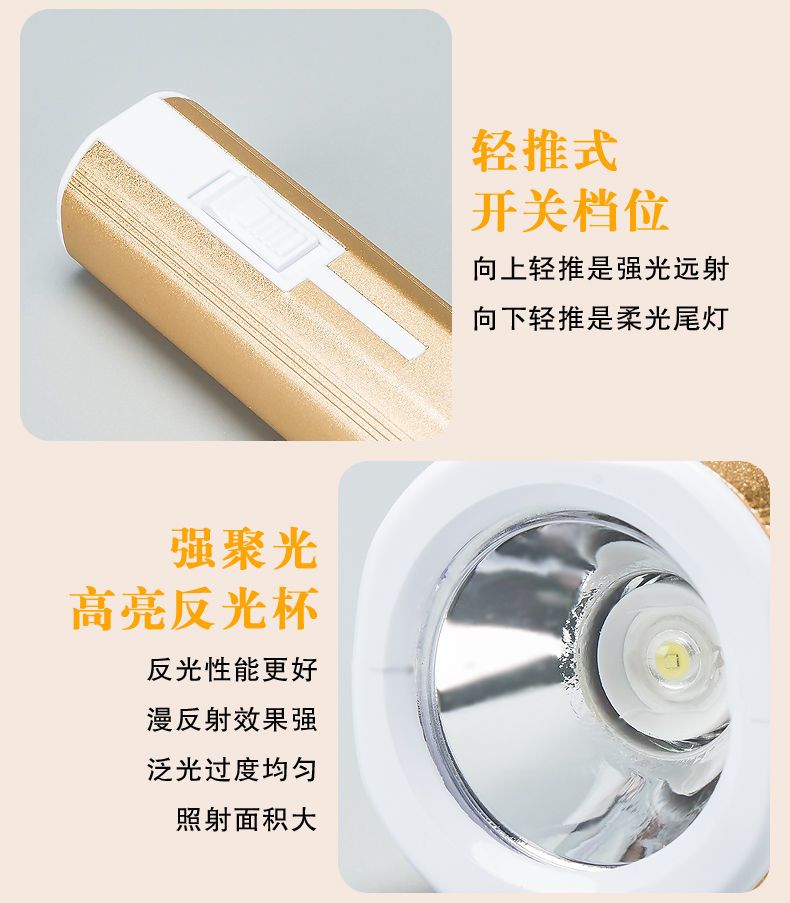 LED强光手电筒小型便携式可充电带尾灯家用应急户外照明手电筒