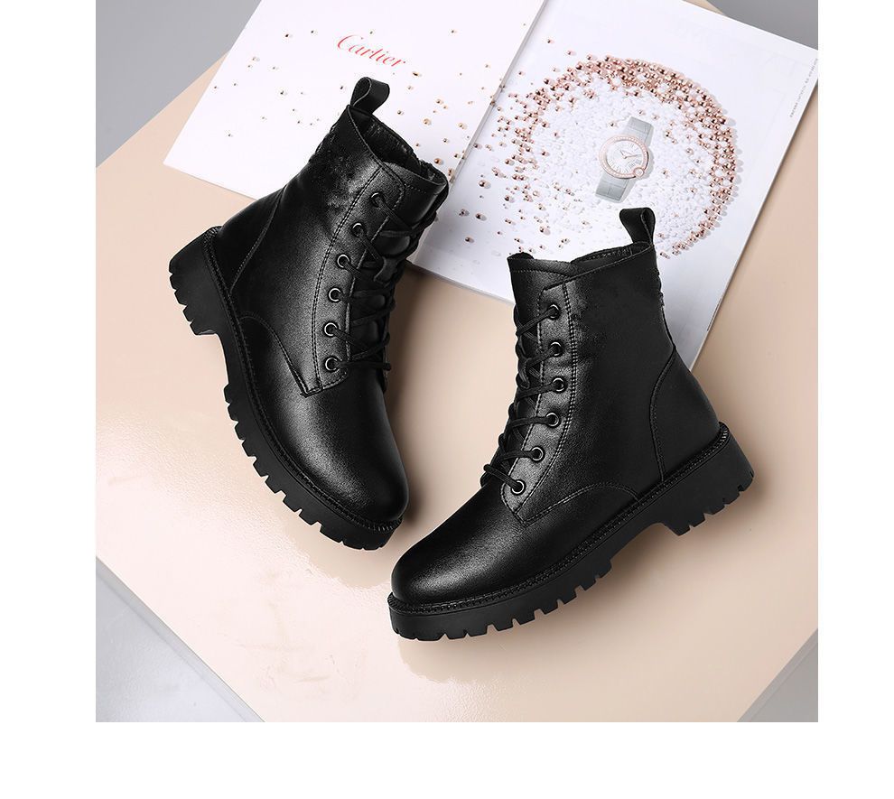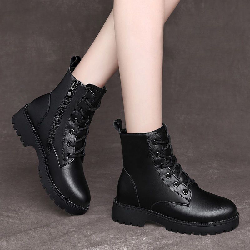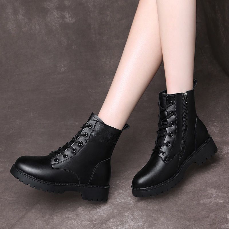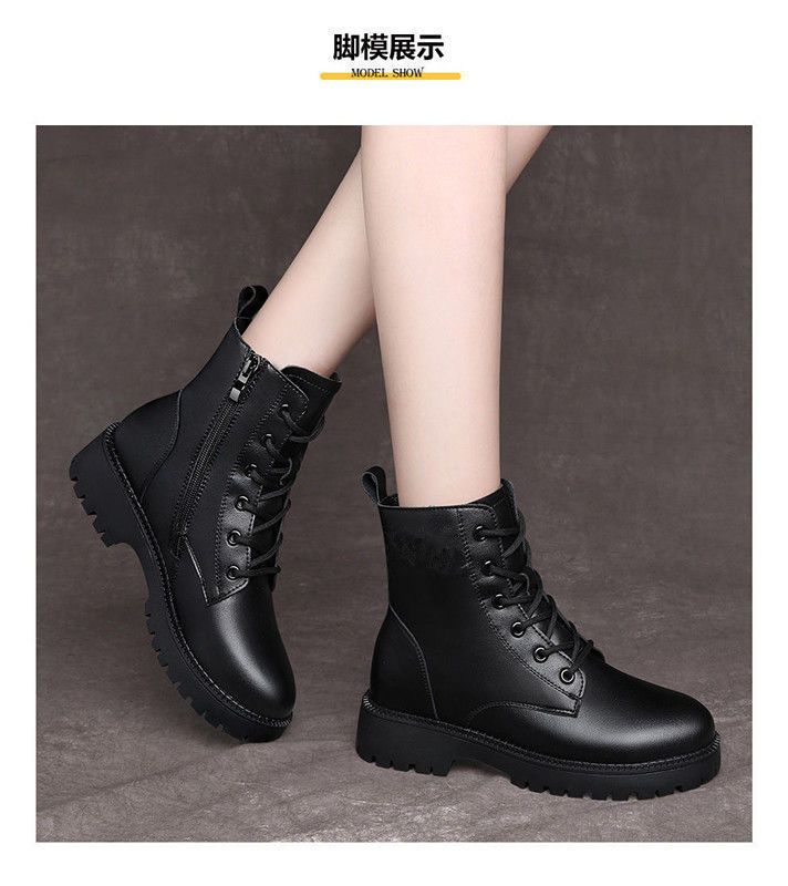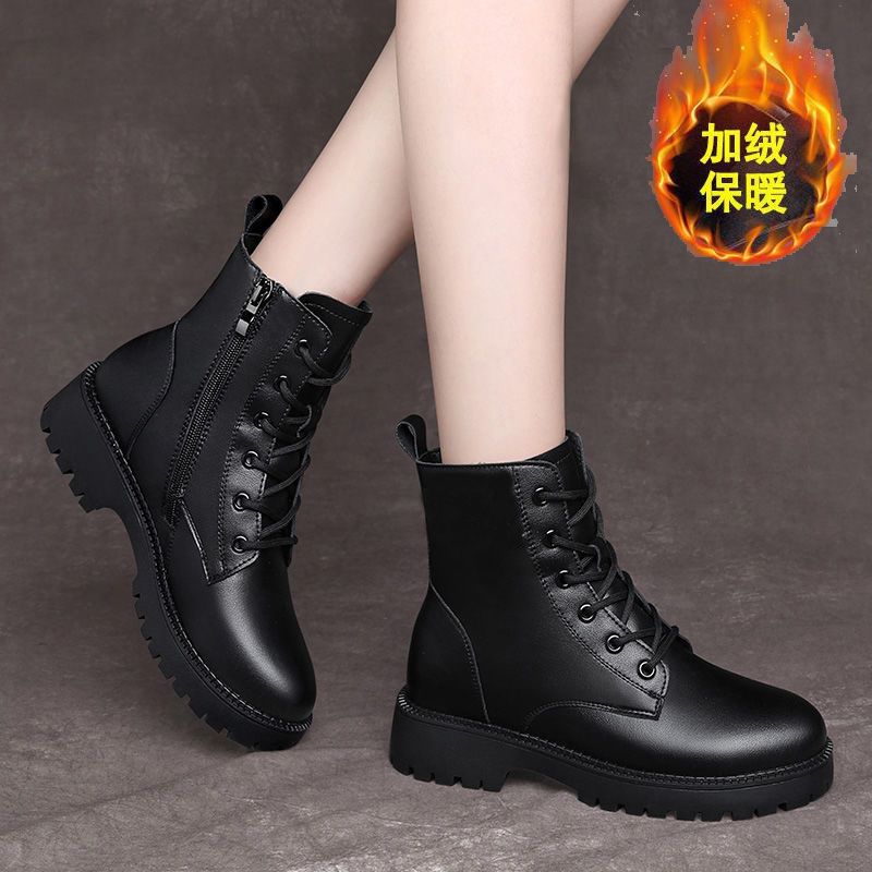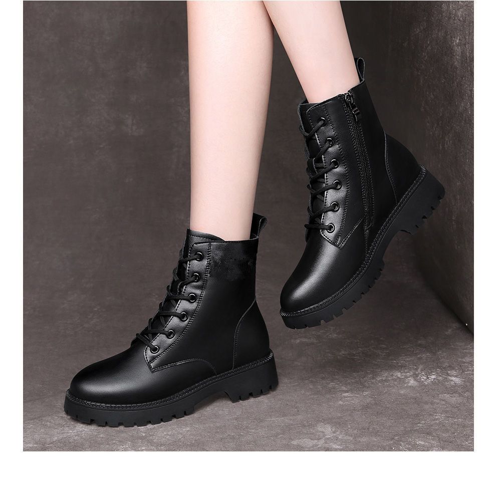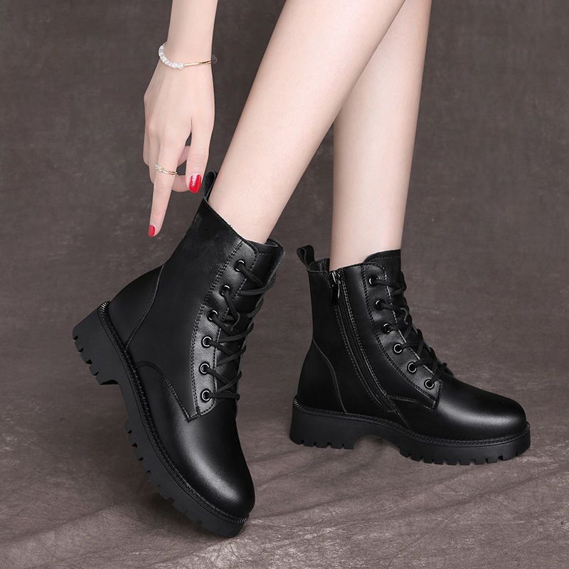 真软皮马丁靴2021年秋冬季新款短靴厚底单靴粗跟中跟防滑妈妈皮鞋