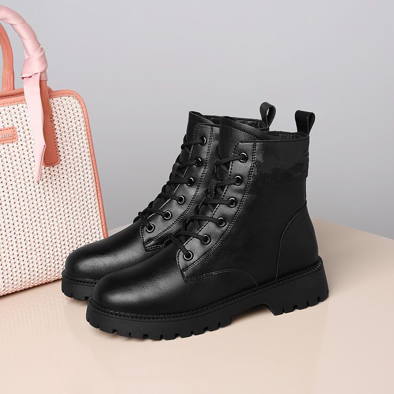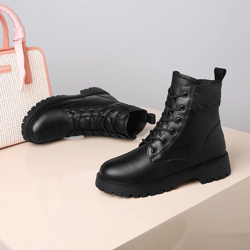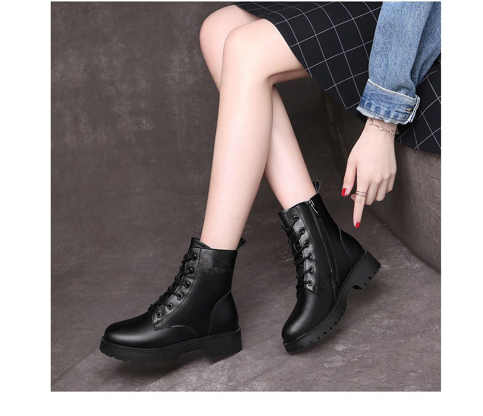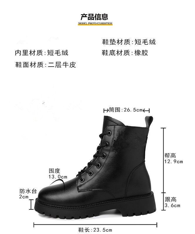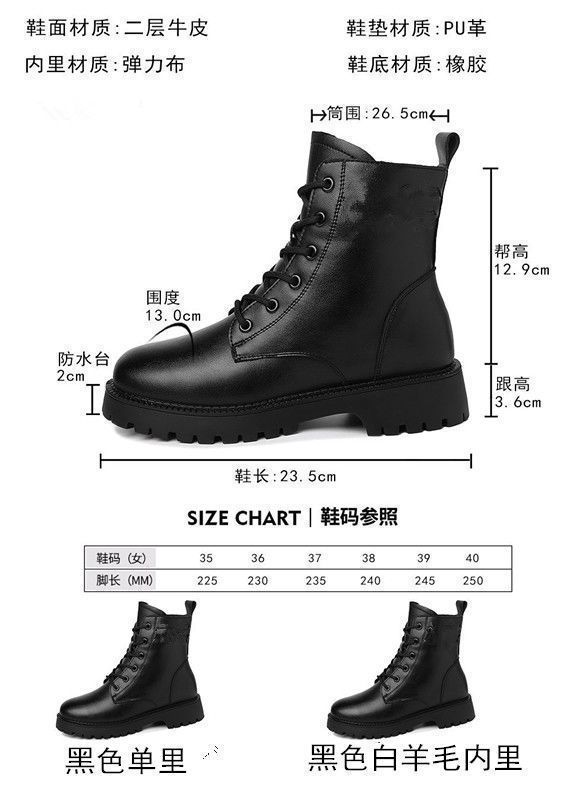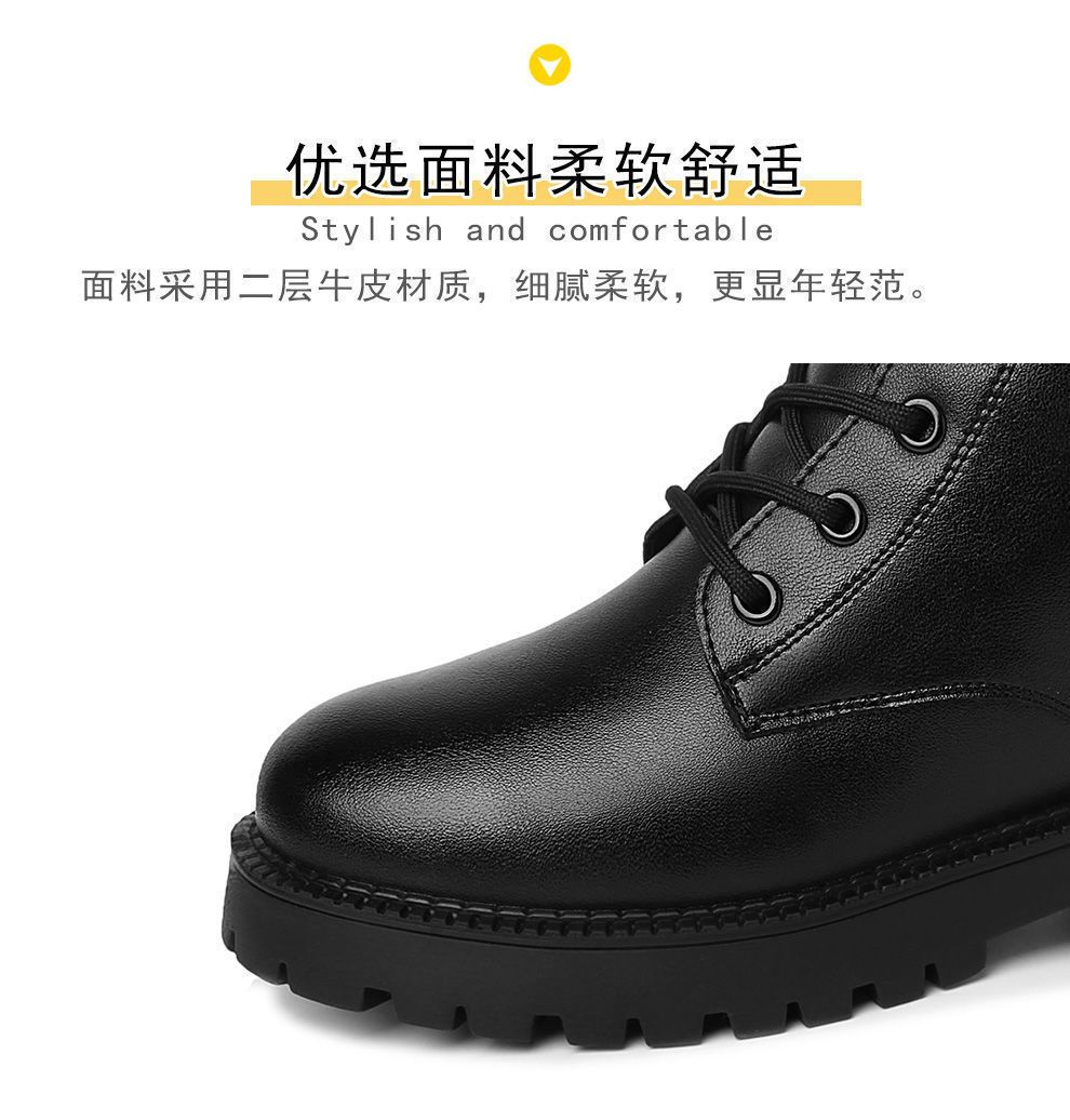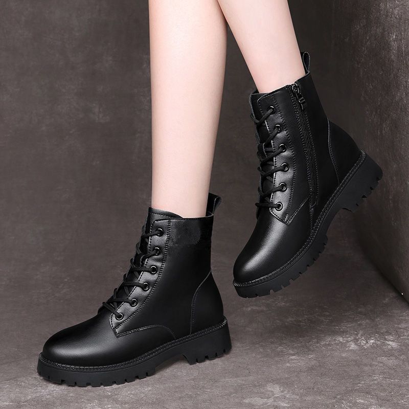 真软皮马丁靴2021年秋冬季新款短靴厚底单靴粗跟中跟防滑妈妈皮鞋