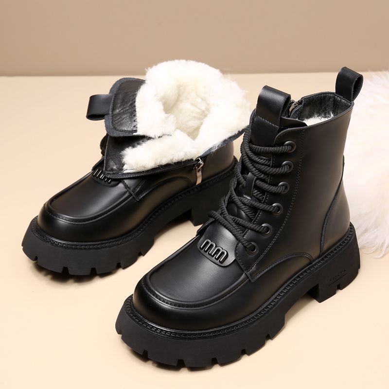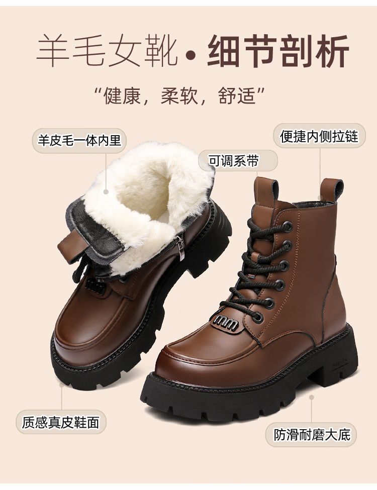 2024真皮羊毛皮毛一体雪地靴女冬马丁防寒保暖棉鞋加绒加厚棉靴
