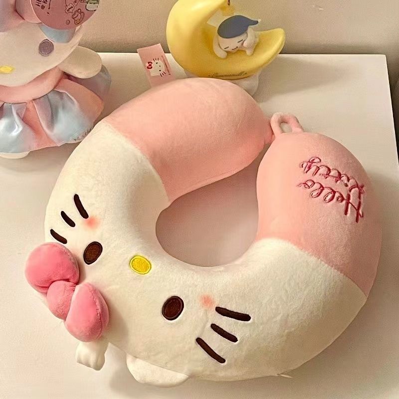 ins可爱kt猫u型枕少女心飞机旅行护枕pp棉助眠睡枕毛绒玩具送女生