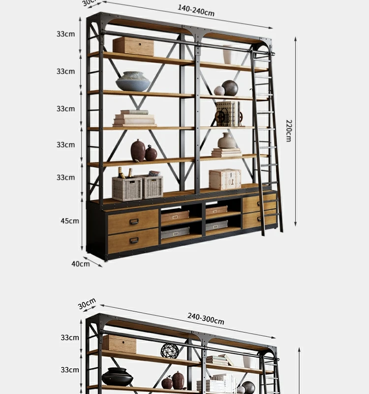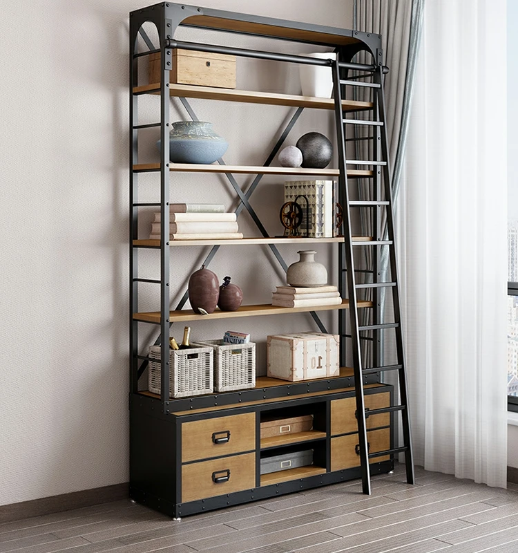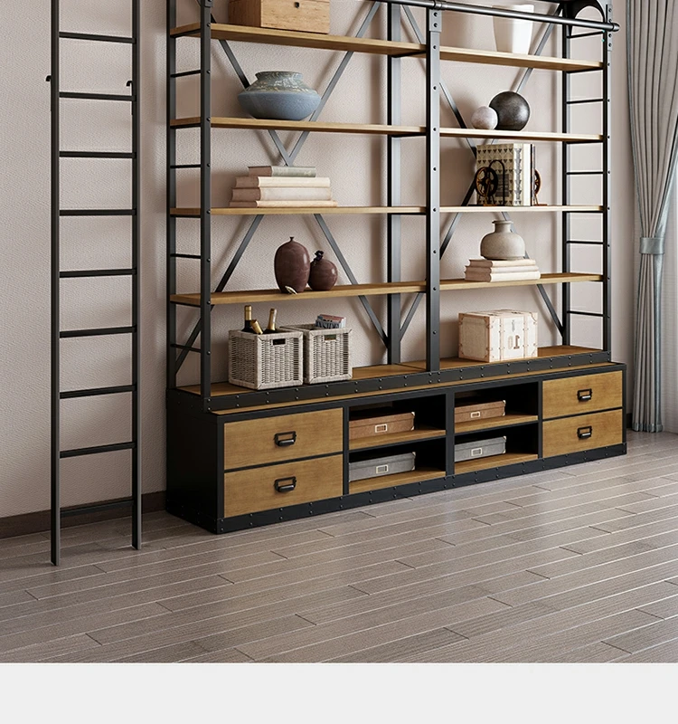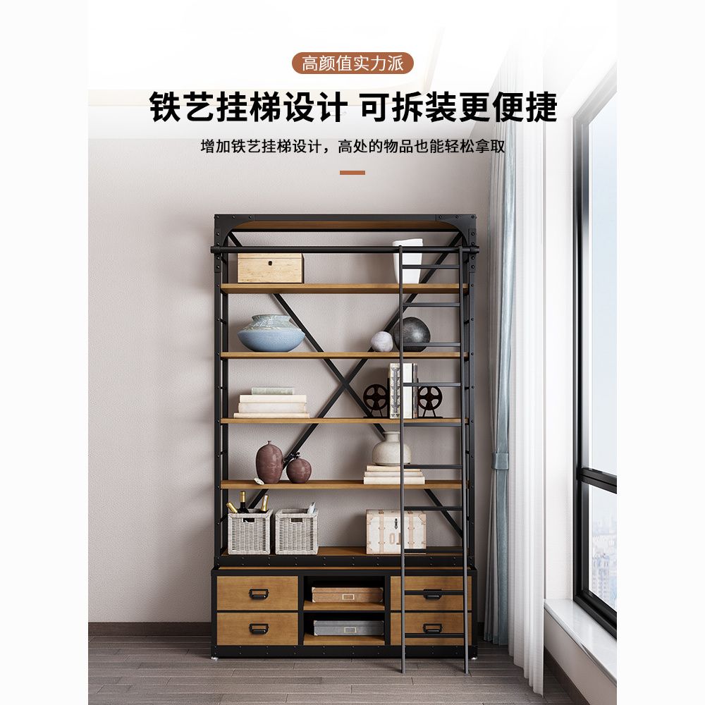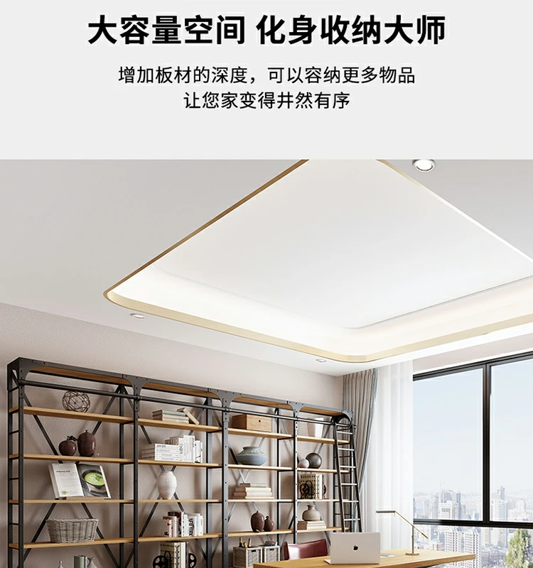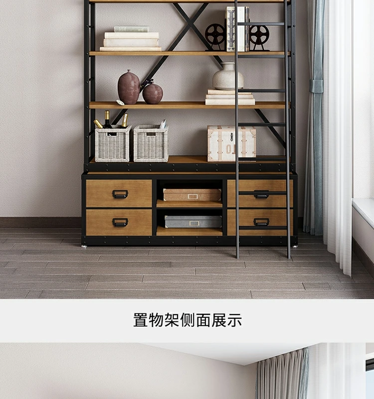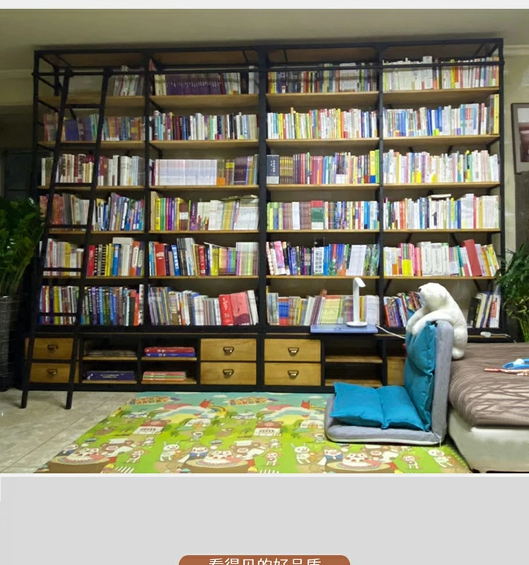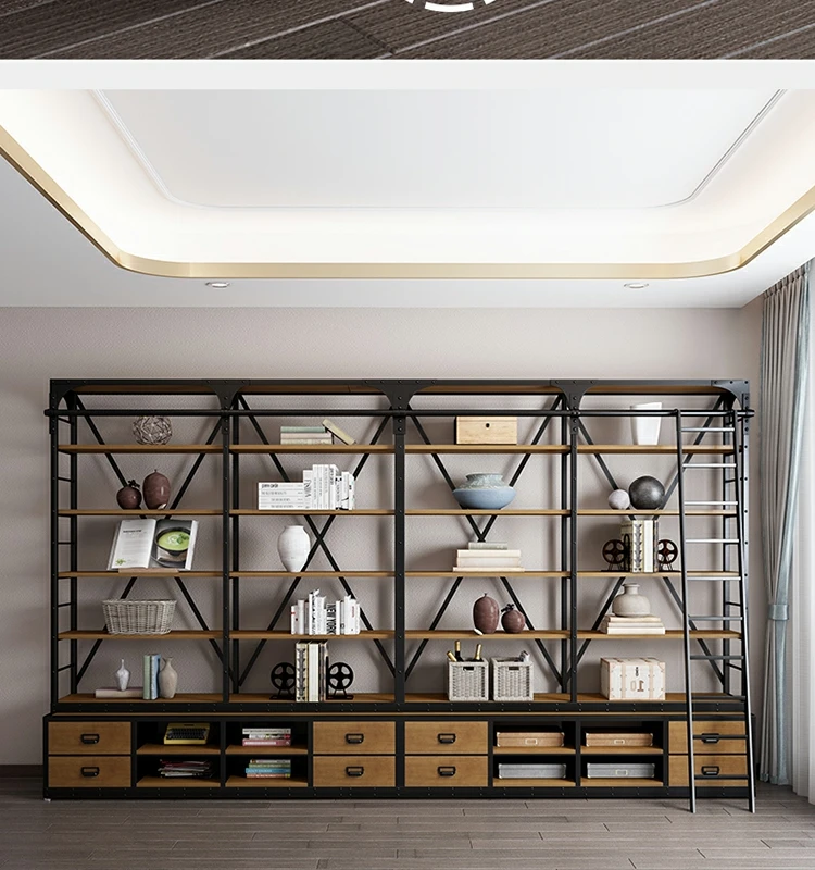 loft美式工业风家具铁艺书架置物架落地实木收纳客厅满墙书柜定制