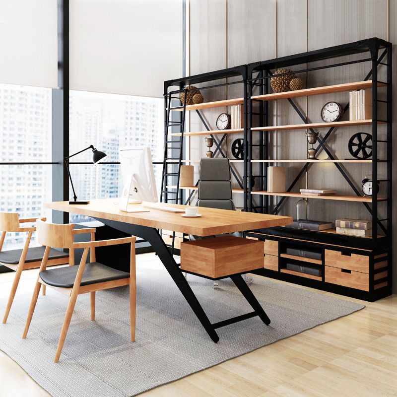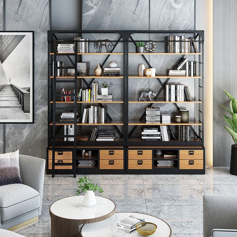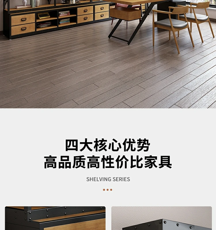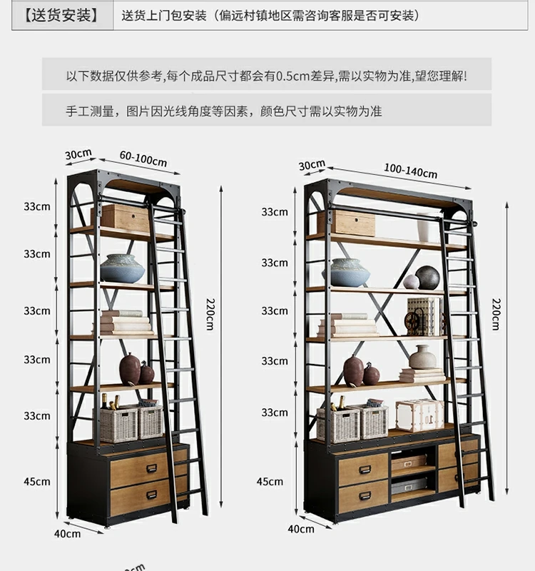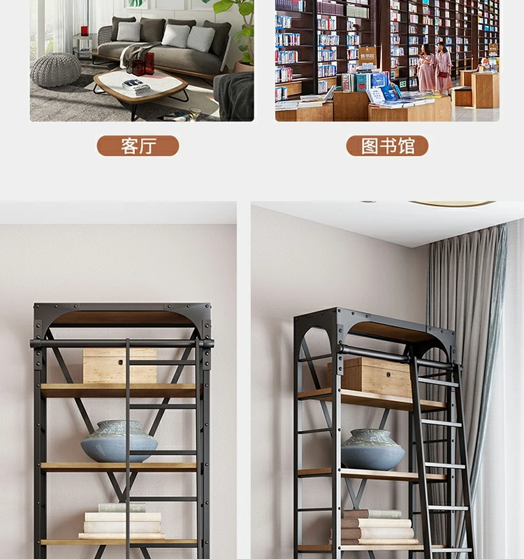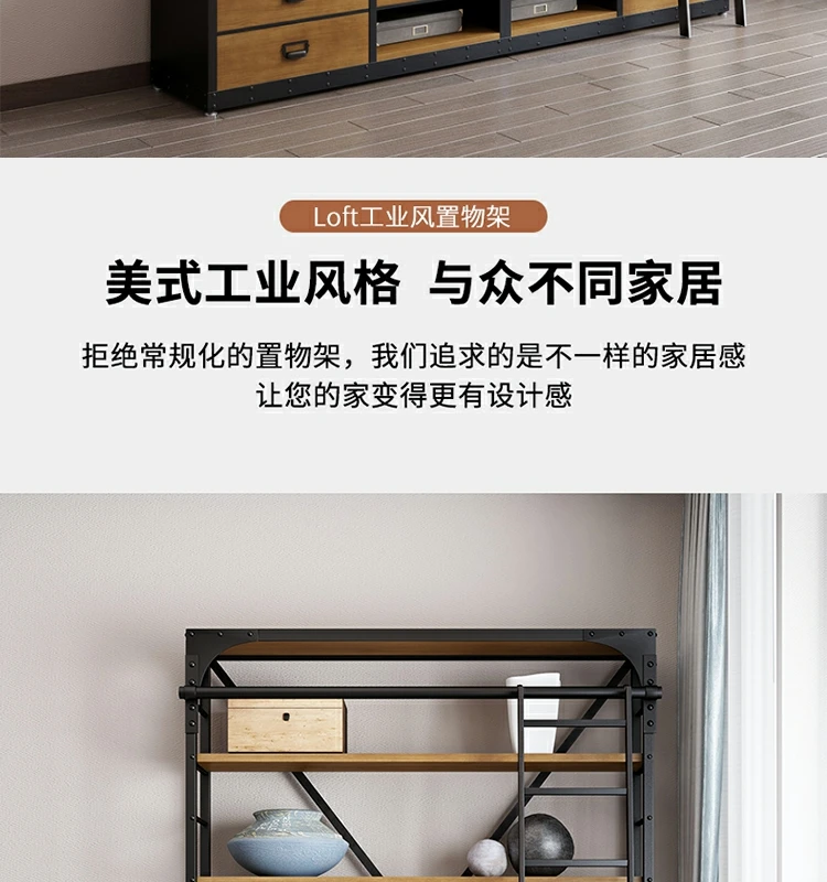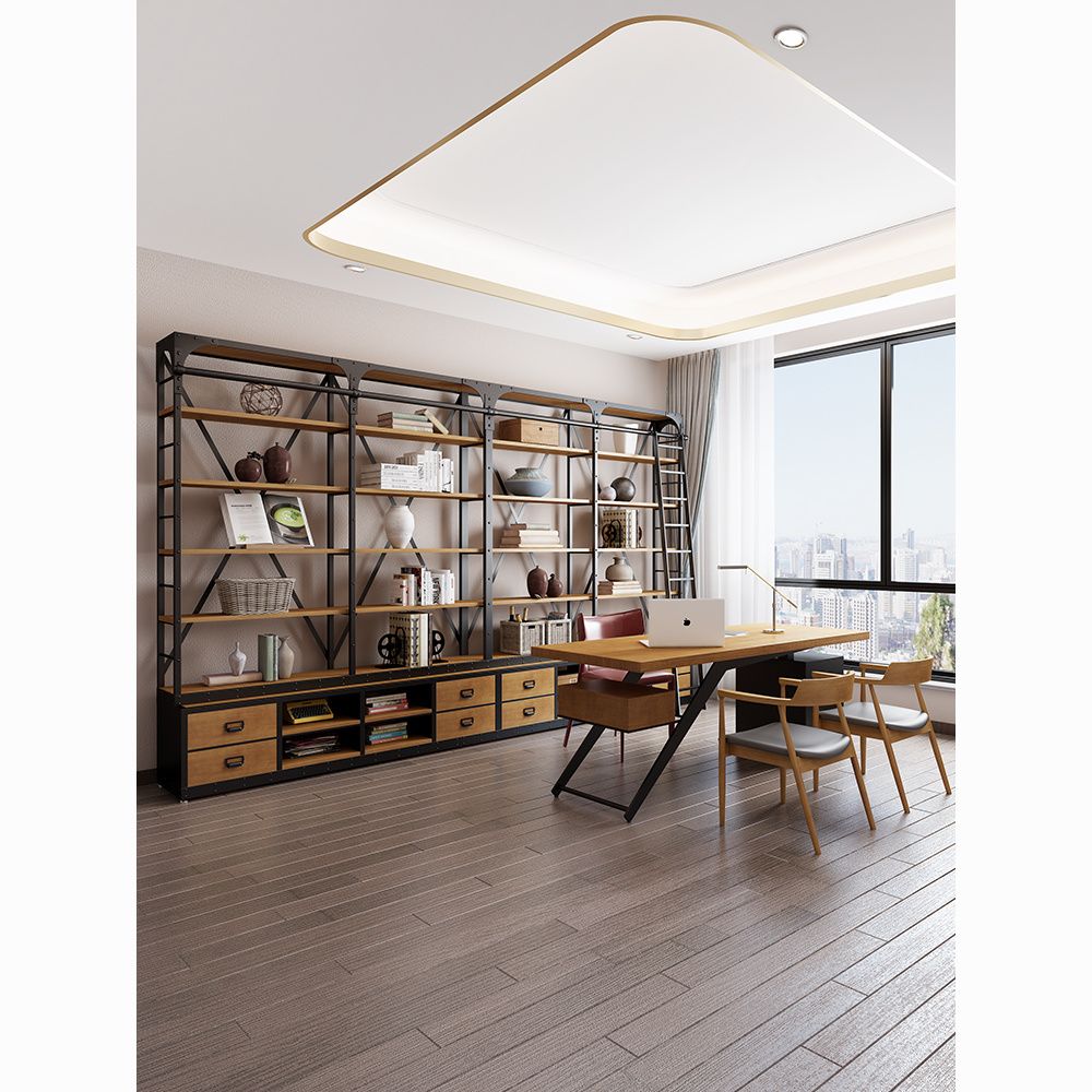 loft美式工业风家具铁艺书架置物架落地实木收纳客厅满墙书柜定制