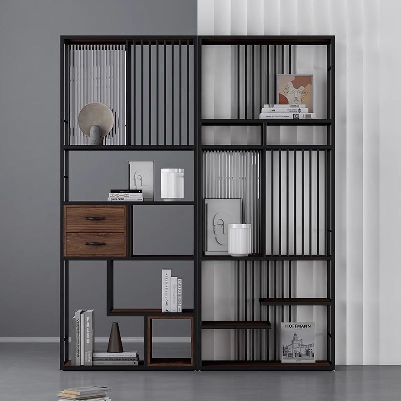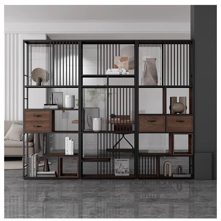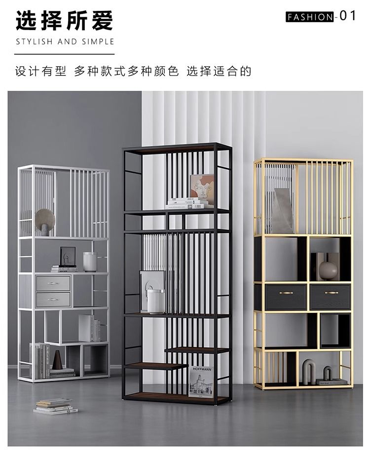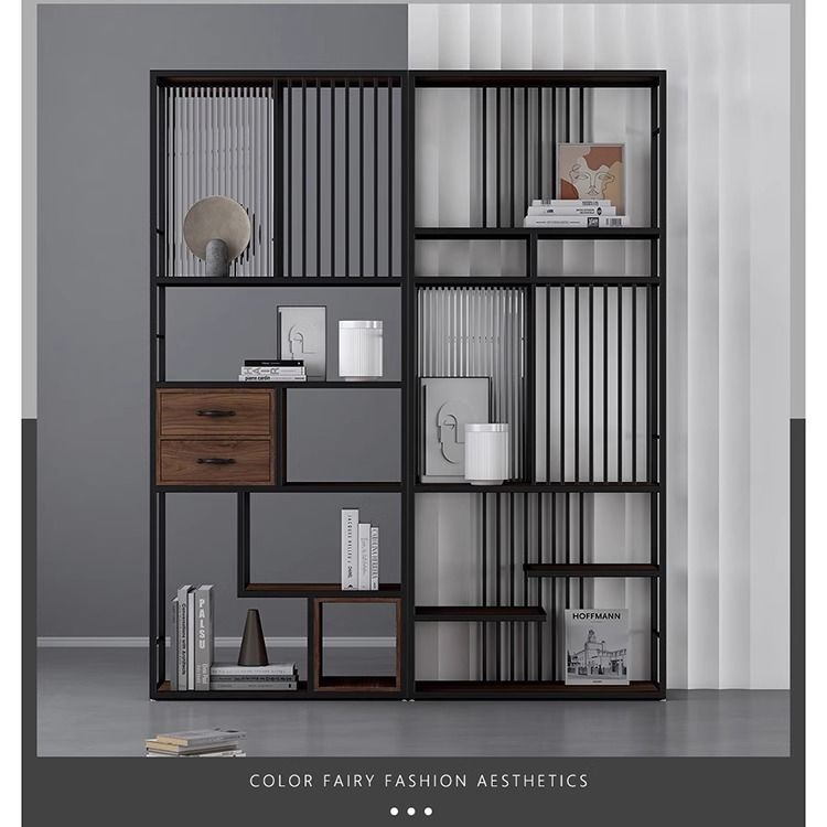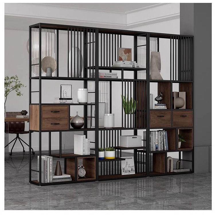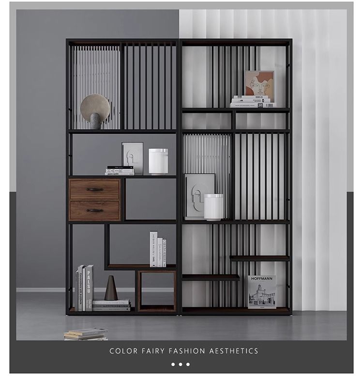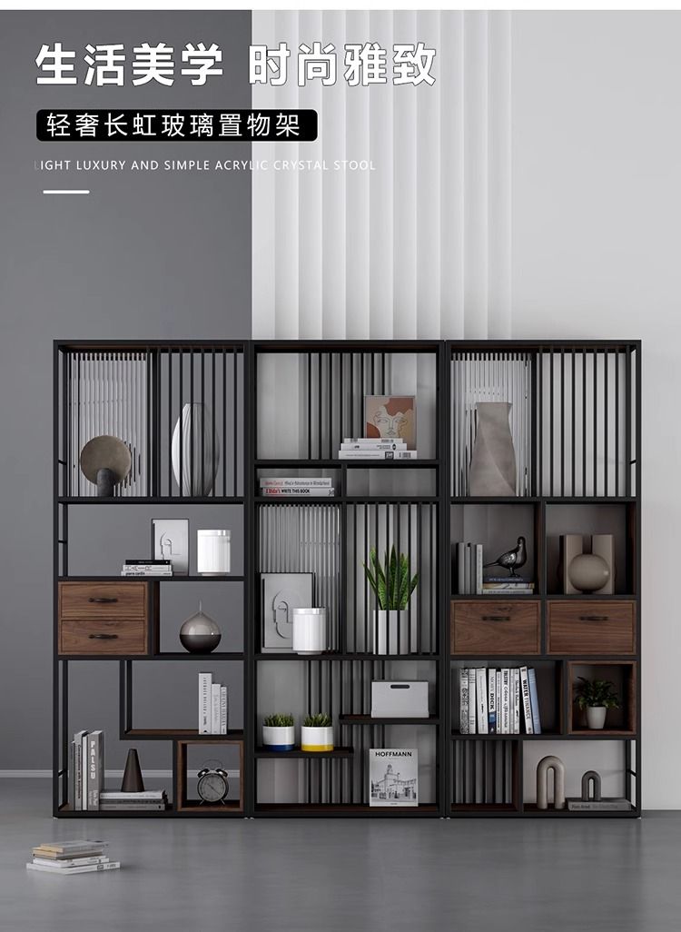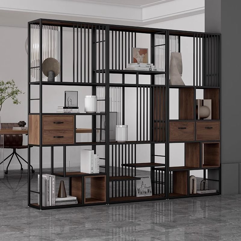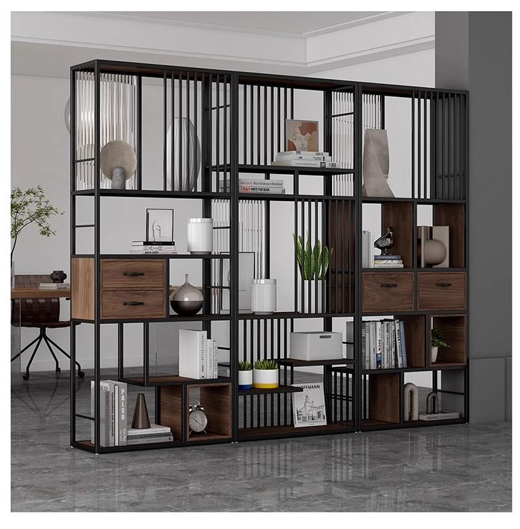 落地置物架铁艺书架隔断客厅博古架实木简约现代复古工业办公室