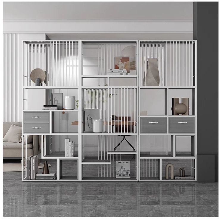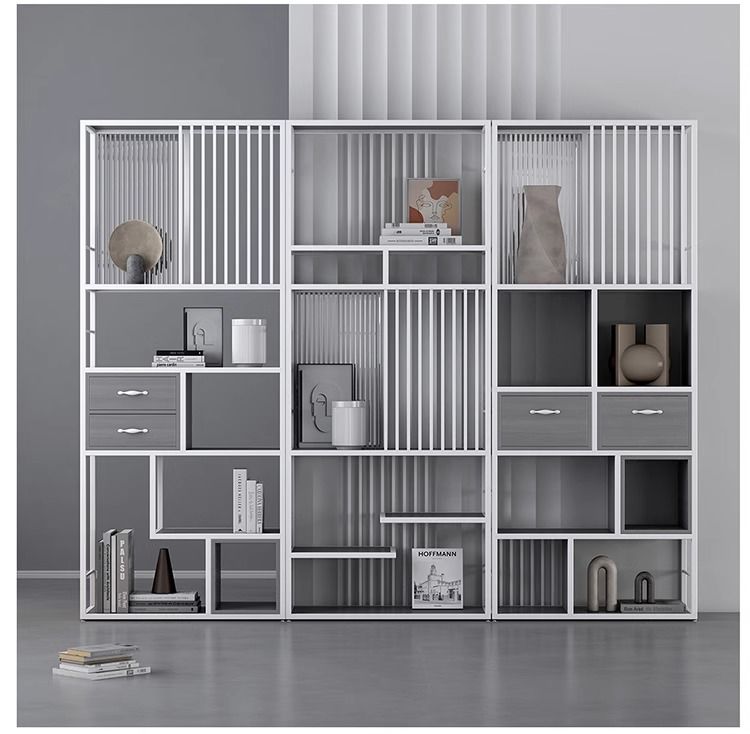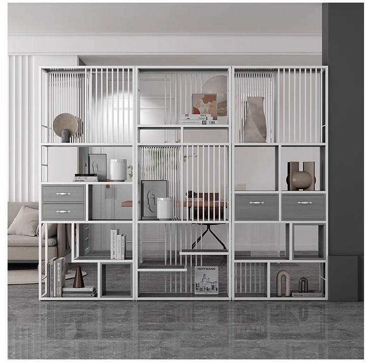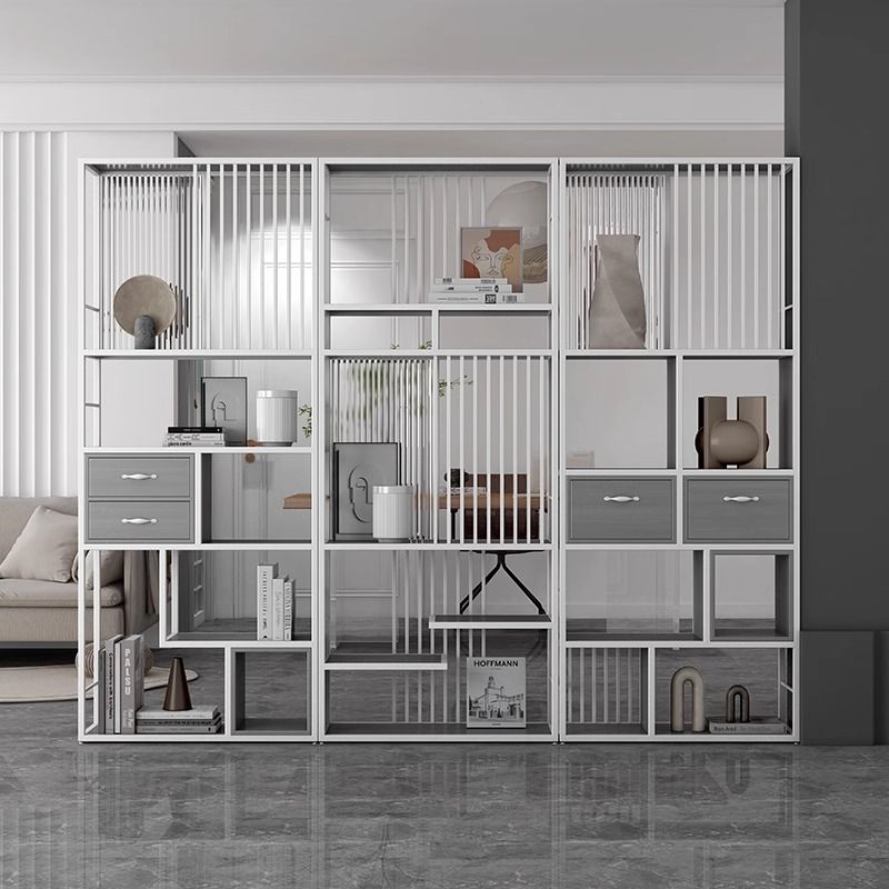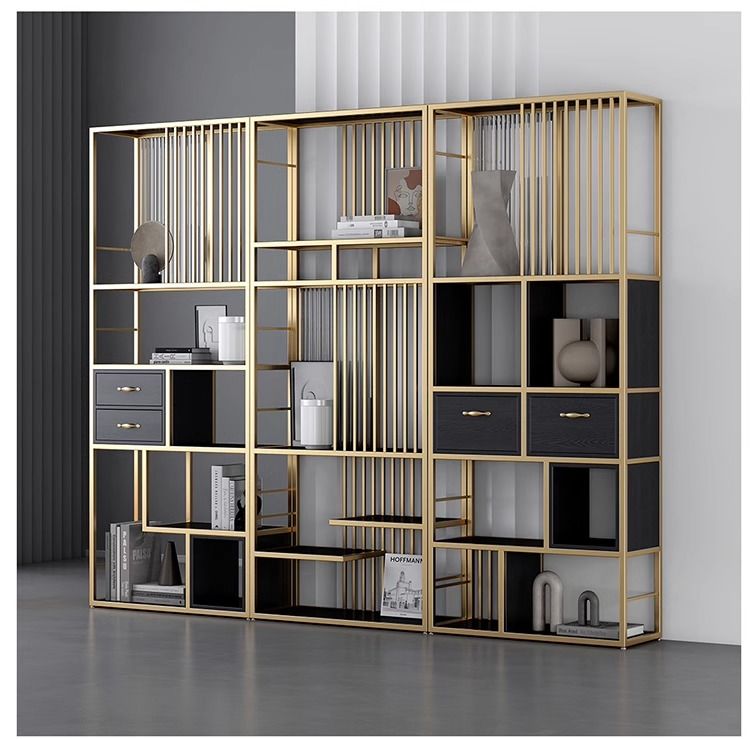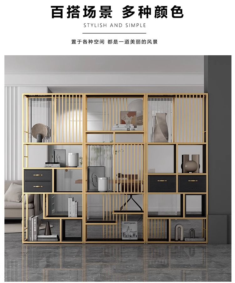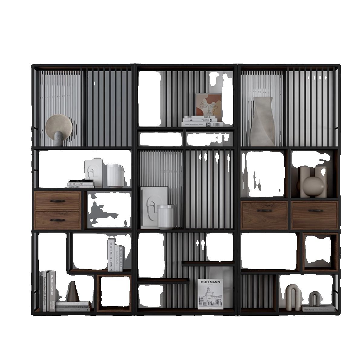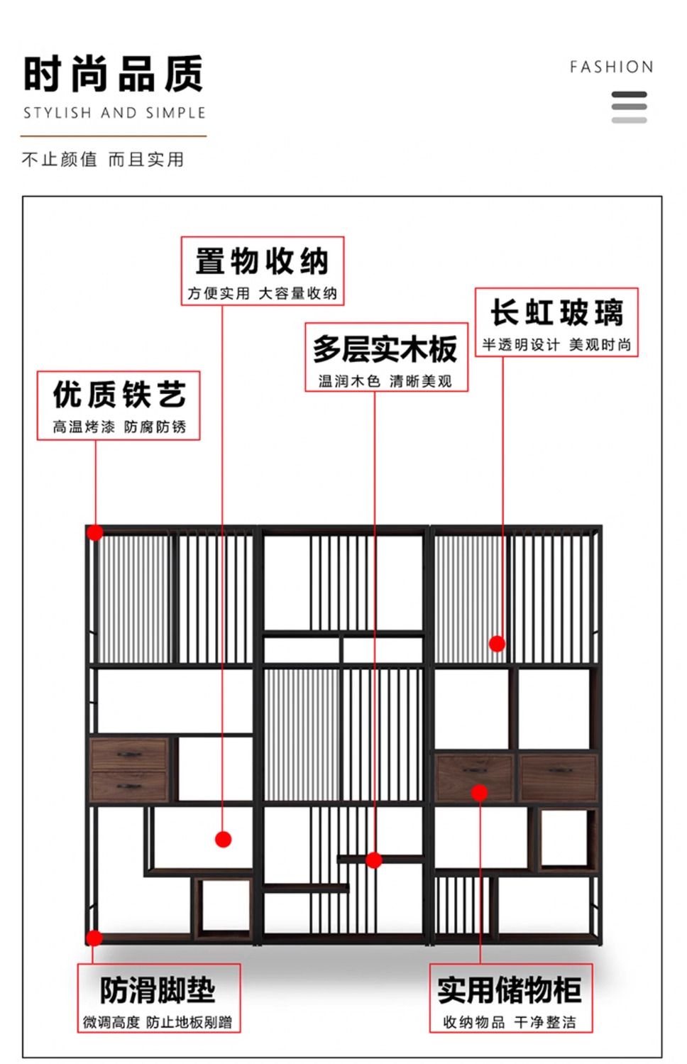 落地置物架铁艺书架隔断客厅博古架实木简约现代复古工业办公室