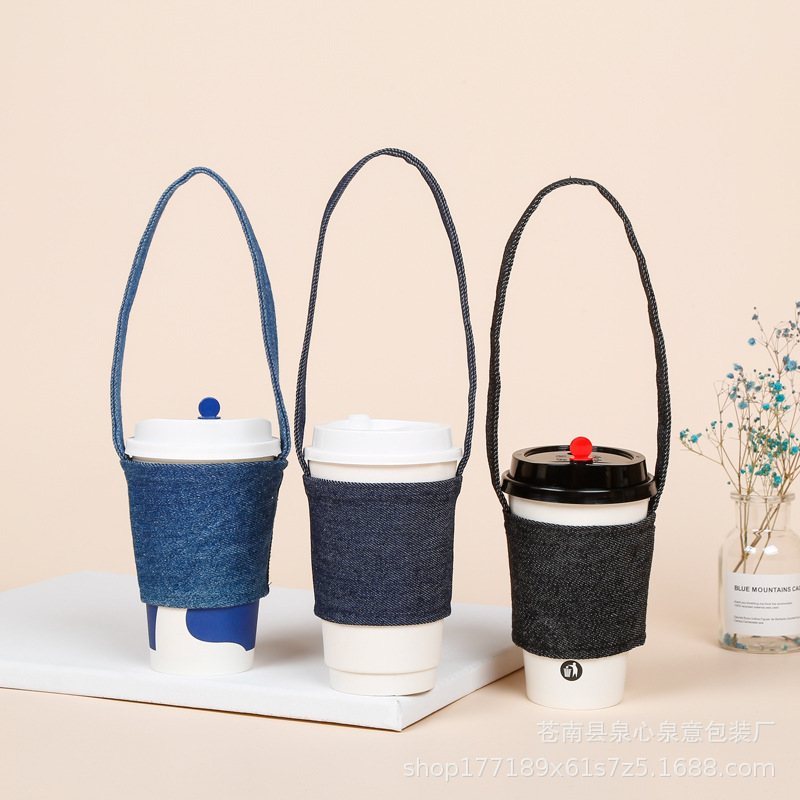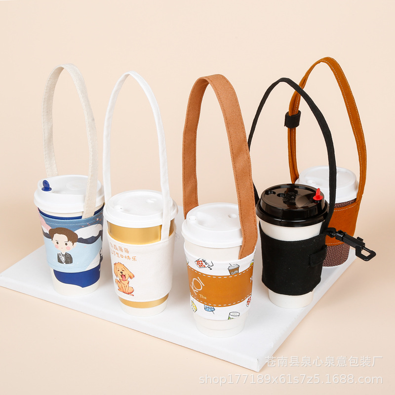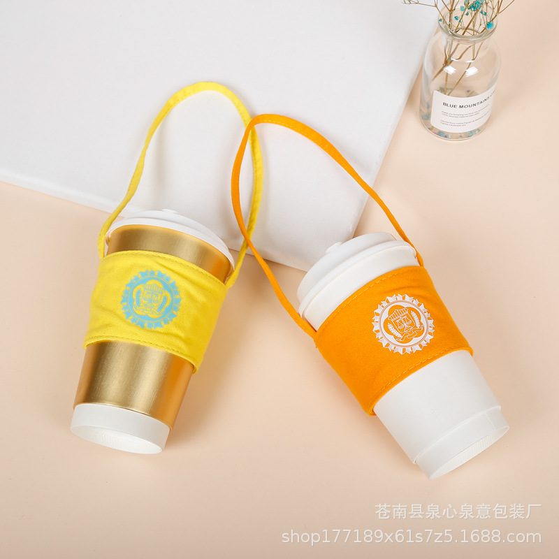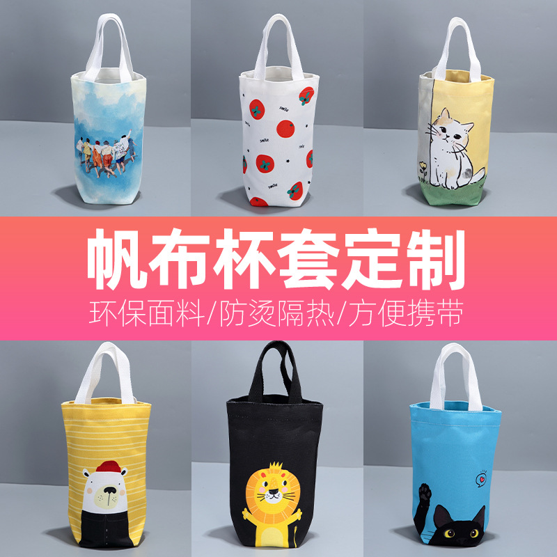 隔热奶茶杯套定制防烫手摇咖啡棉布饮料袋帆布手提杯套定做水杯套