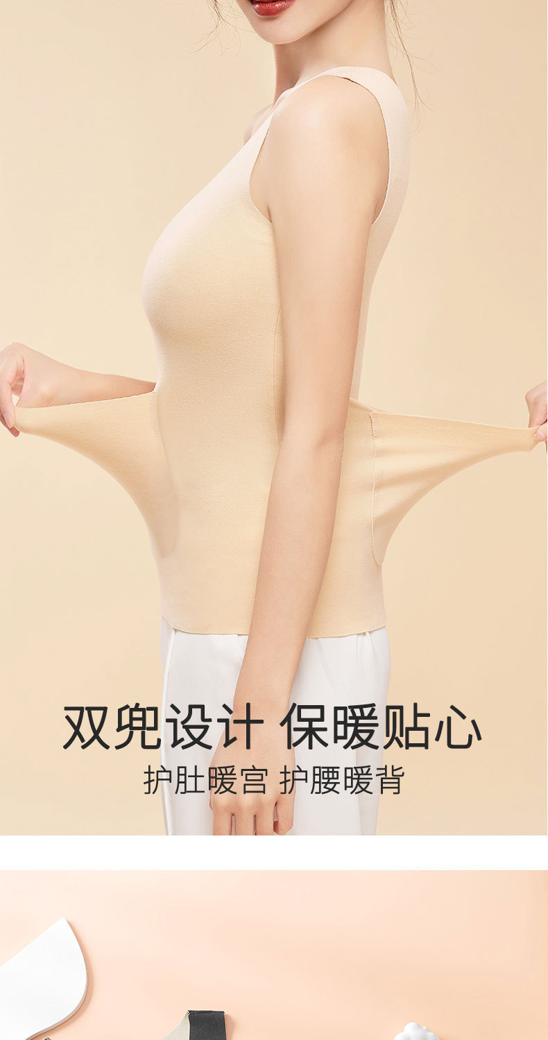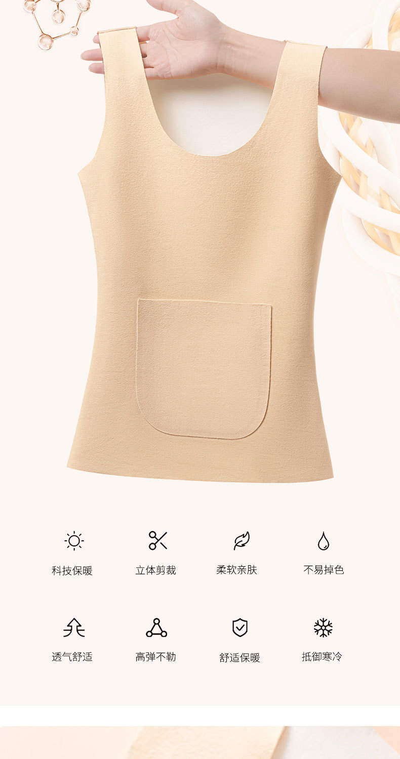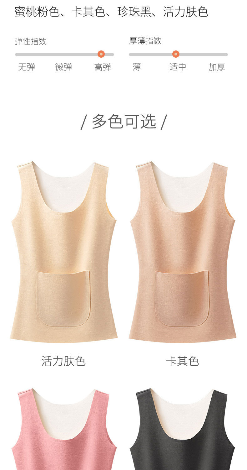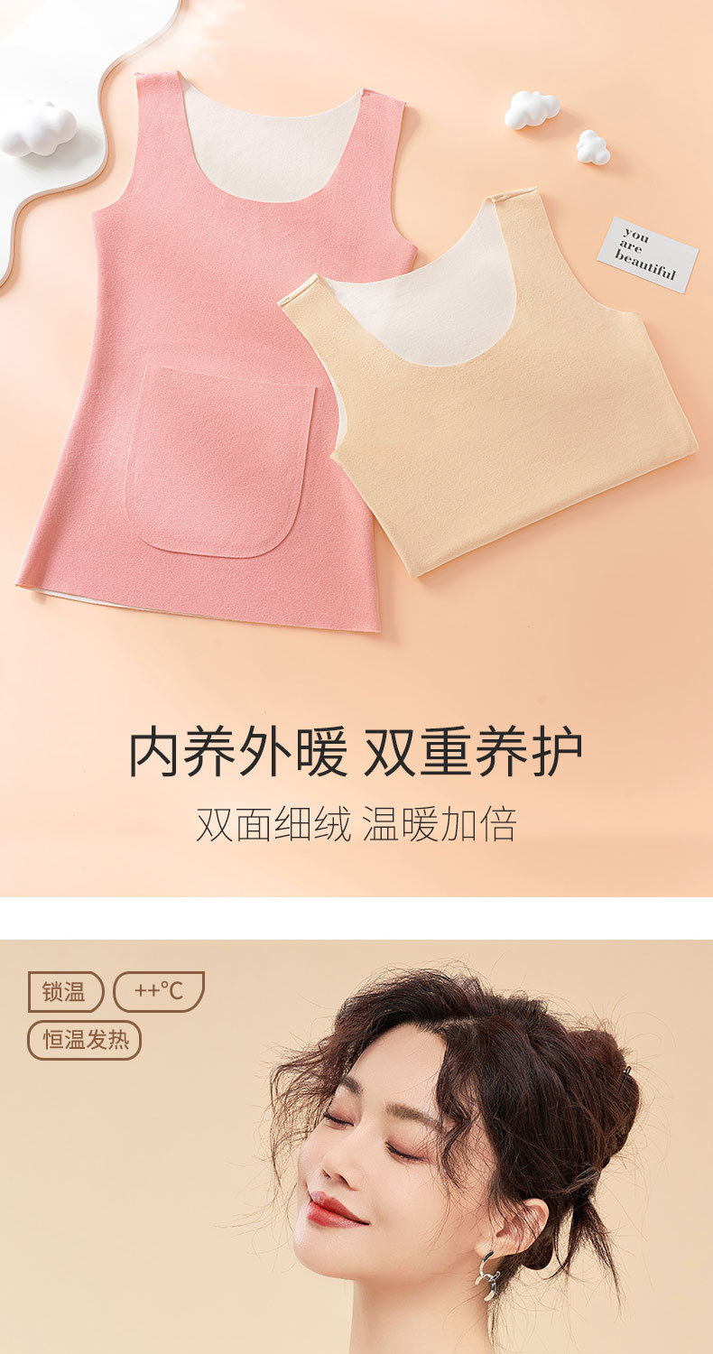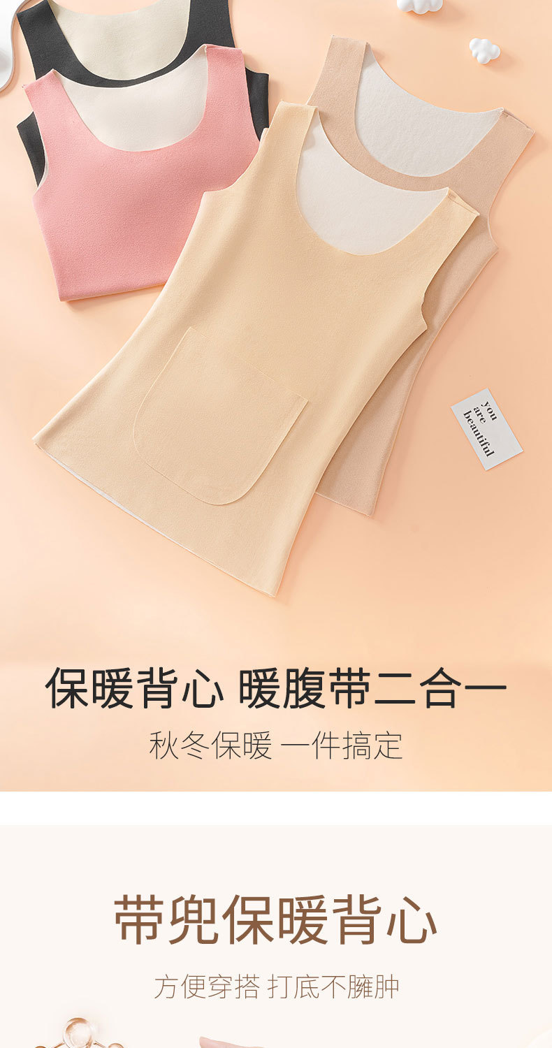 新款德绒保暖背心女冬季防寒加绒加厚护腰暖肚带双兜口袋打底内衣