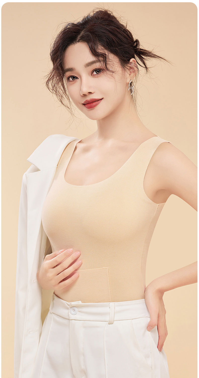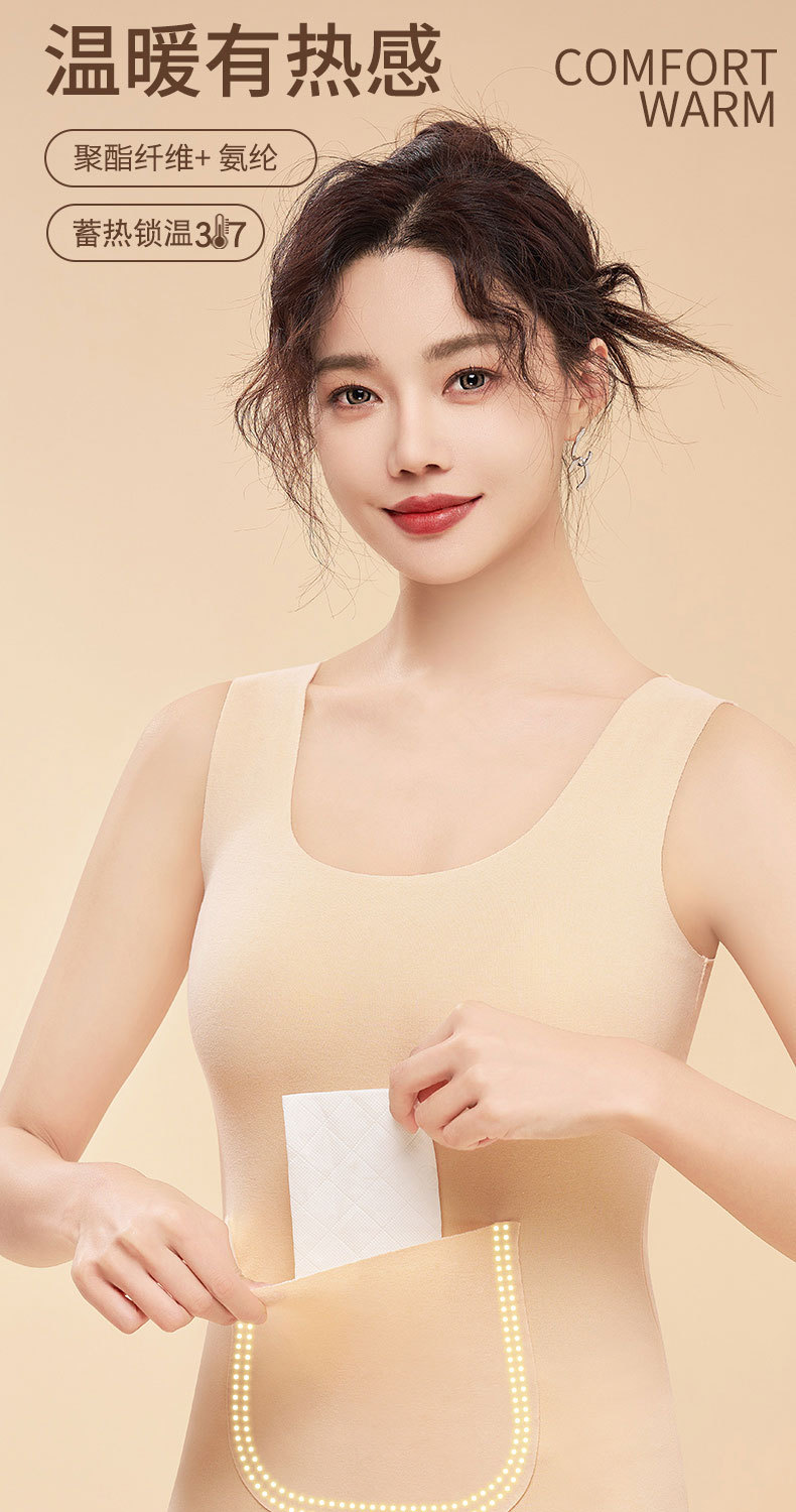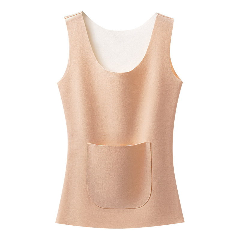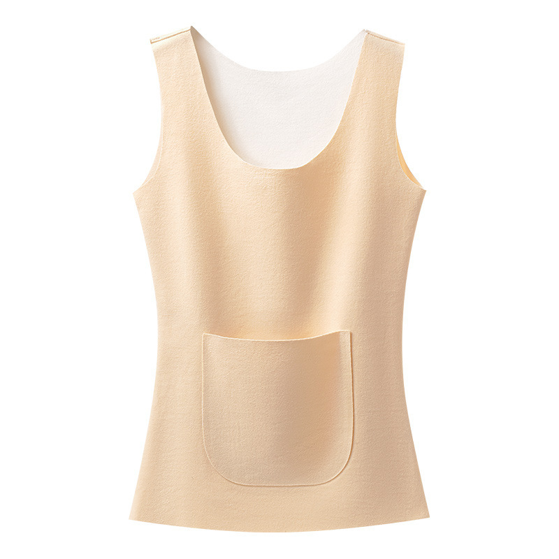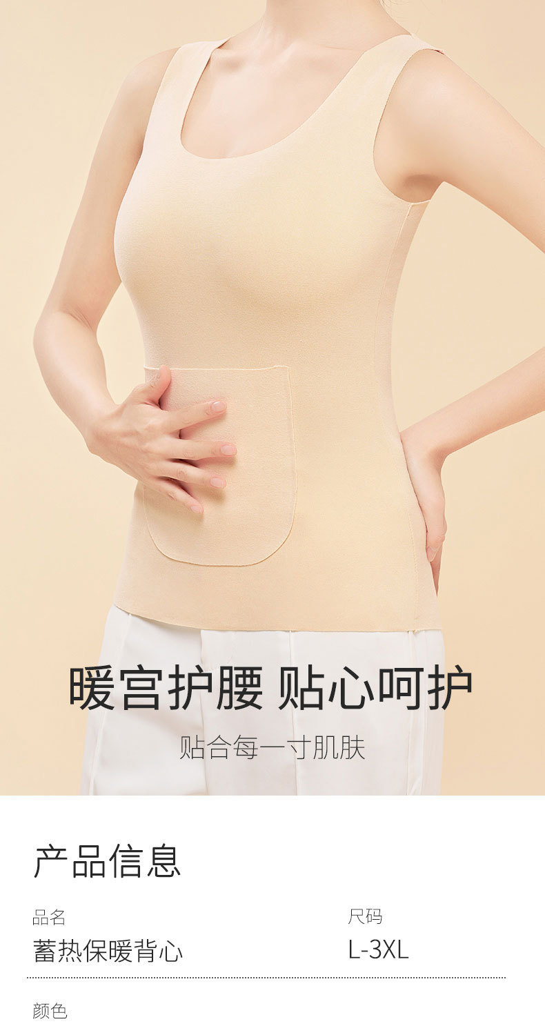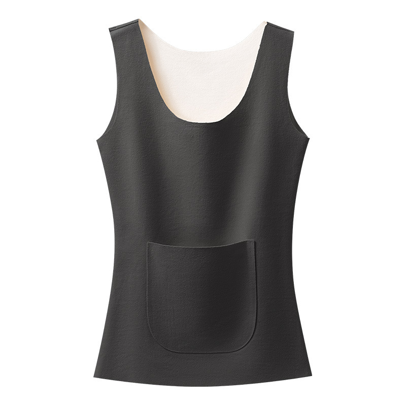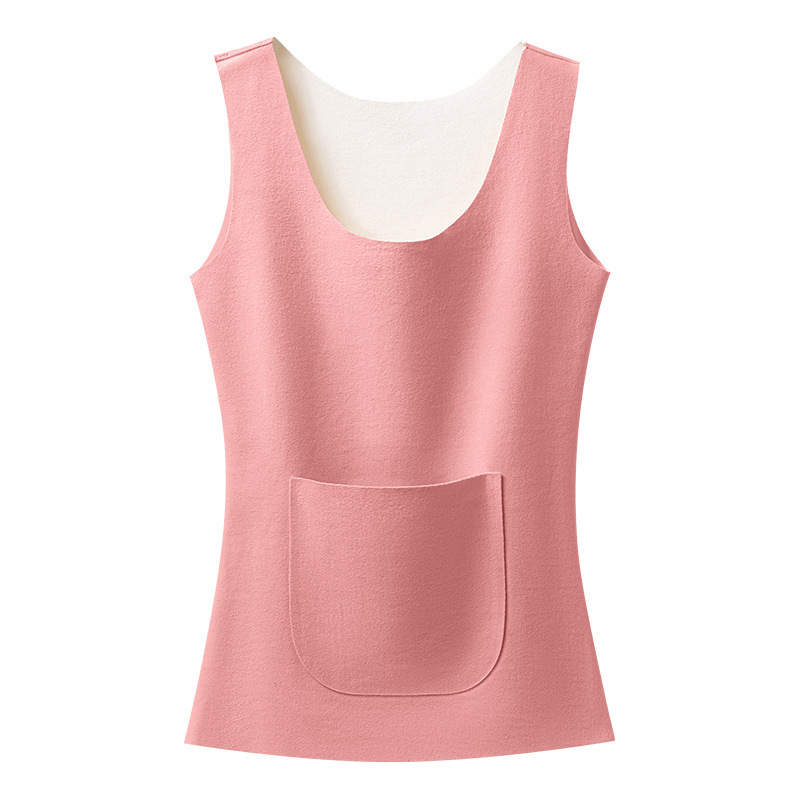 新款德绒保暖背心女冬季防寒加绒加厚护腰暖肚带双兜口袋打底内衣