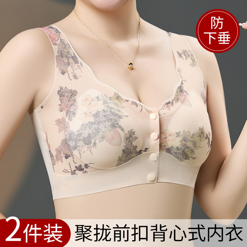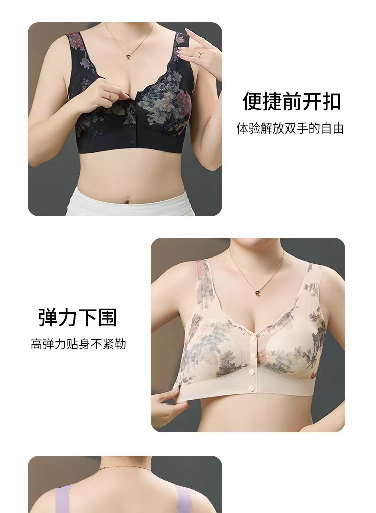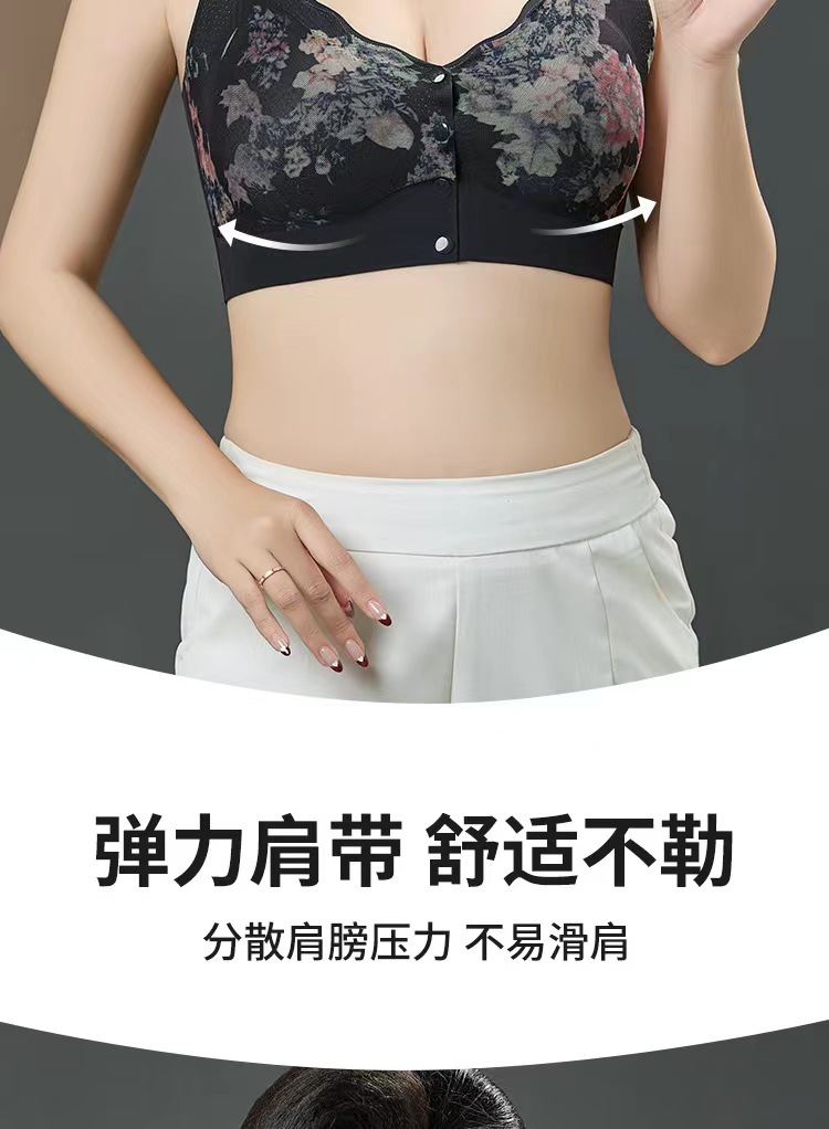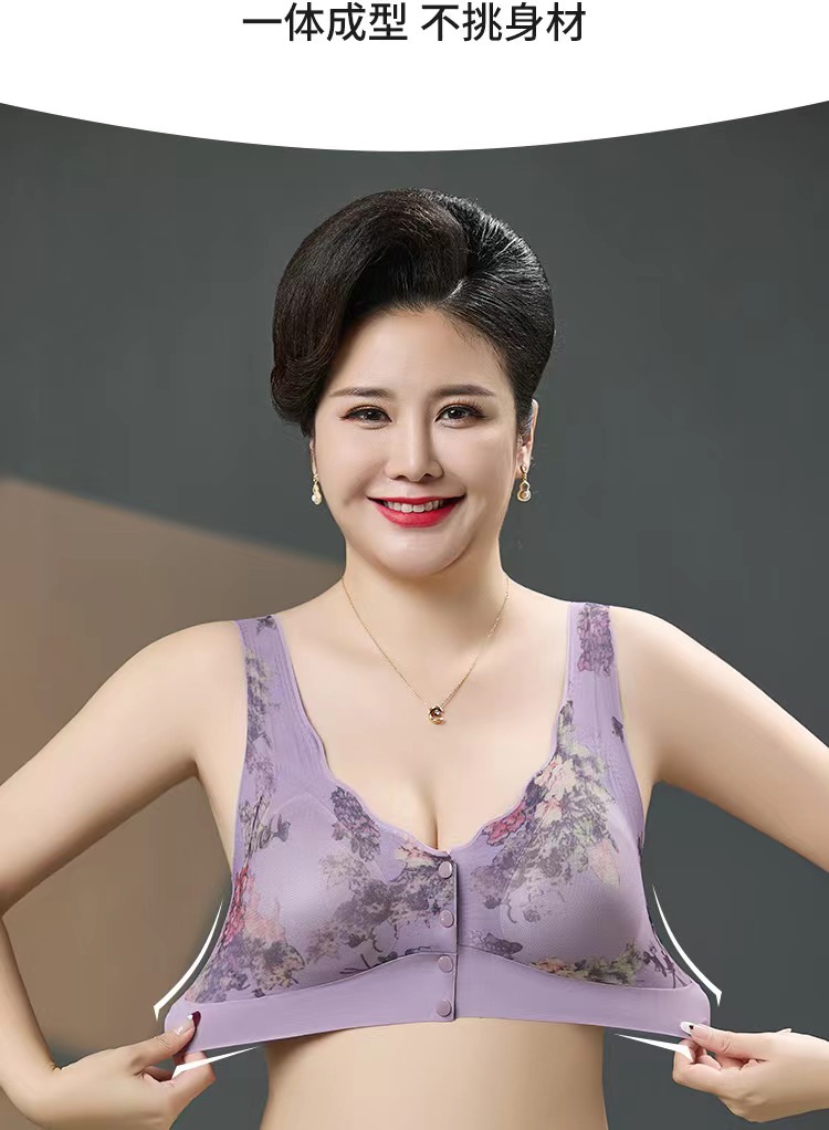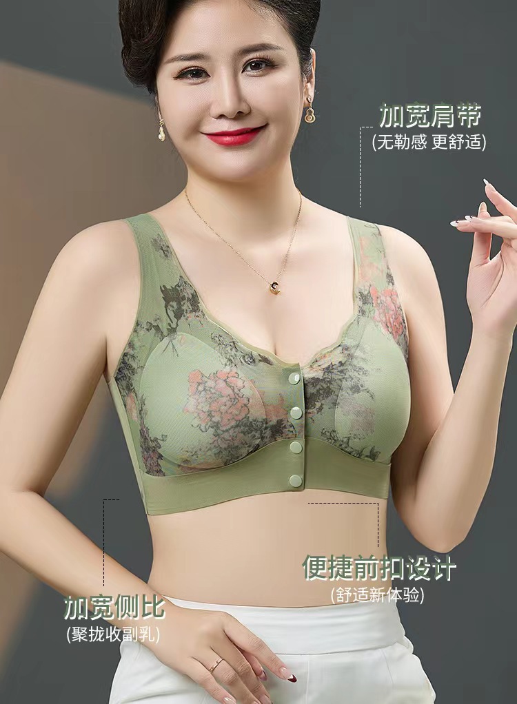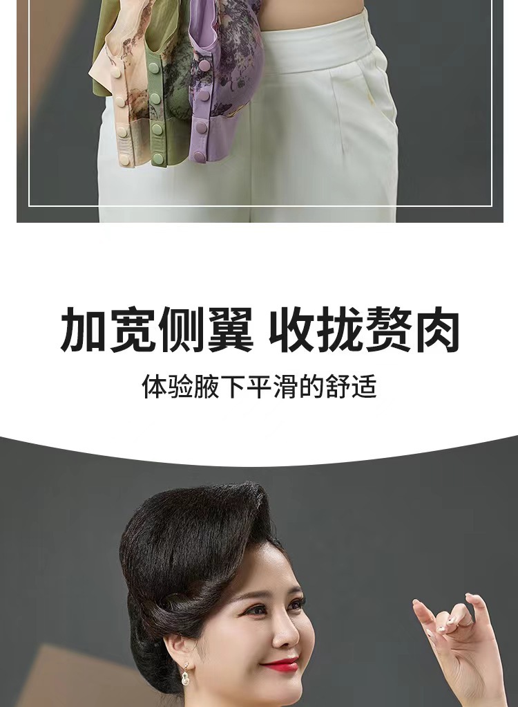 新款中老年妈妈无痕内衣无钢圈印花美背聚拢上托高弹美背舒适文胸