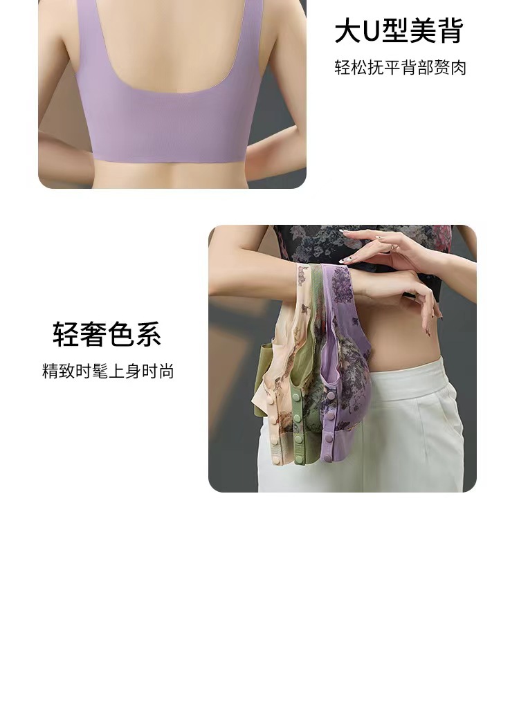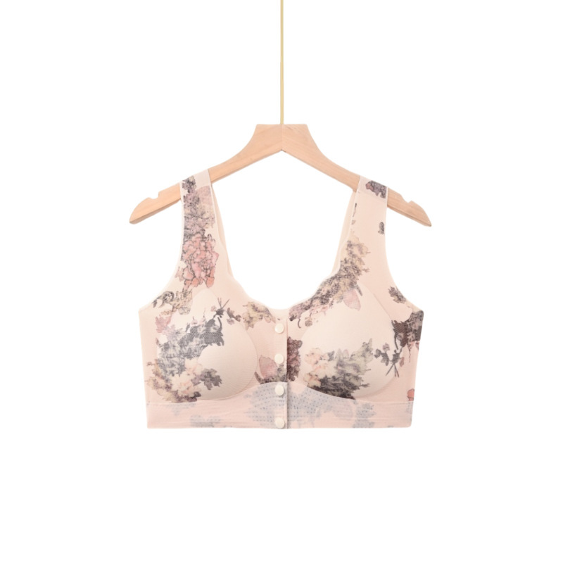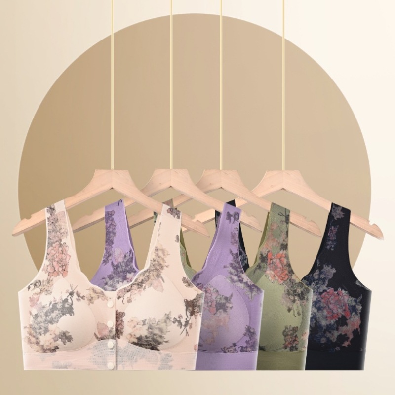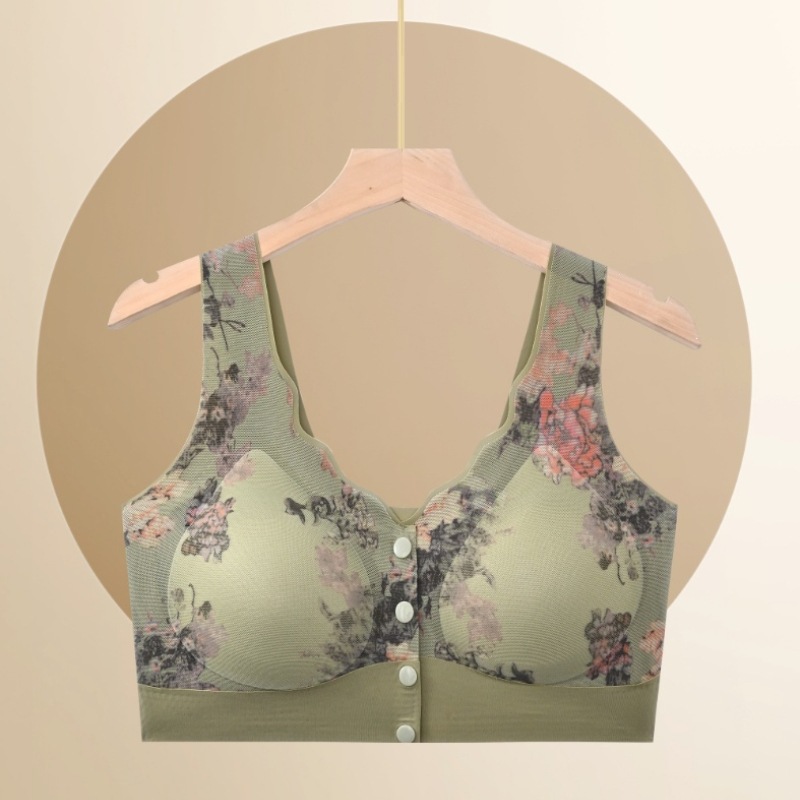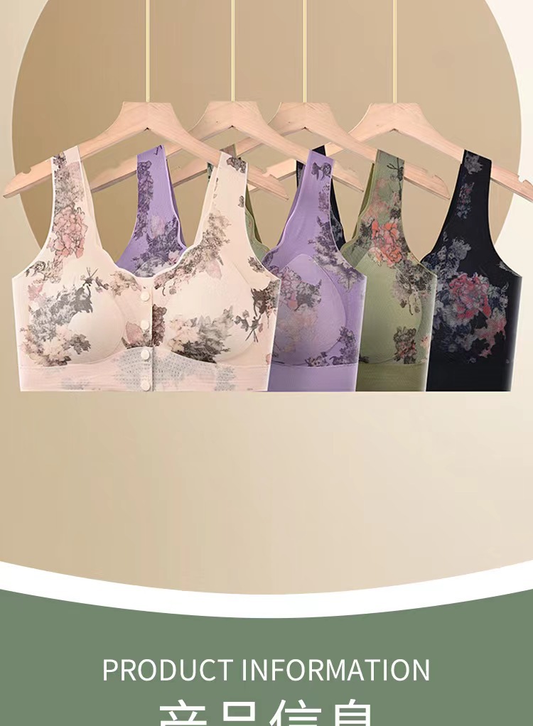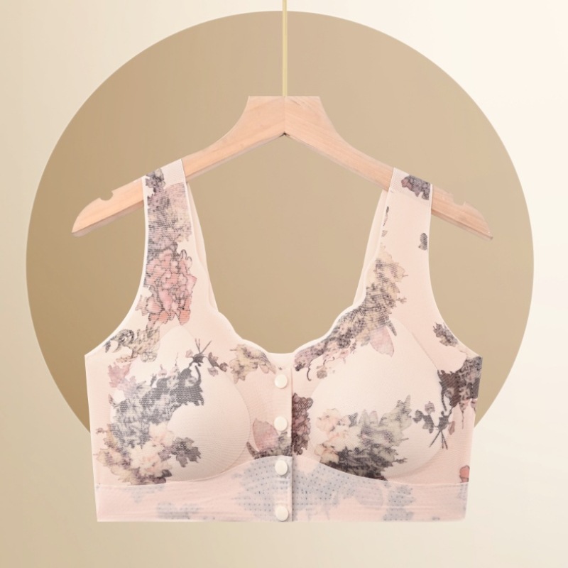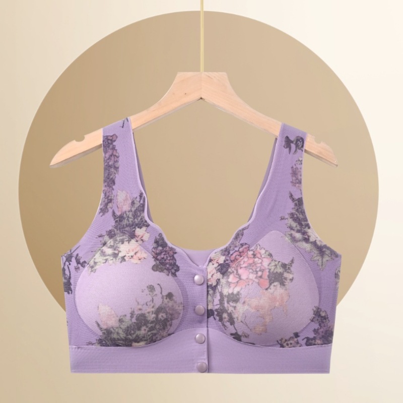 新款中老年妈妈无痕内衣无钢圈印花美背聚拢上托高弹美背舒适文胸