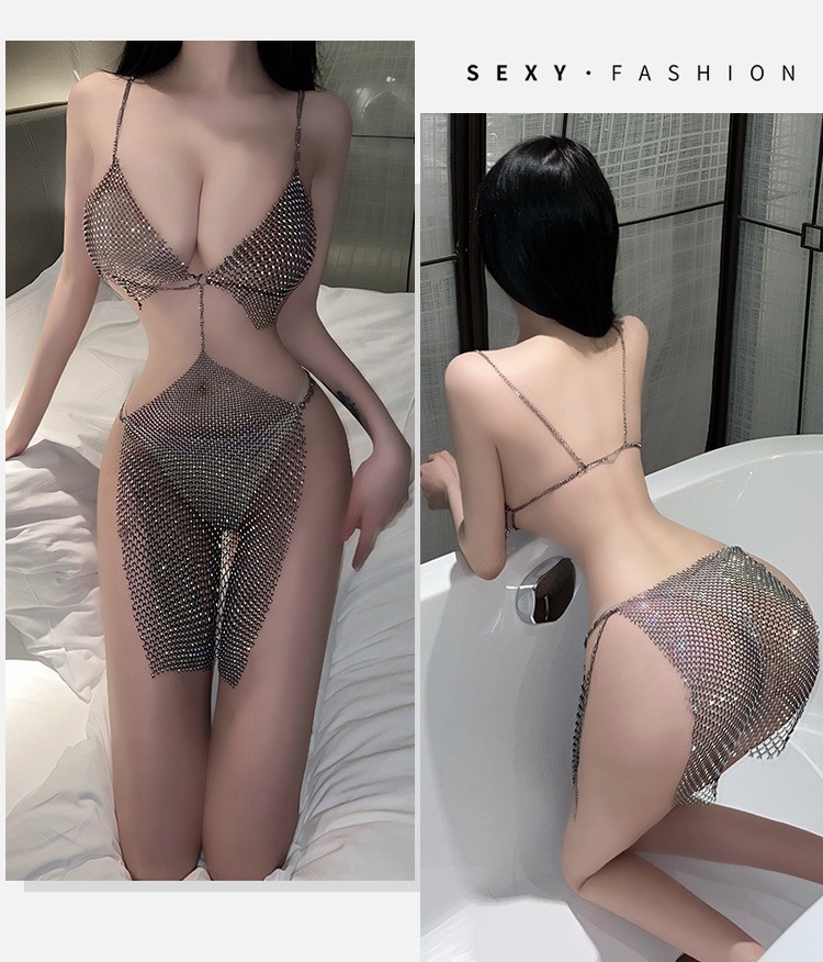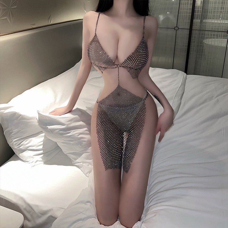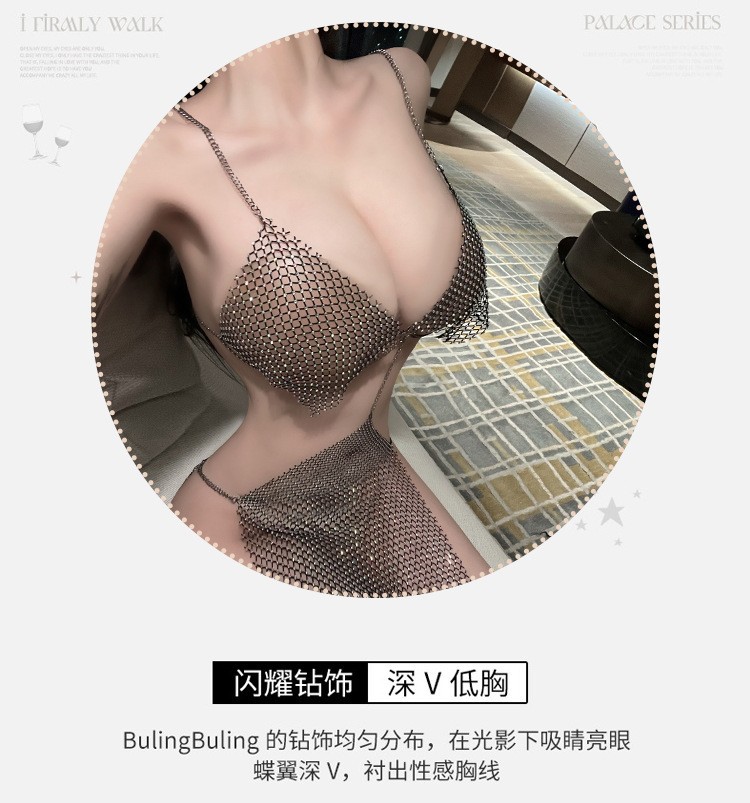 新款性感透视蕾丝开档免脱连体衣纯欲激情火辣漏乳免脱套装女可