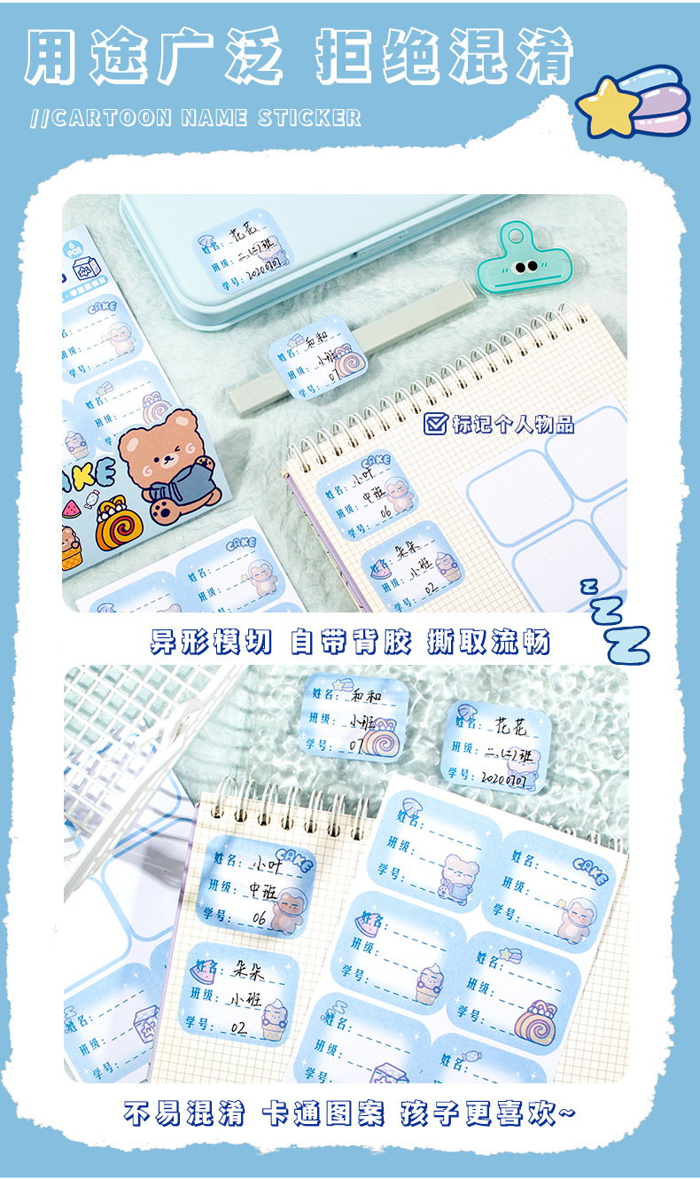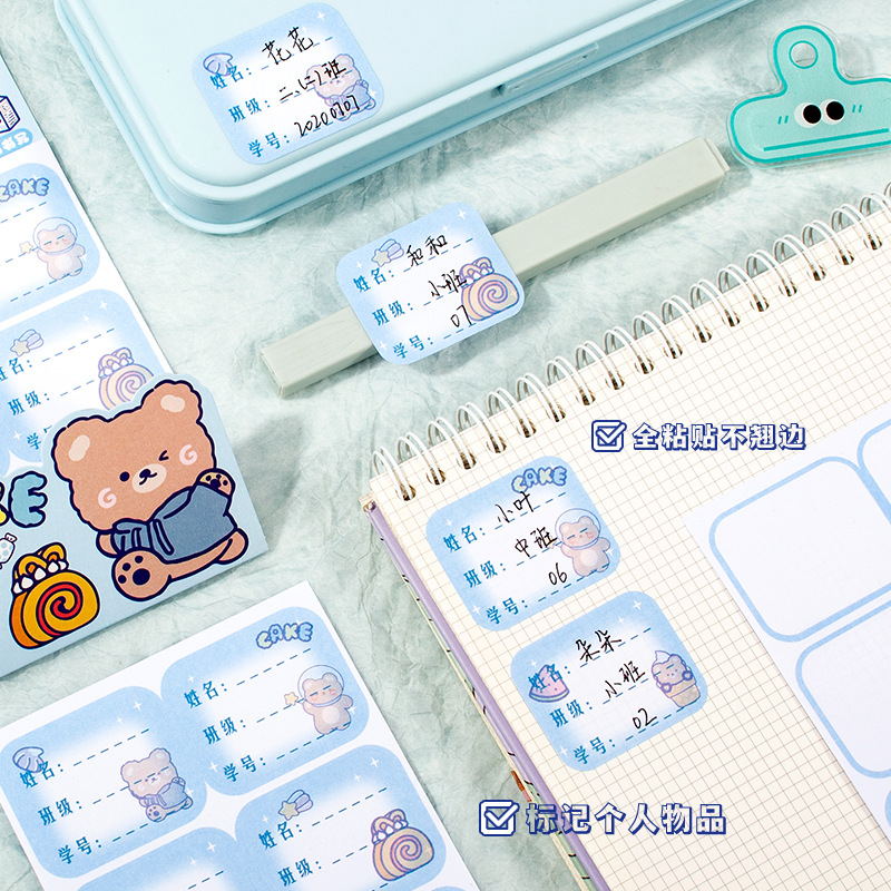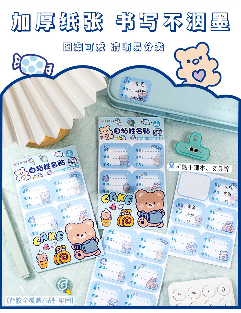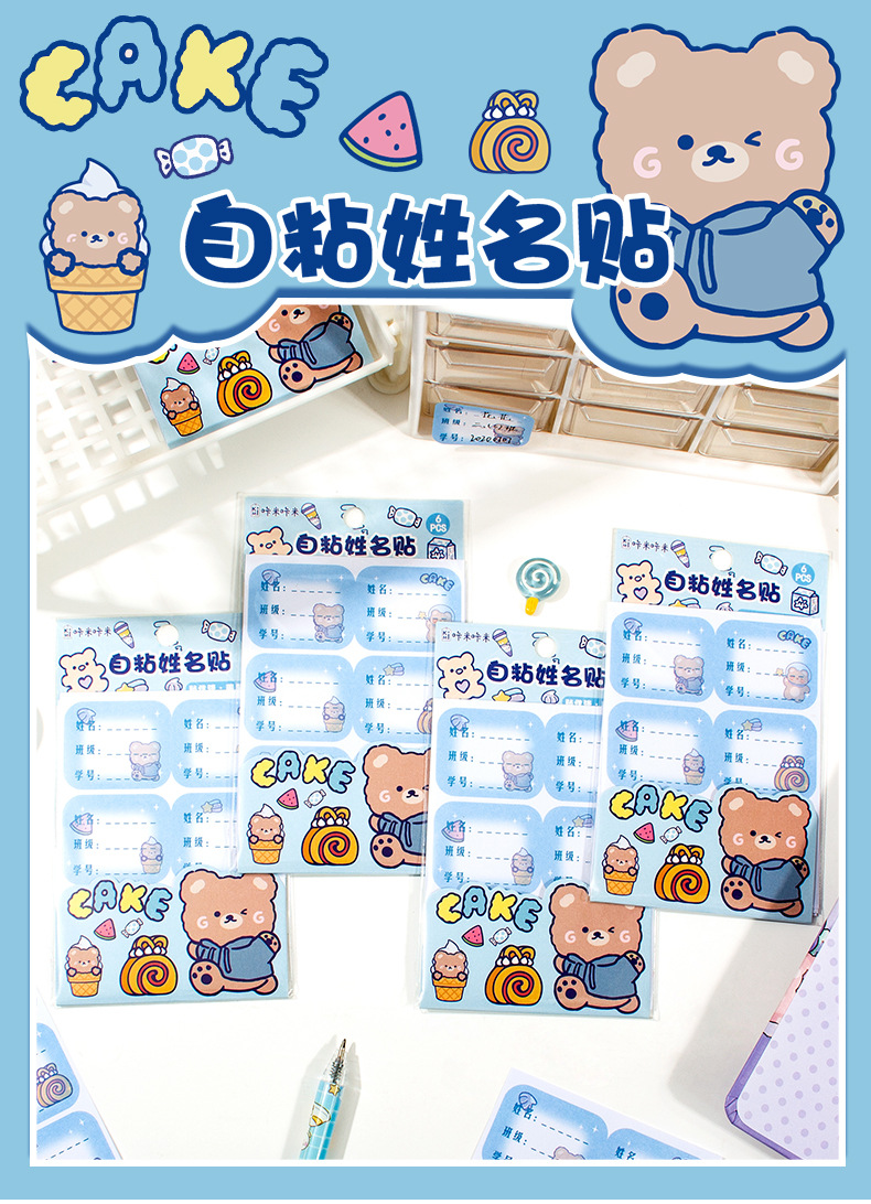 卡通小熊姓名贴ins风标签贴小学生自粘水杯贴diy课本名字贴纸批发