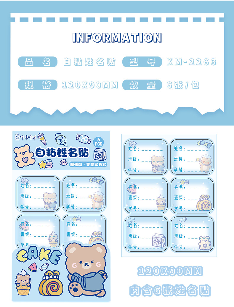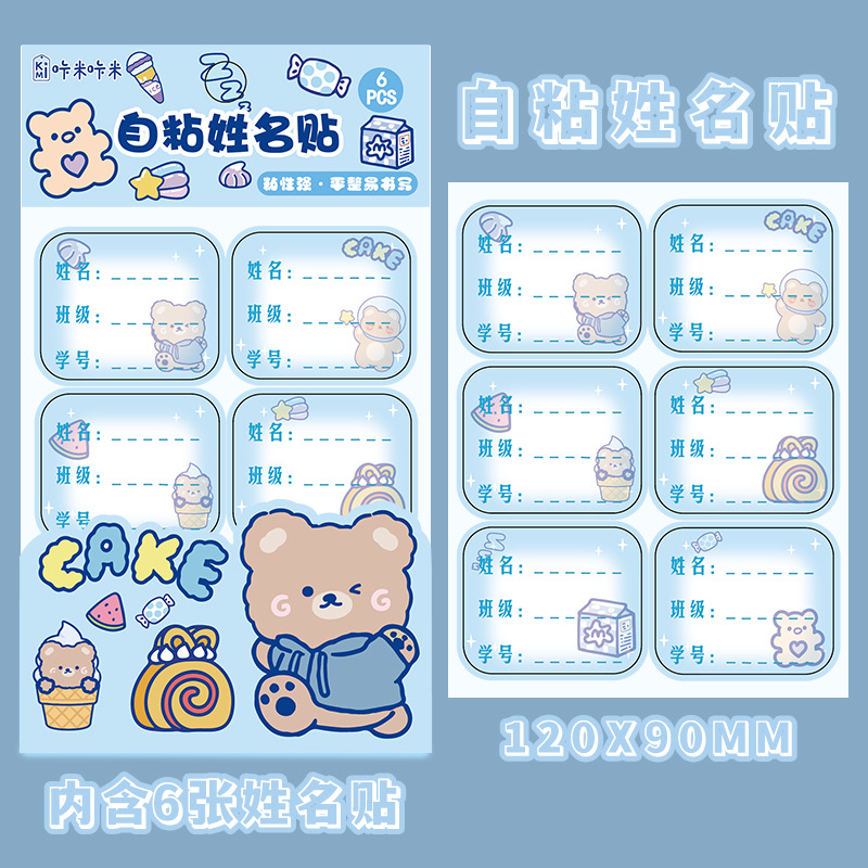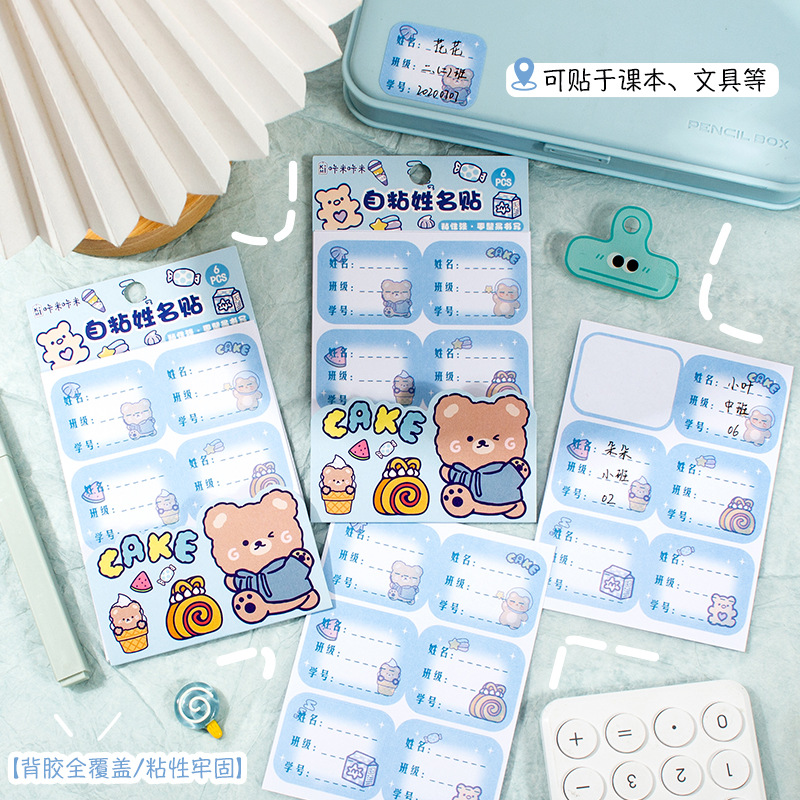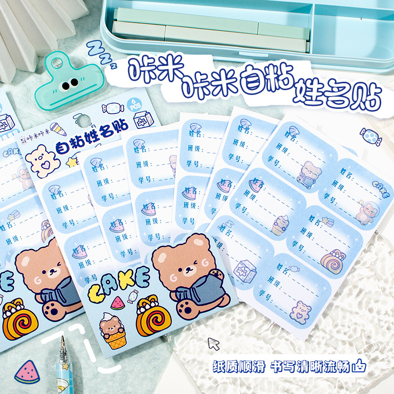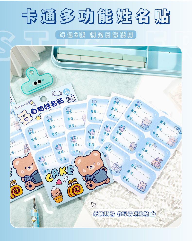 卡通小熊姓名贴ins风标签贴小学生自粘水杯贴diy课本名字贴纸批发