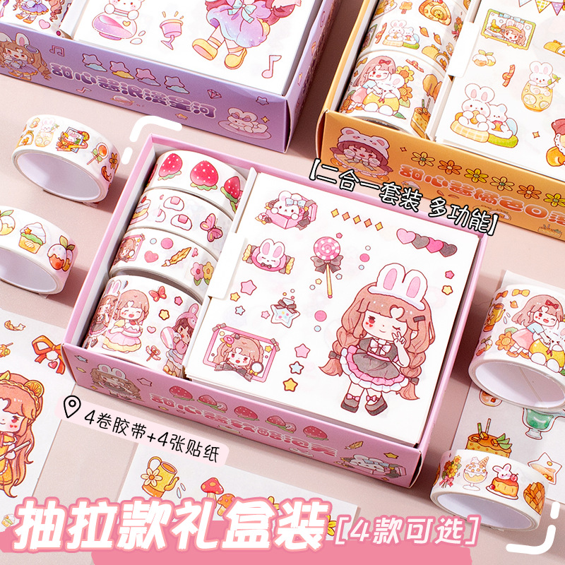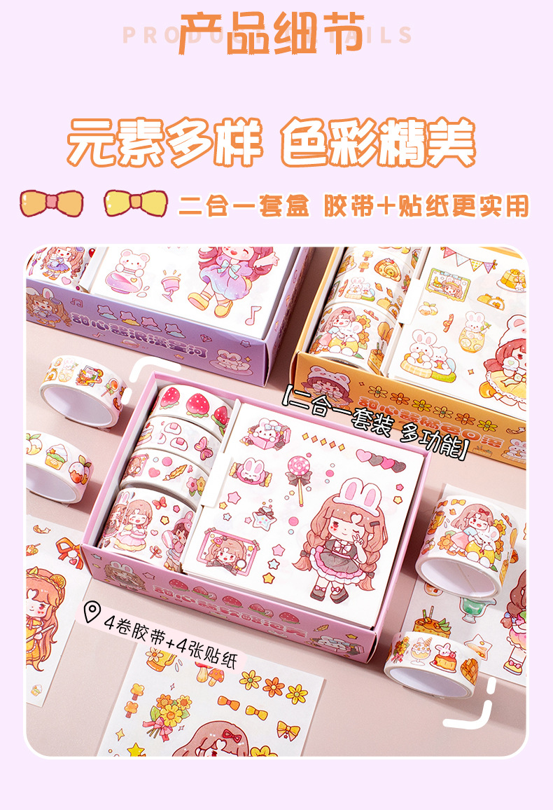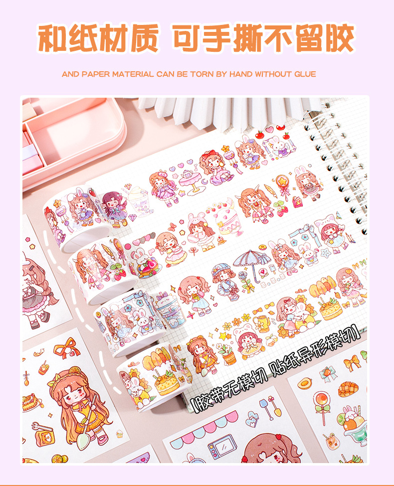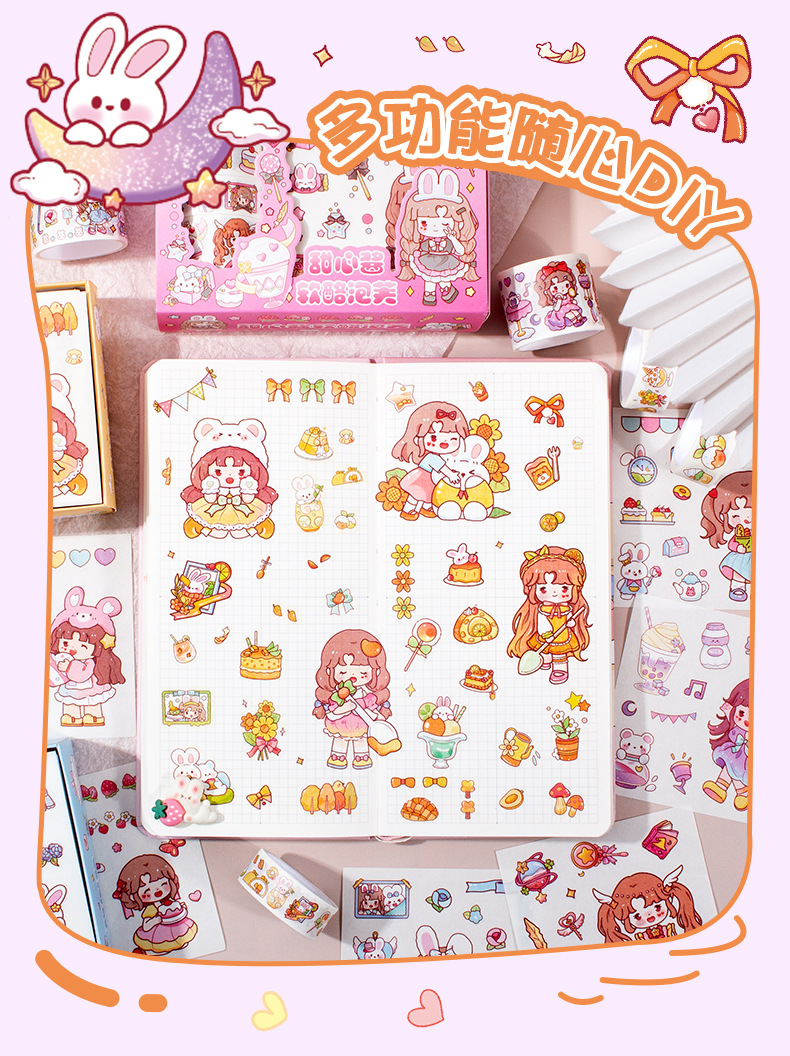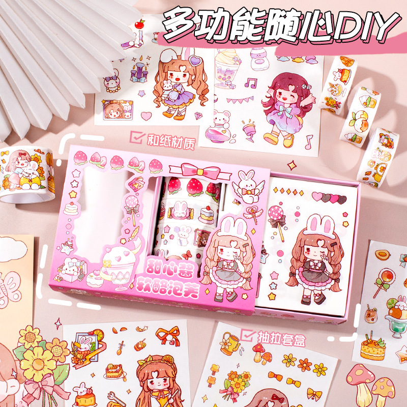 新款卡通小女孩手账贴纸可爱手帐胶带礼盒diy素材装饰贴纸批发