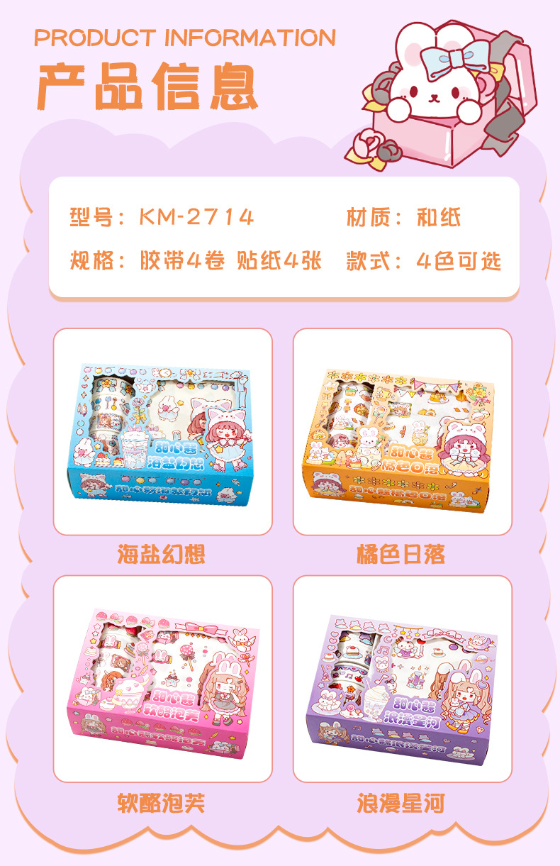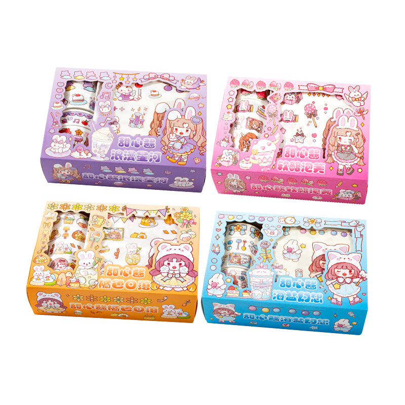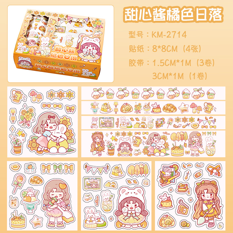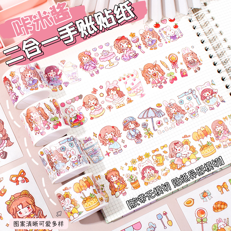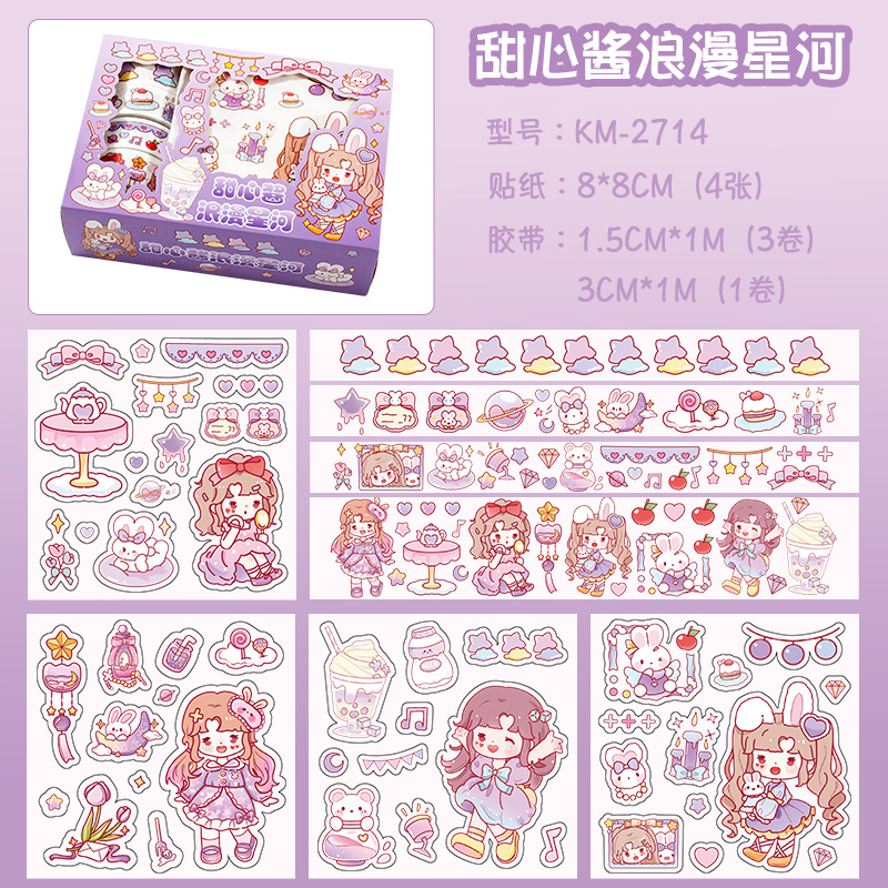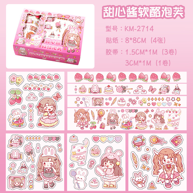 新款卡通小女孩手账贴纸可爱手帐胶带礼盒diy素材装饰贴纸批发