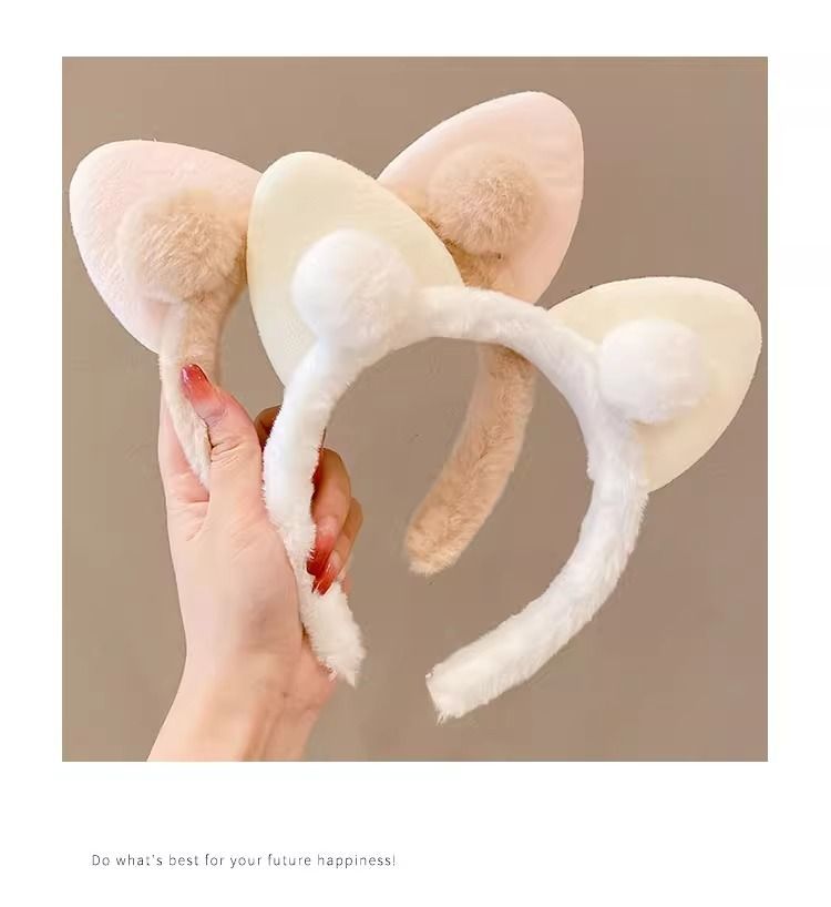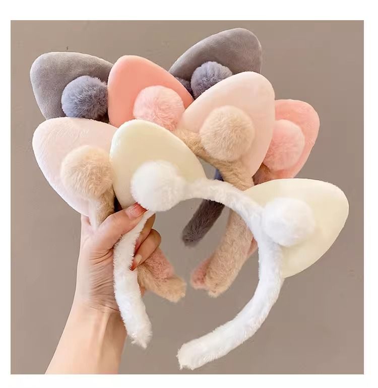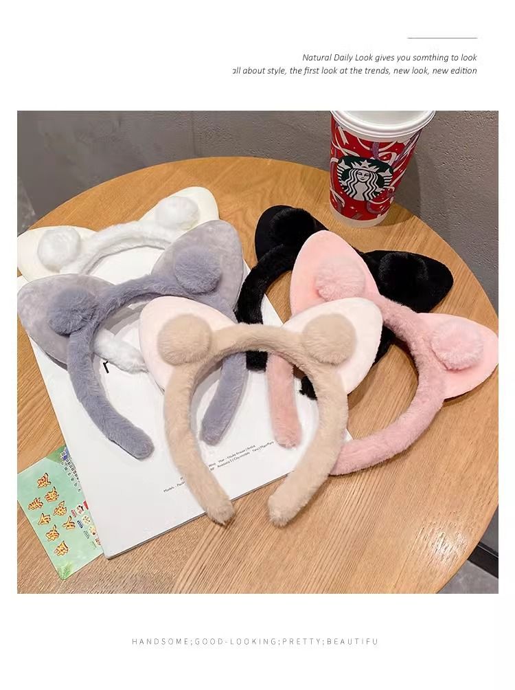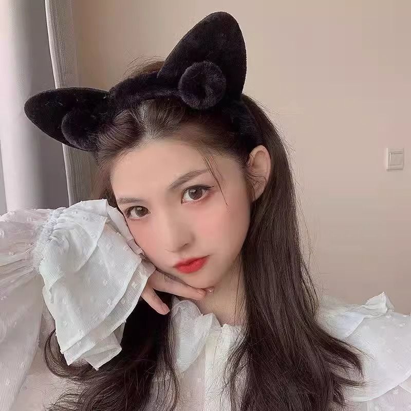 高颜值可爱猫耳朵发箍秋冬毛绒发箍可爱猫耳球球头箍爆款女洗脸用