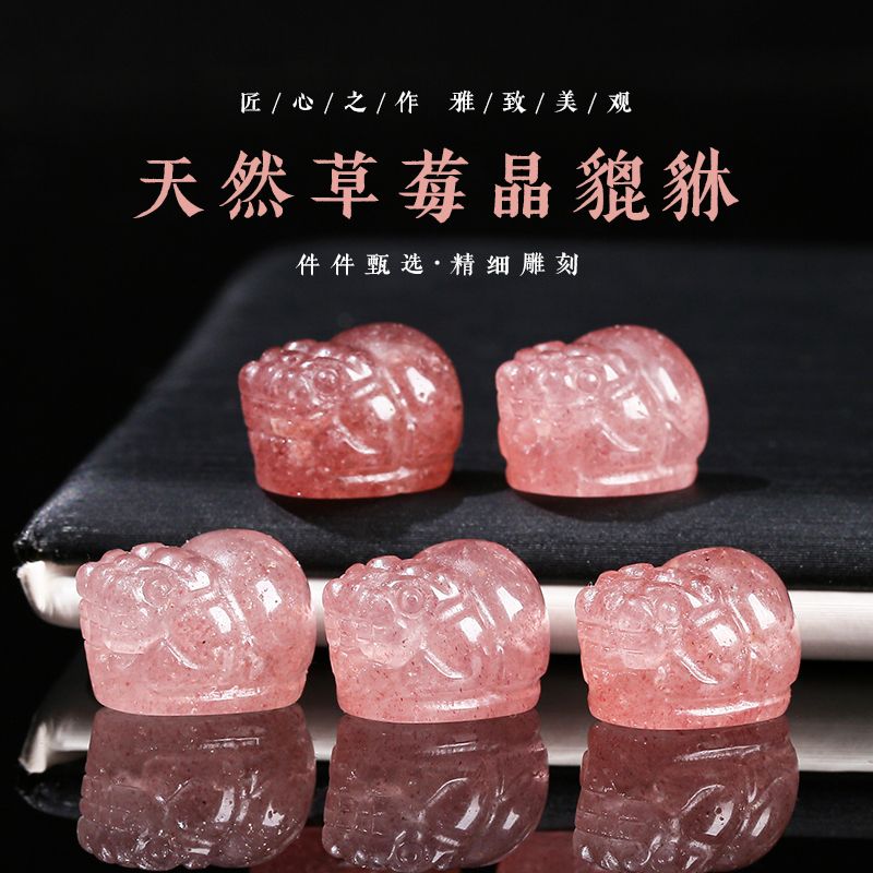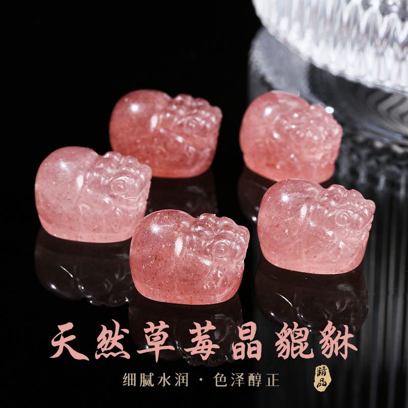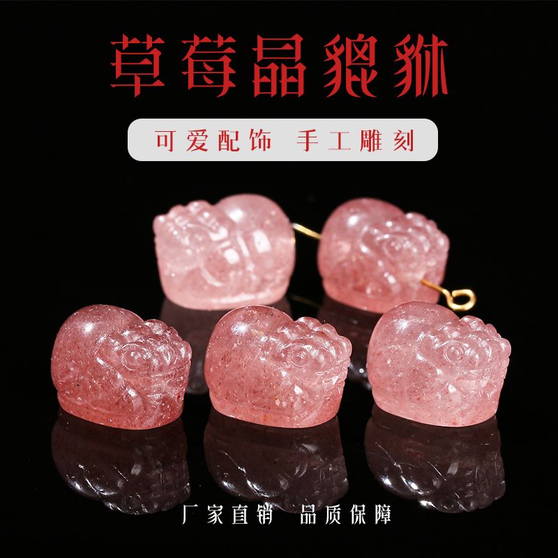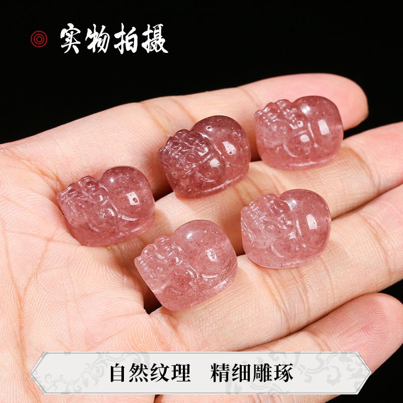 天然鸽血红草莓晶貔貅雕刻配件手工编织diy手链项链串珠饰品材料