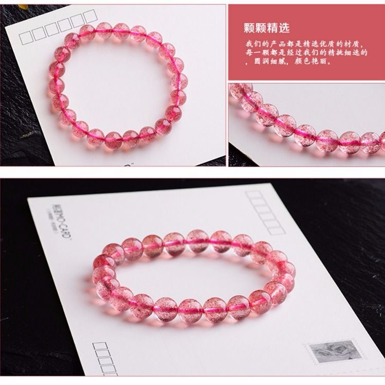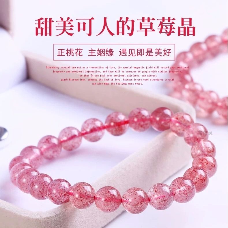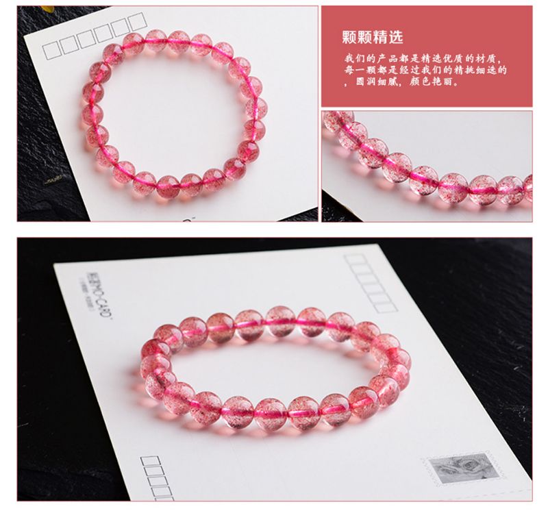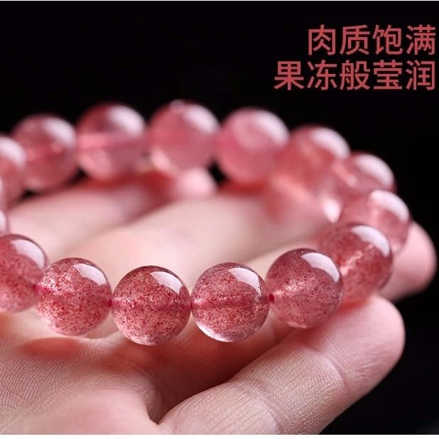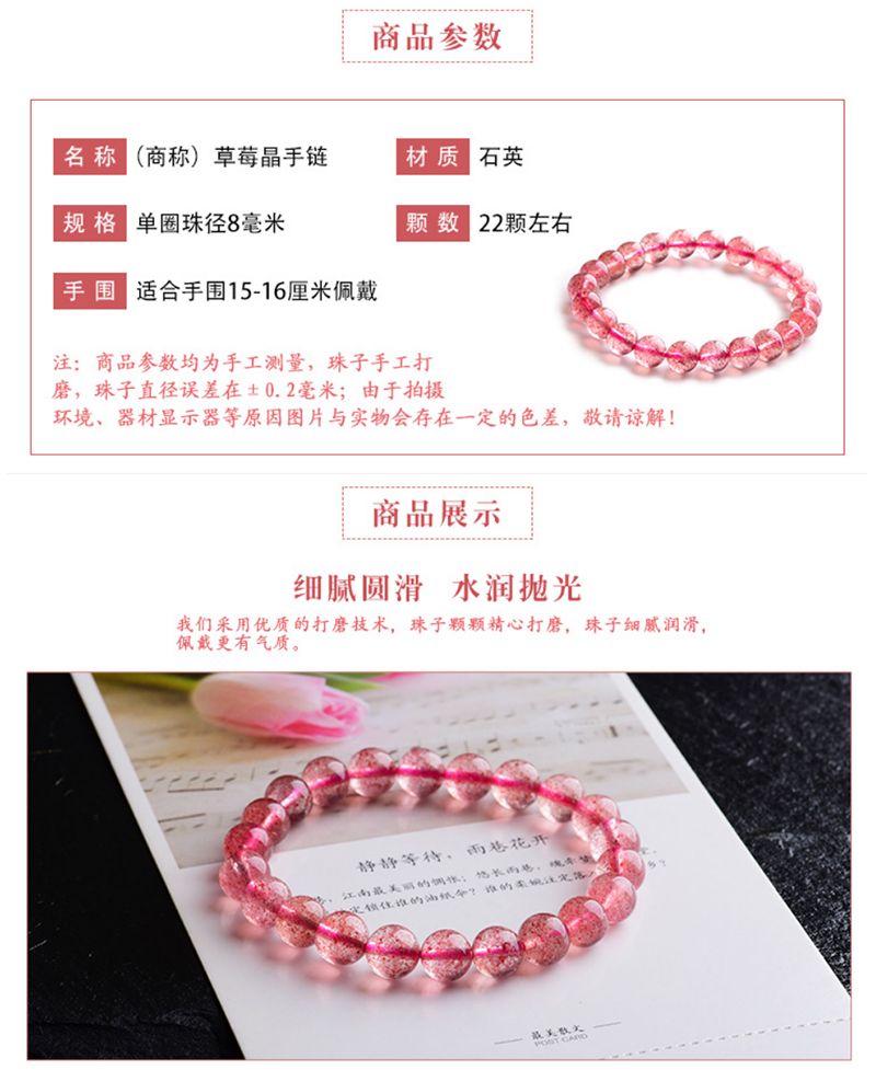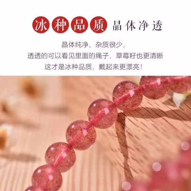 天然冰种草莓晶手链单圈水晶手链女招人缘招桃花闺蜜款生日礼物女