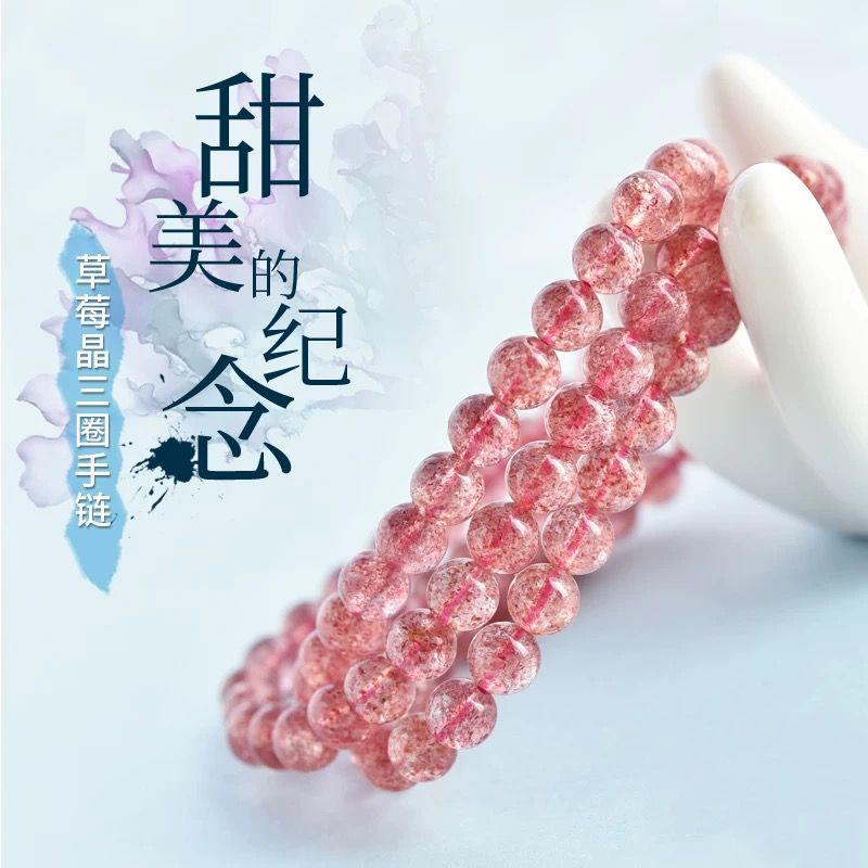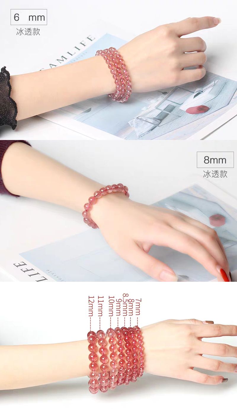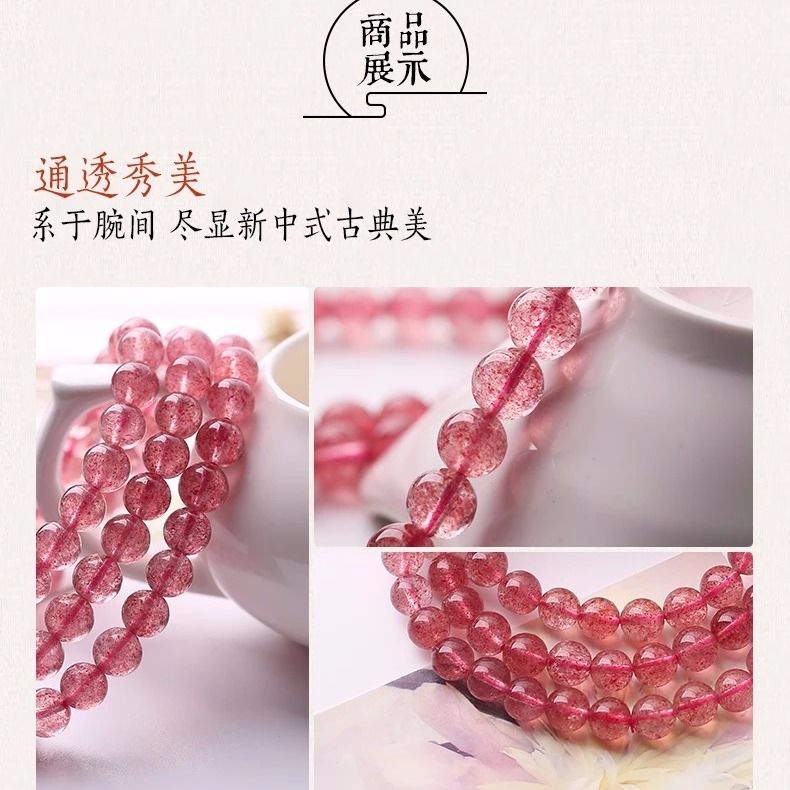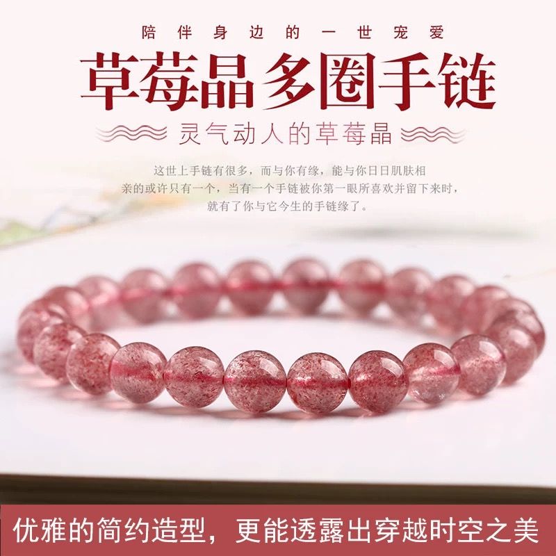 天然冰种草莓晶手链单圈水晶手链女招人缘招桃花闺蜜款生日礼物女