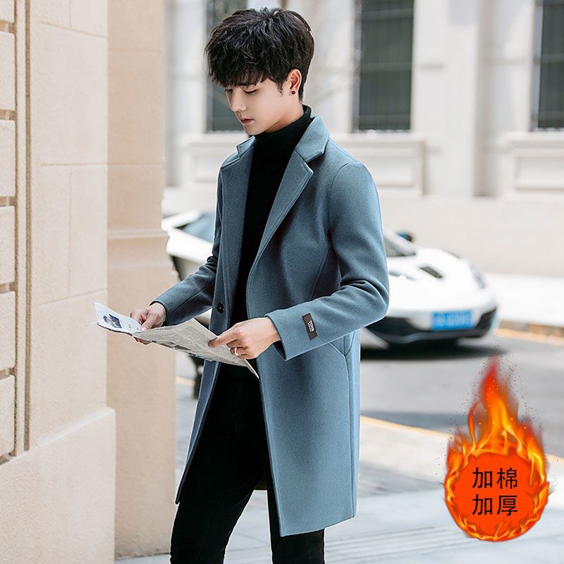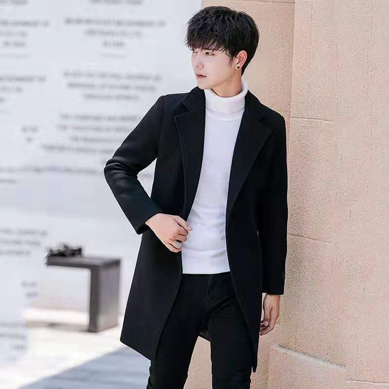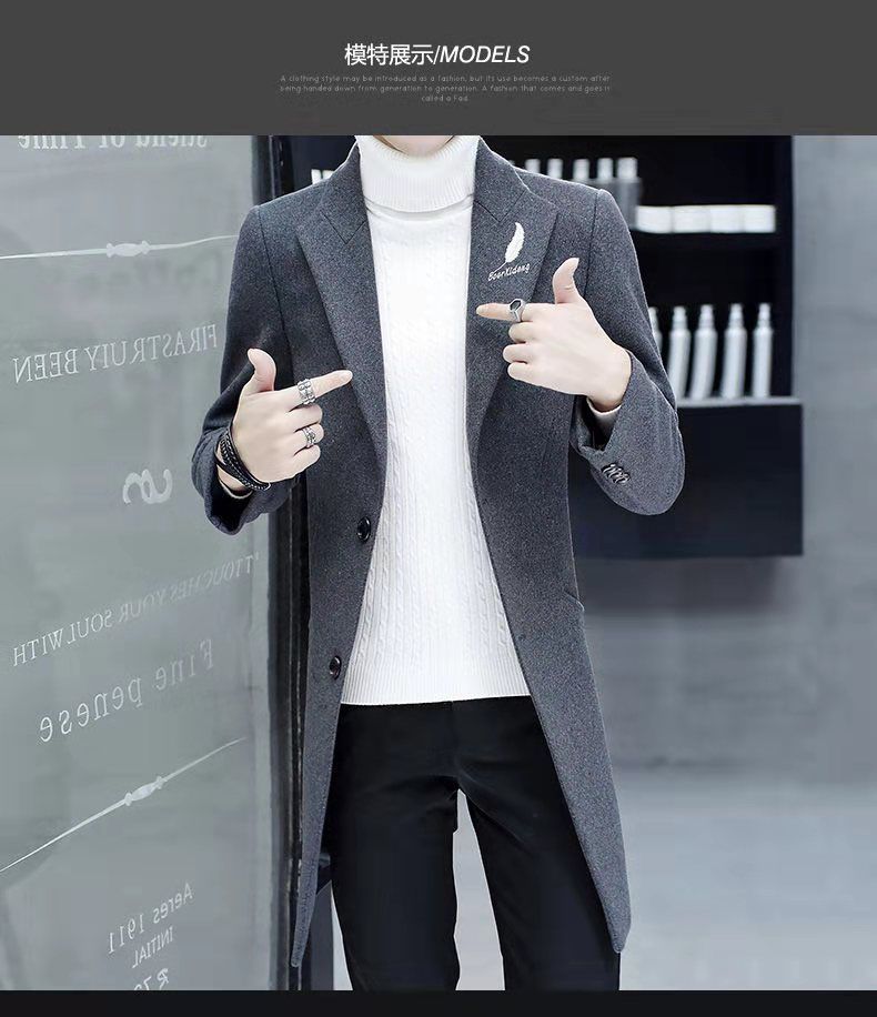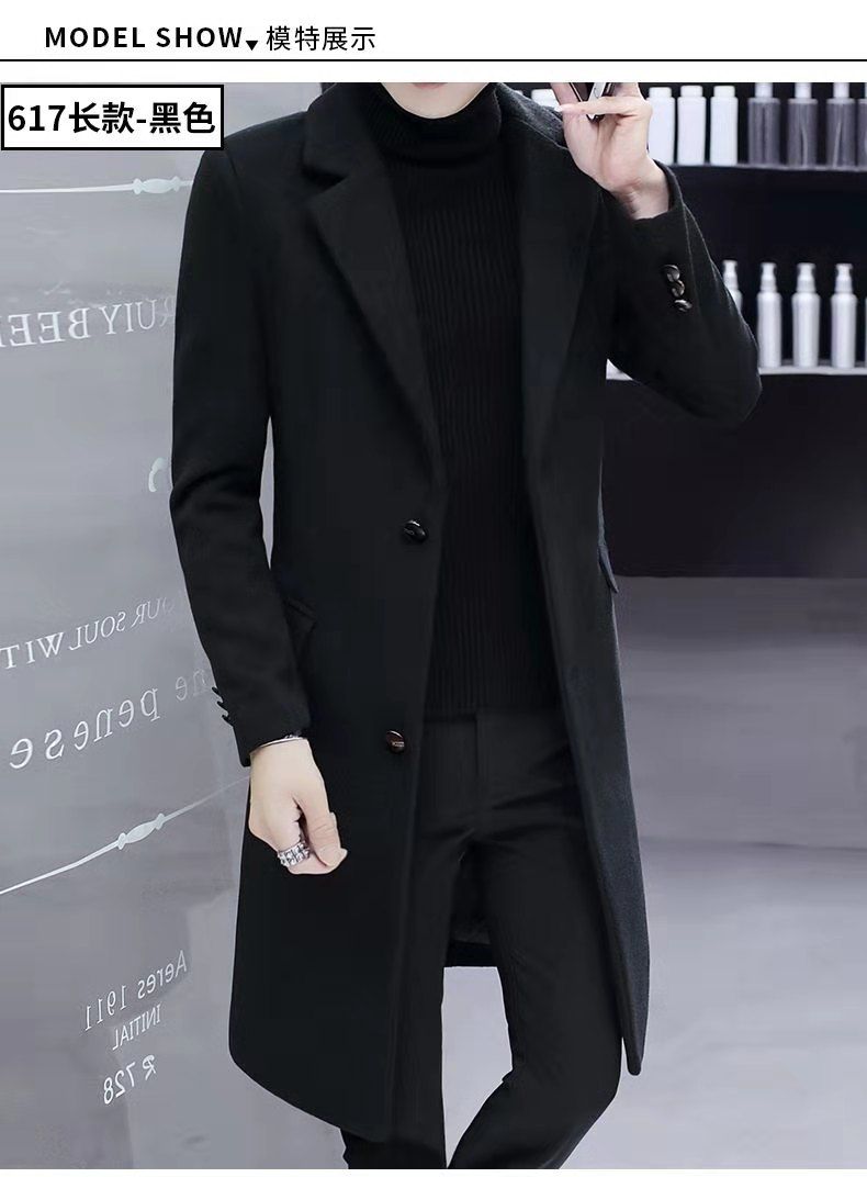 新款男士风衣秋冬季呢子外套男款韩版潮流加棉加厚青年毛呢大衣男