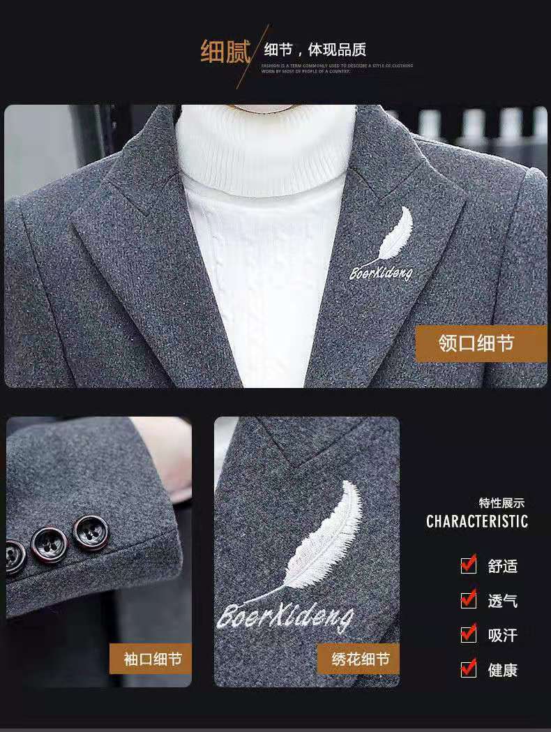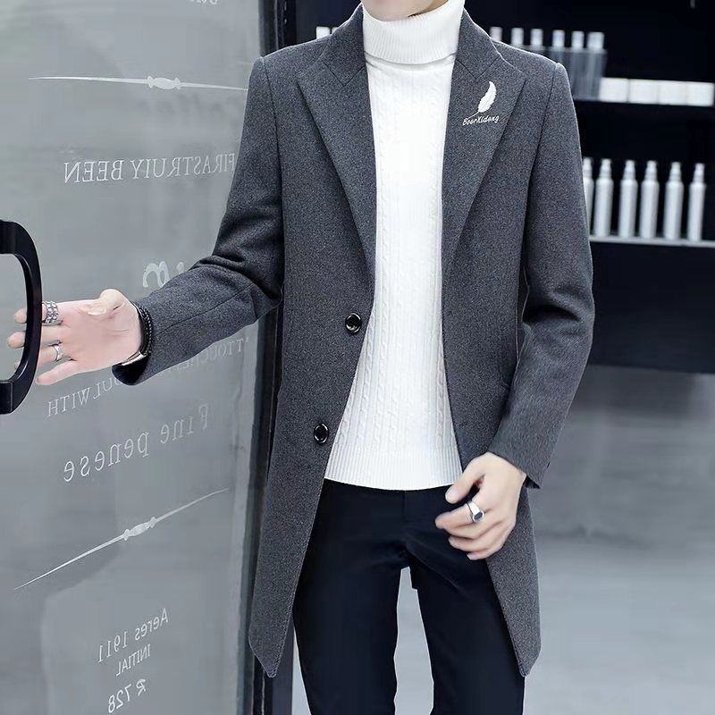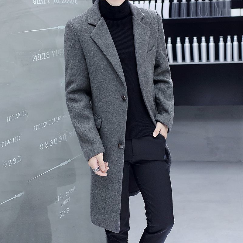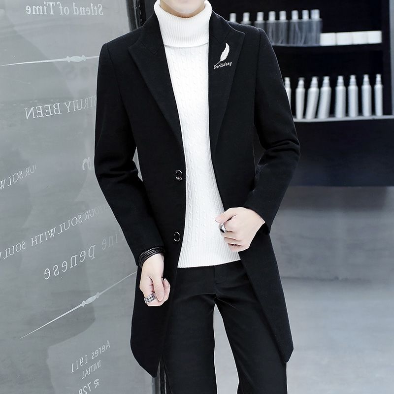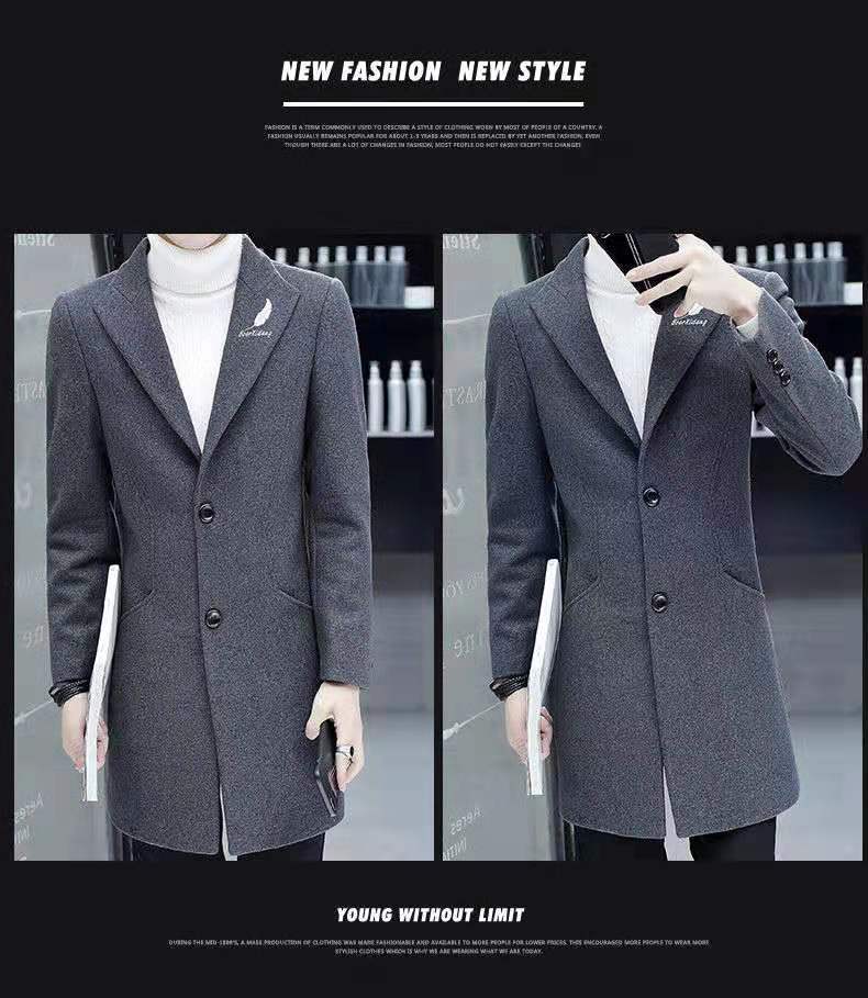 新款男士风衣秋冬季呢子外套男款韩版潮流加棉加厚青年毛呢大衣男