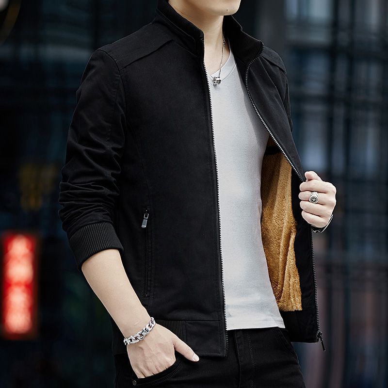 男士外套秋冬季韩版潮流修身休闲立领工装男装牛仔加绒夹克春秋装