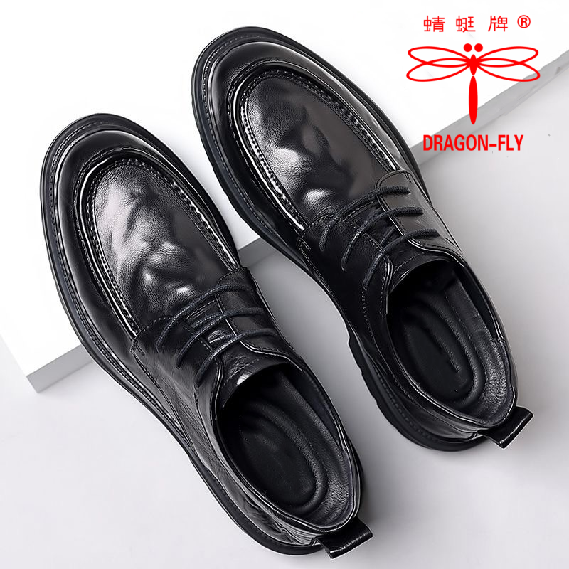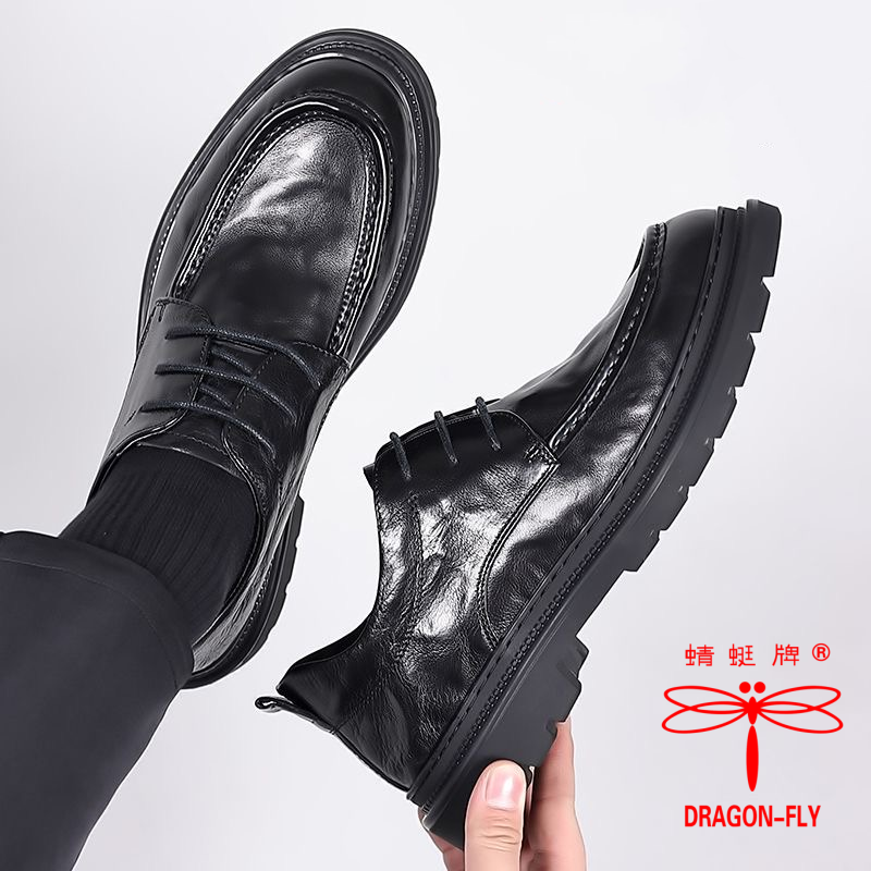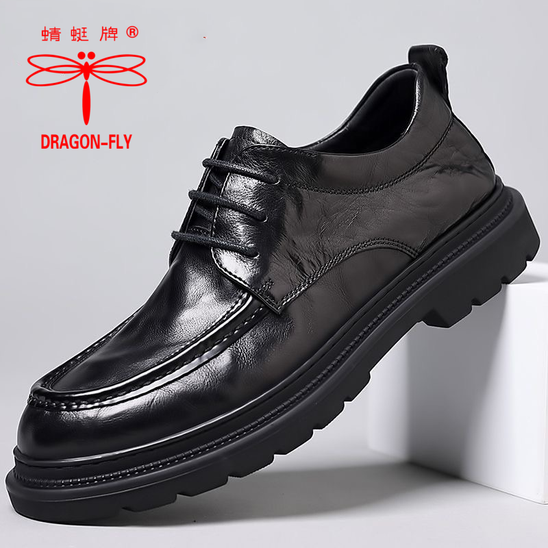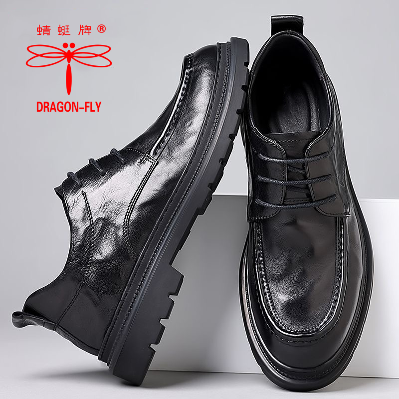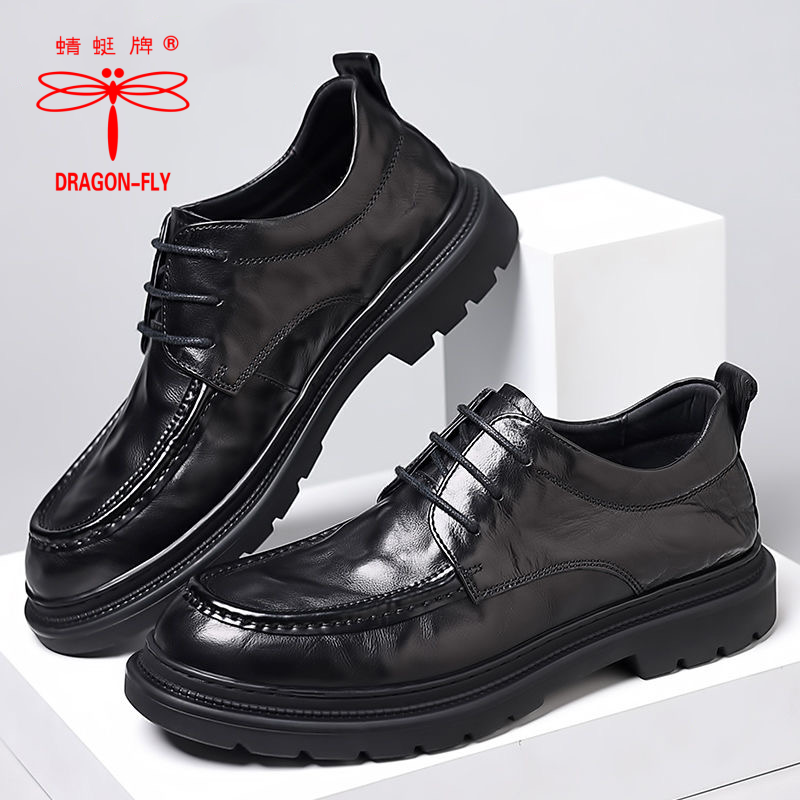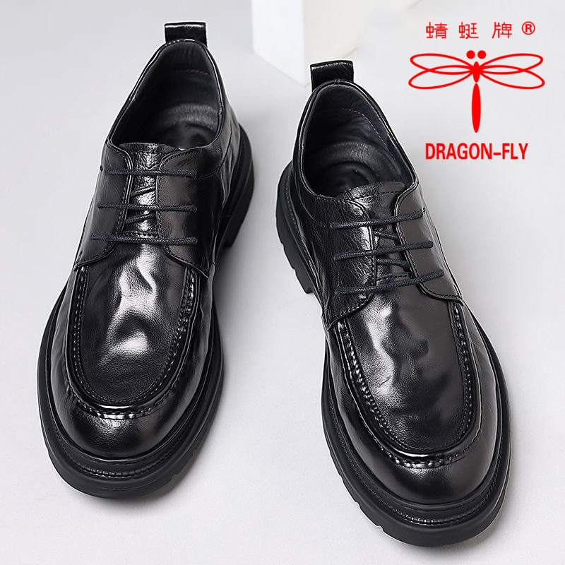【真牛皮】蜻蜓牌皮鞋男士商务结婚面试皮鞋系带厚底英伦休闲皮鞋