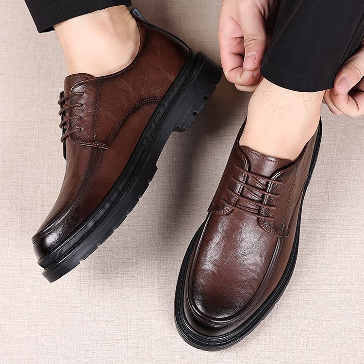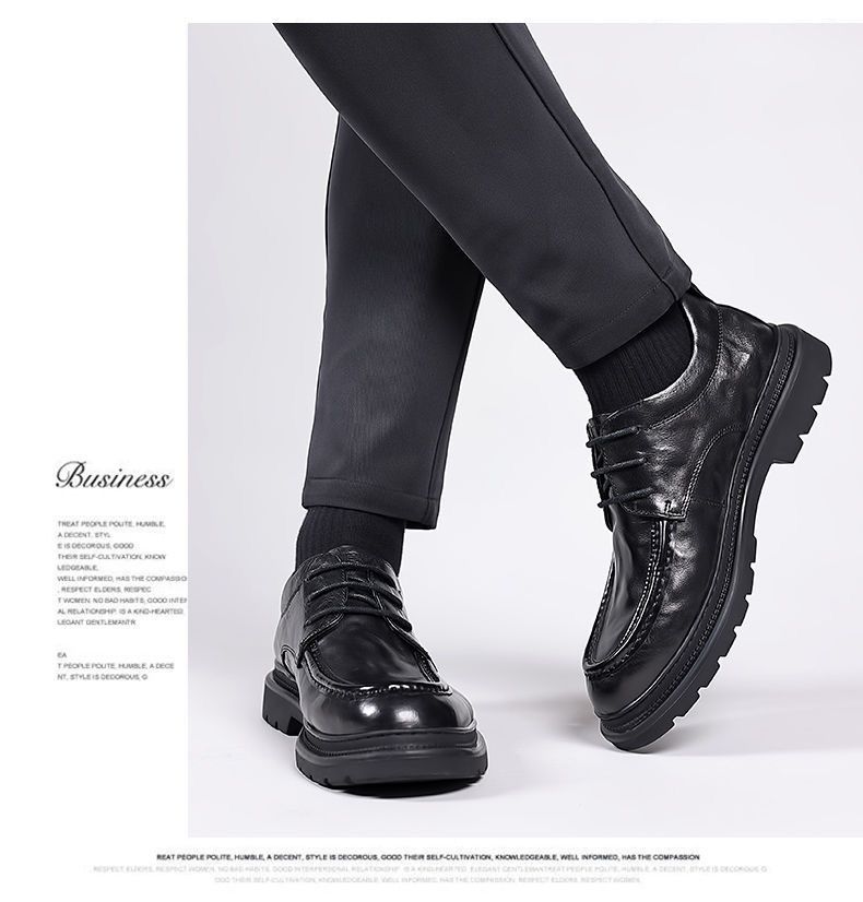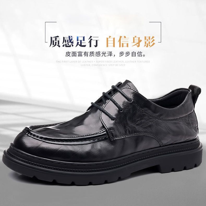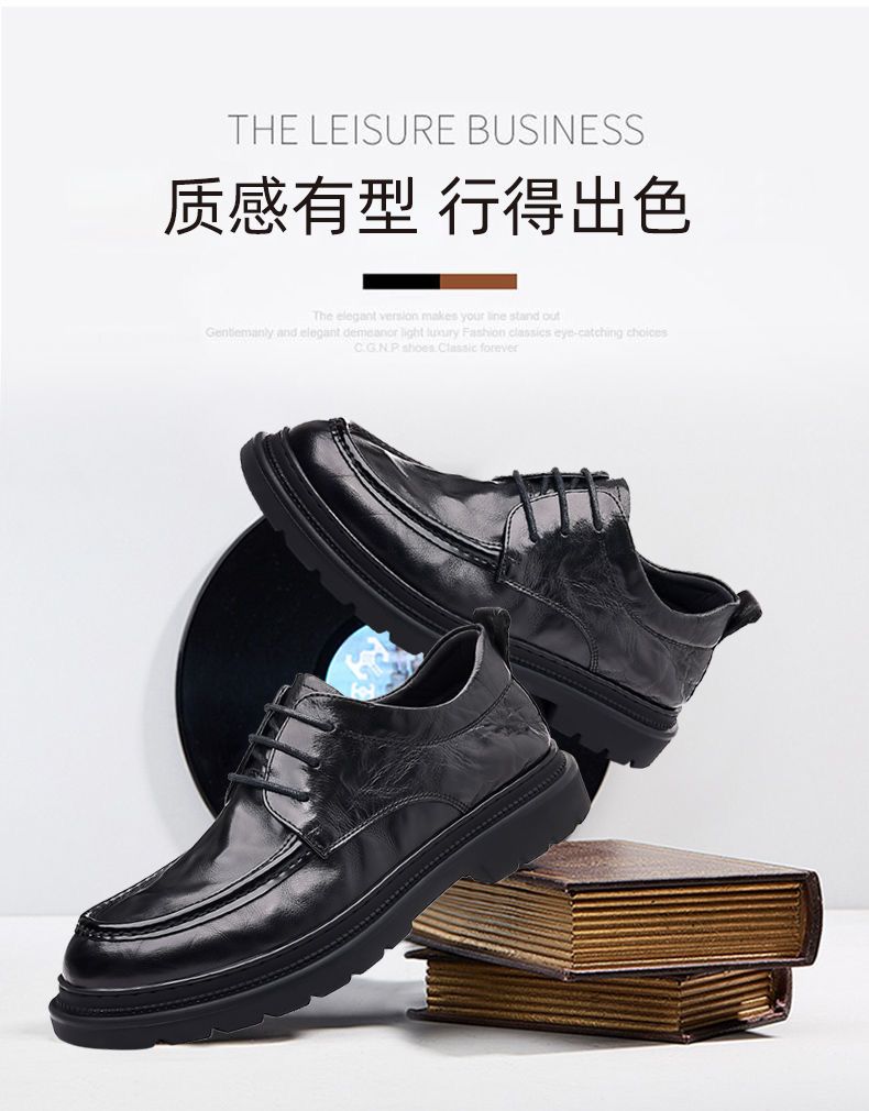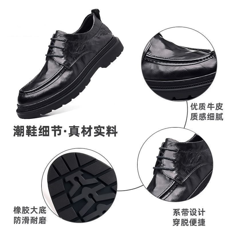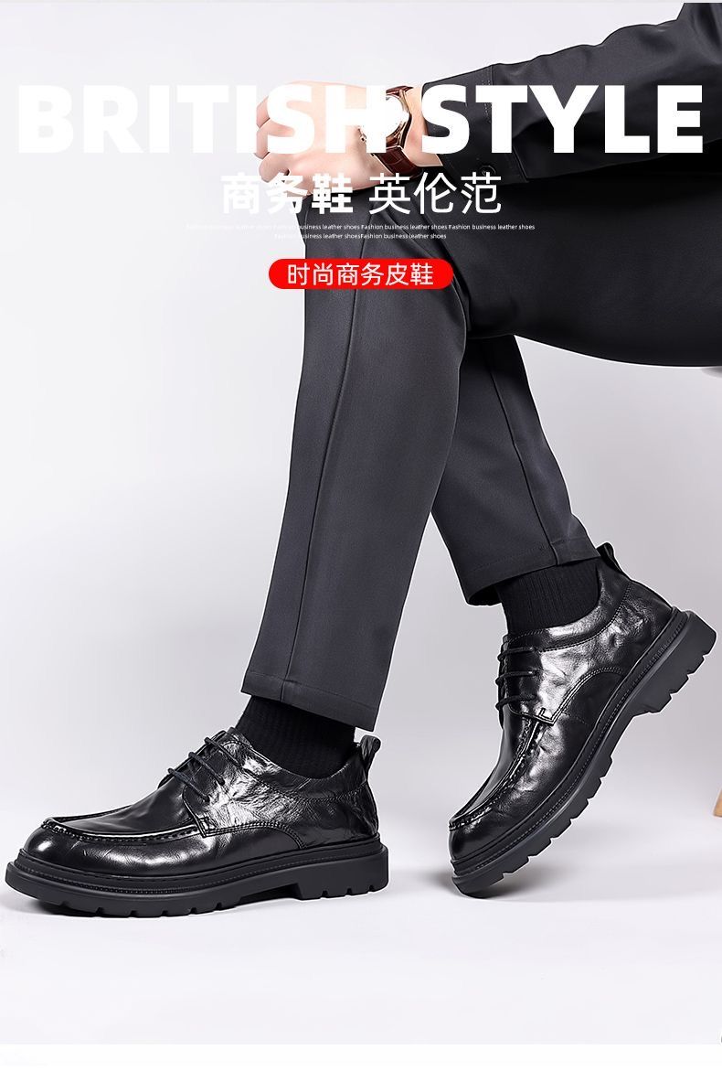 【真牛皮】蜻蜓牌皮鞋男士商务结婚面试皮鞋系带厚底英伦休闲皮鞋