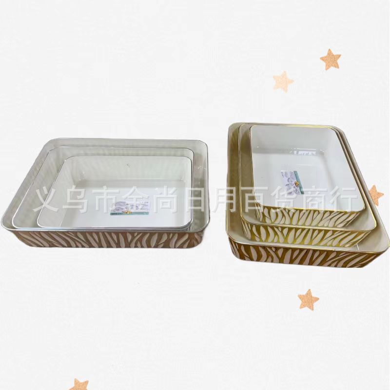 长方形奶白银边金边轻奢水杯茶水托盘家用放茶杯客厅水果盘杯子