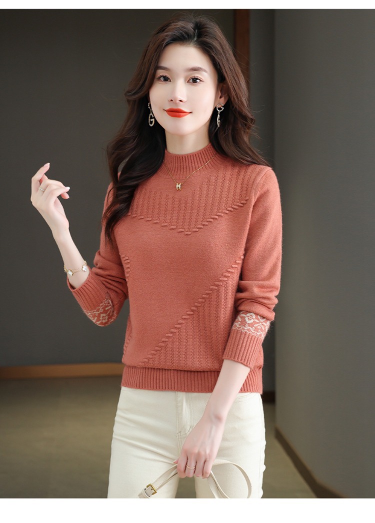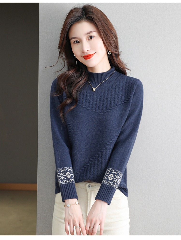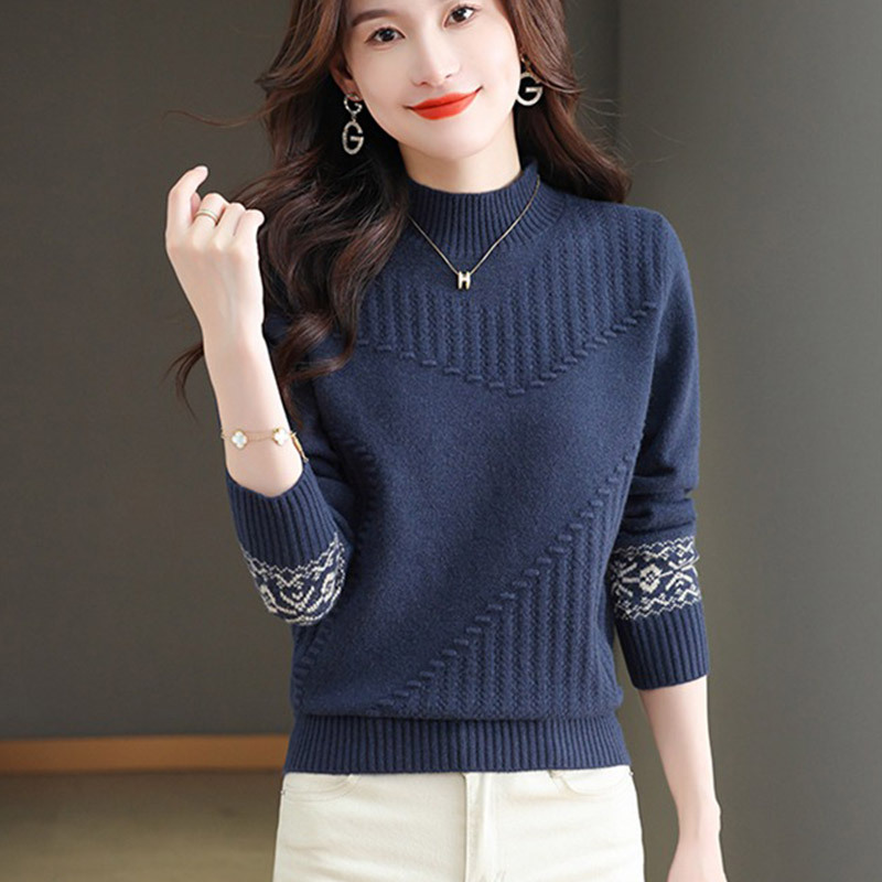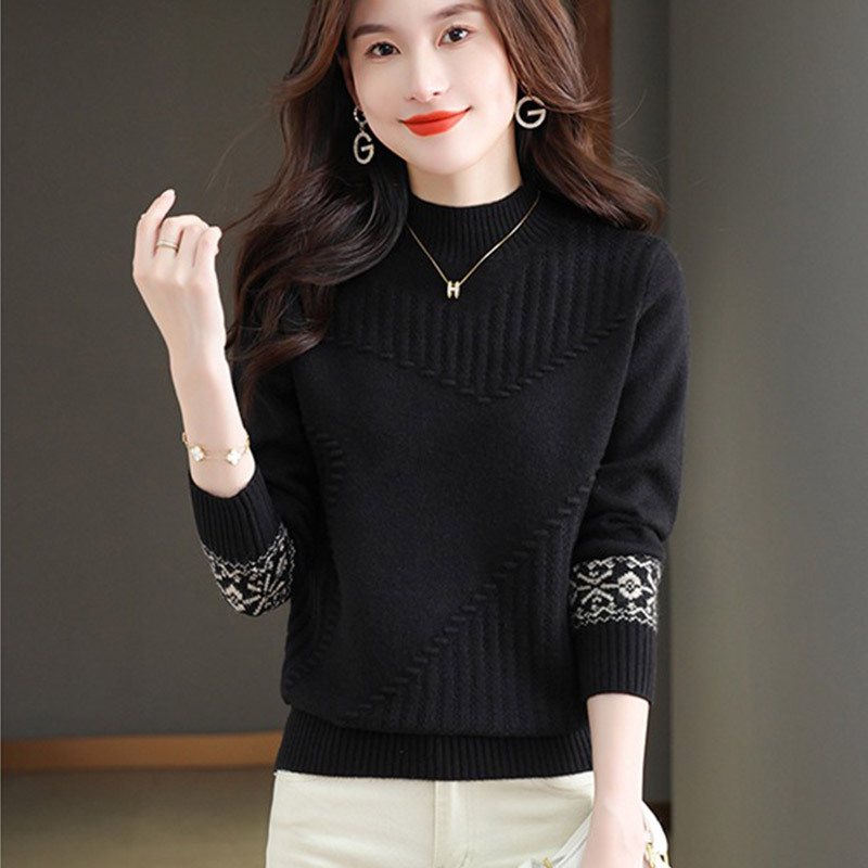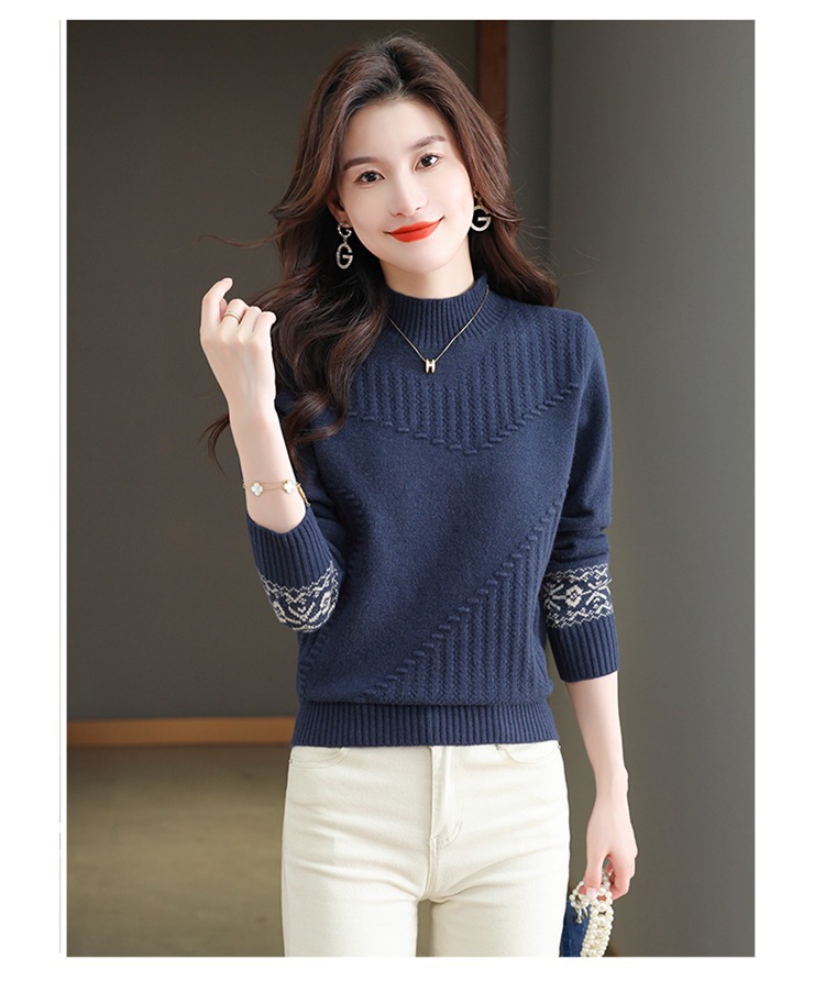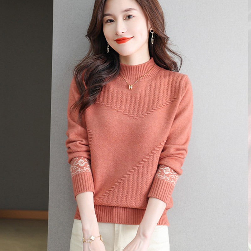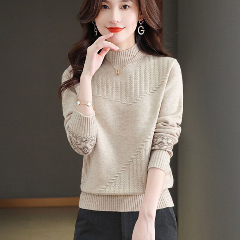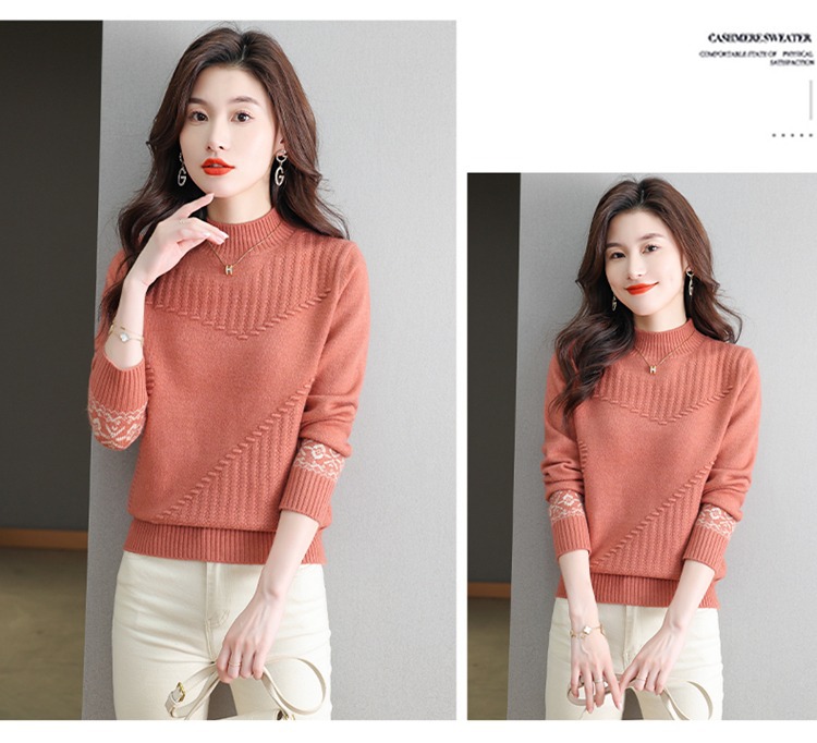 半高领毛衣女2024秋冬新款时尚针织衫宽松遮肚子加厚内搭打底上衣