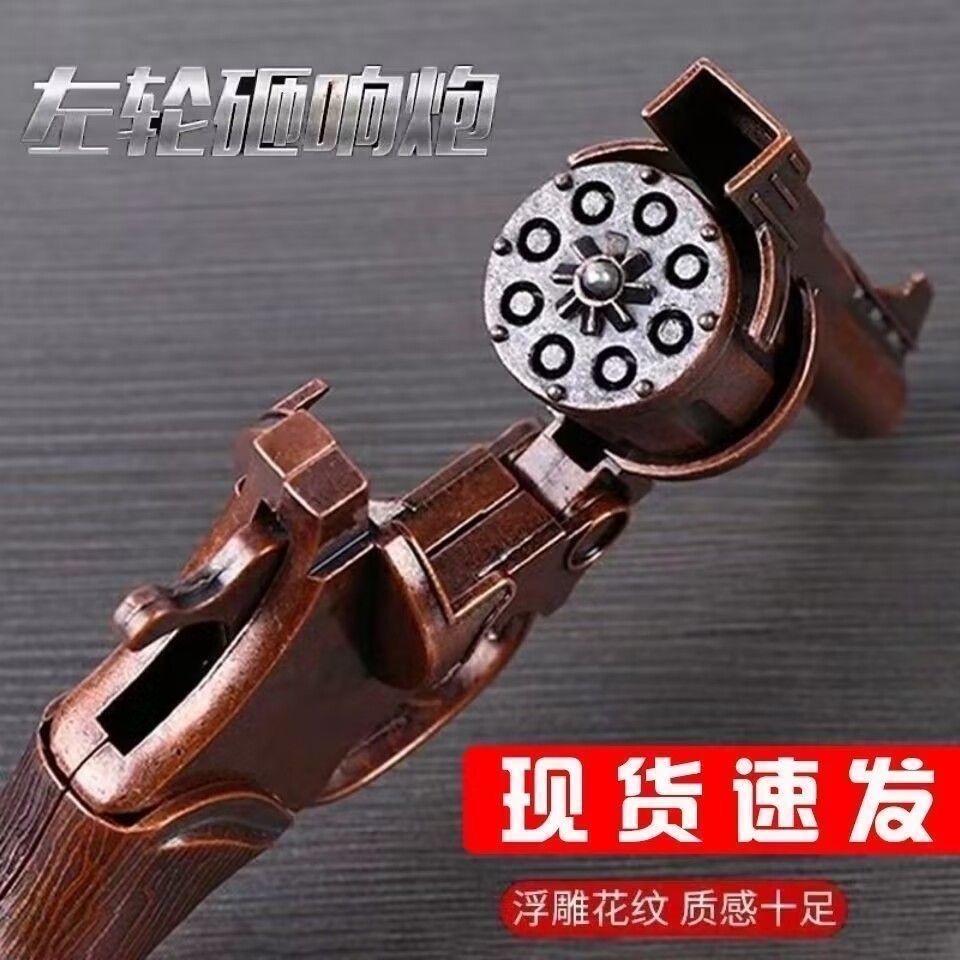 新款侧开金属左轮砸响枪火辣子枪经典男孩玩具不可发射1:2.05模型