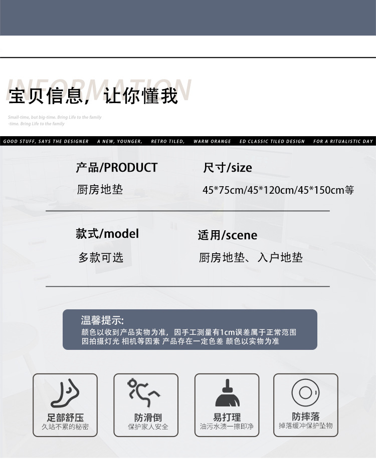 卡通厨房地垫吸水吸油脚垫可擦免洗耐脏门口硅藻泥软垫子防滑地毯