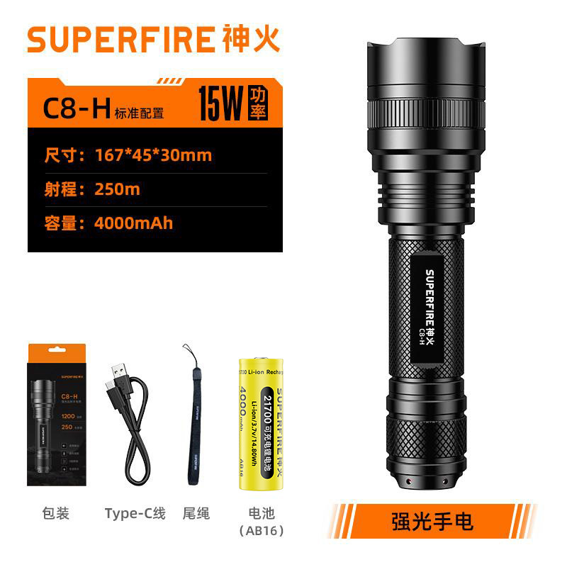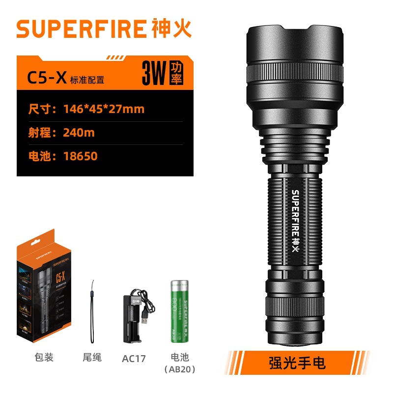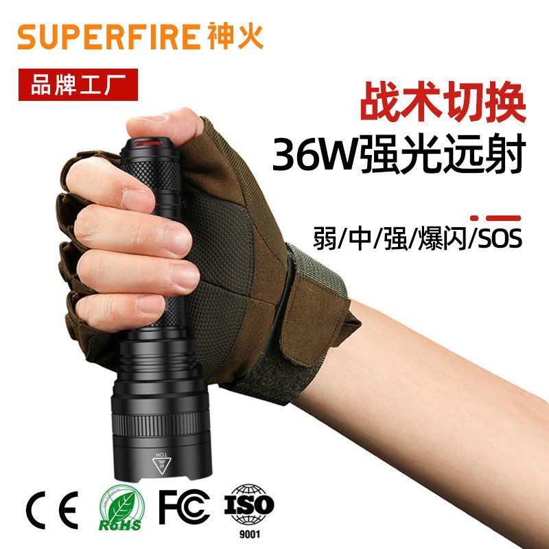 神火手电防水户外led充电安防巡逻便携防身多功能强光手电筒批发